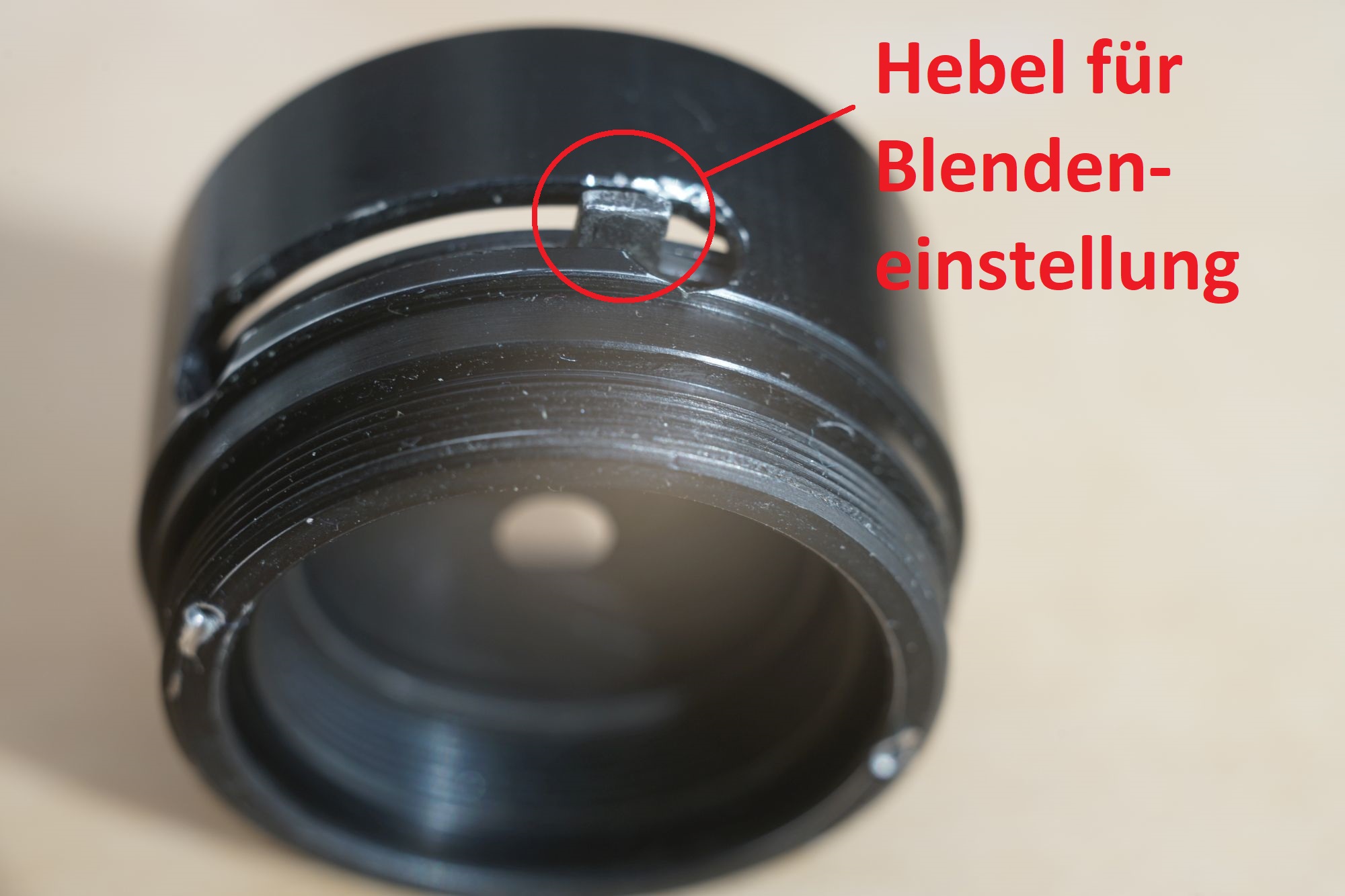 Ich habe es dann doch geschafft. Man sieht übrigens den Hebel, der die Blendensteuerung mit dem Blendenring