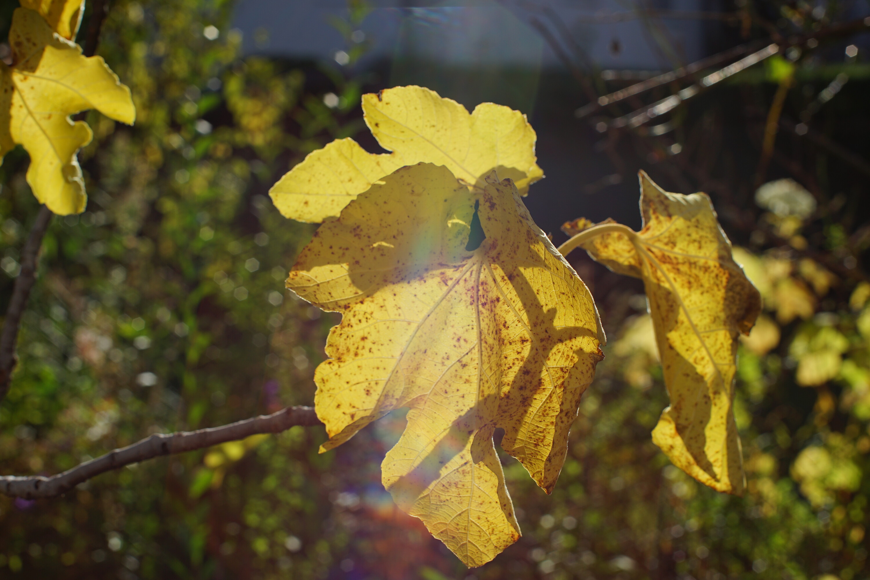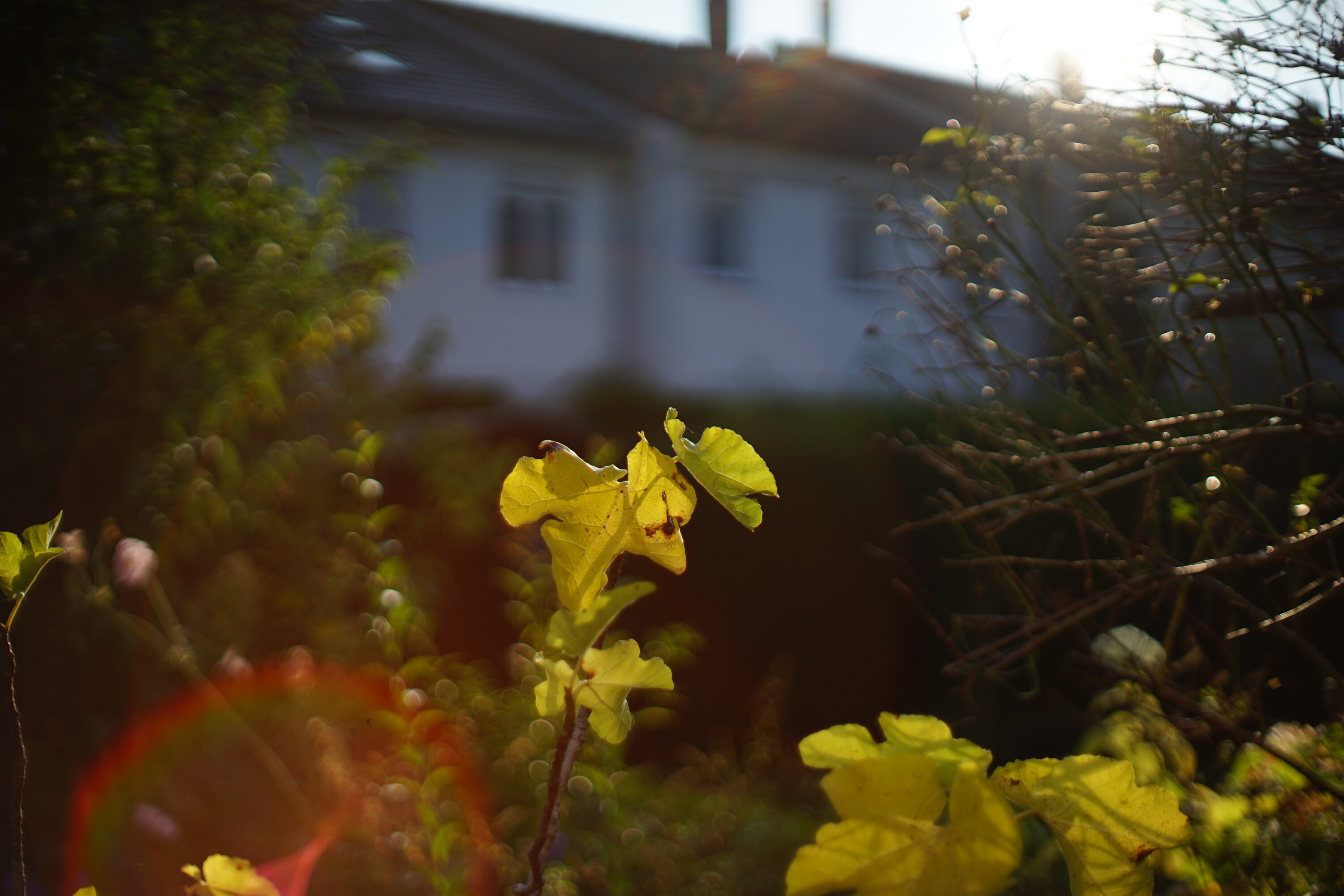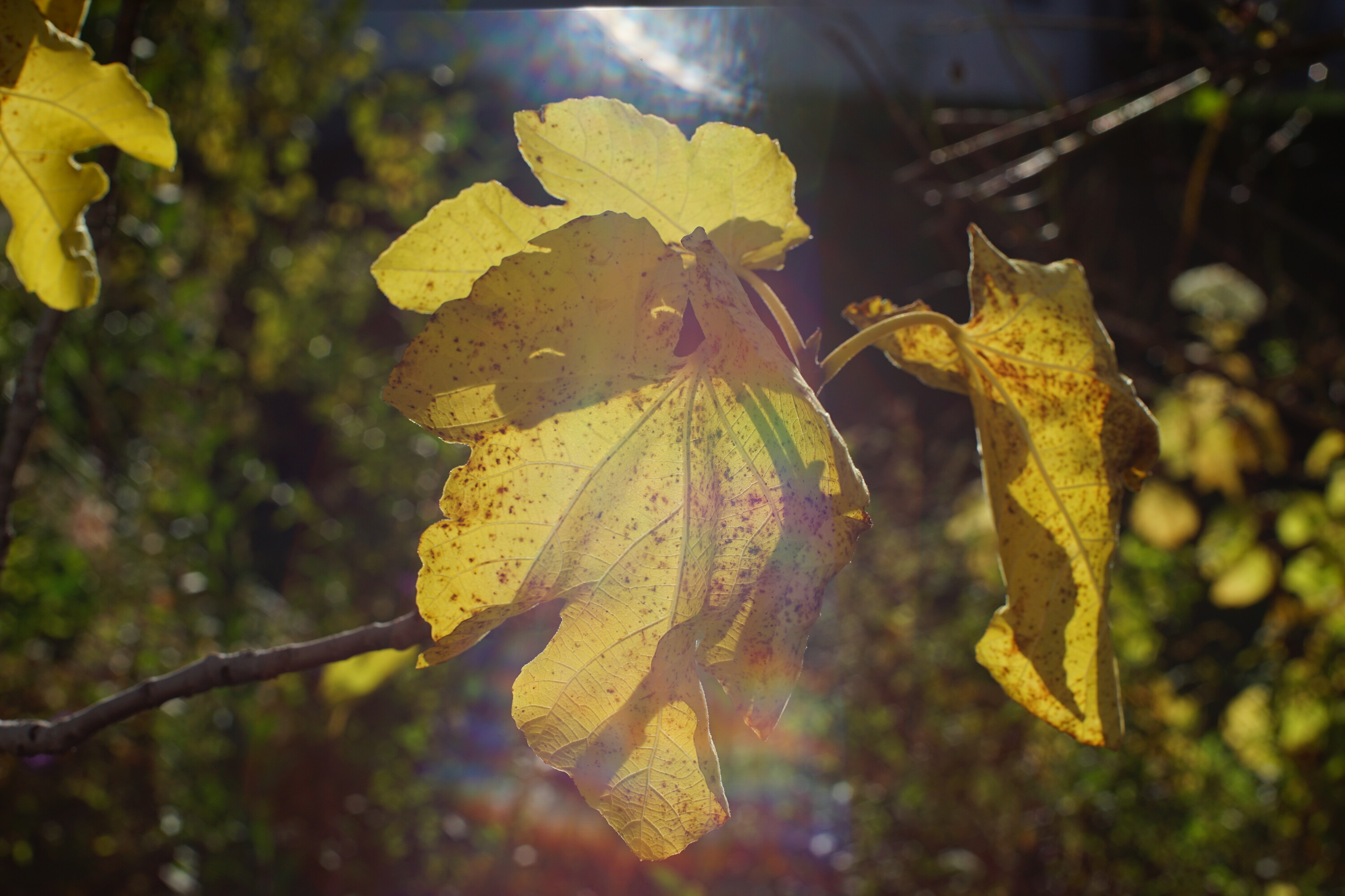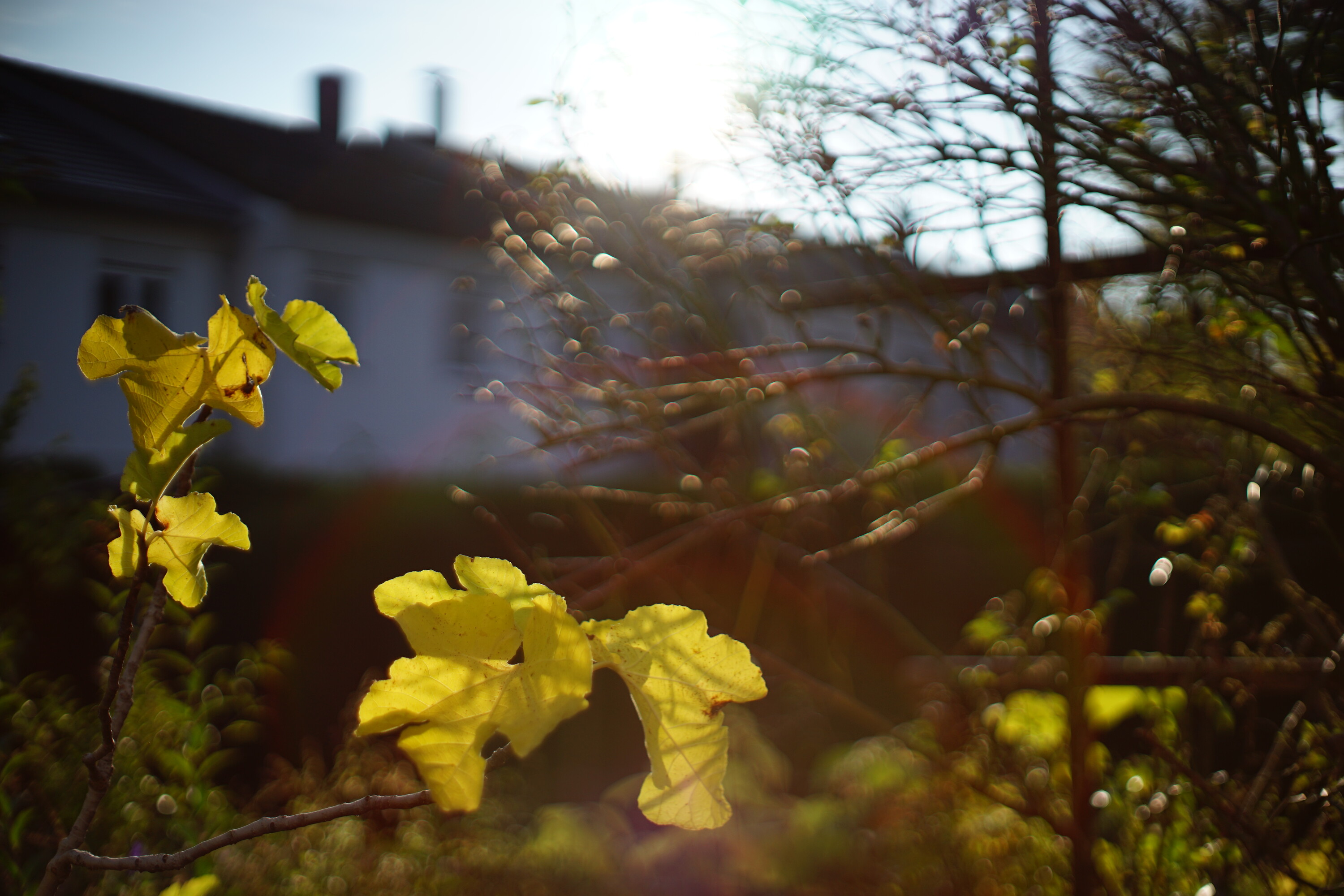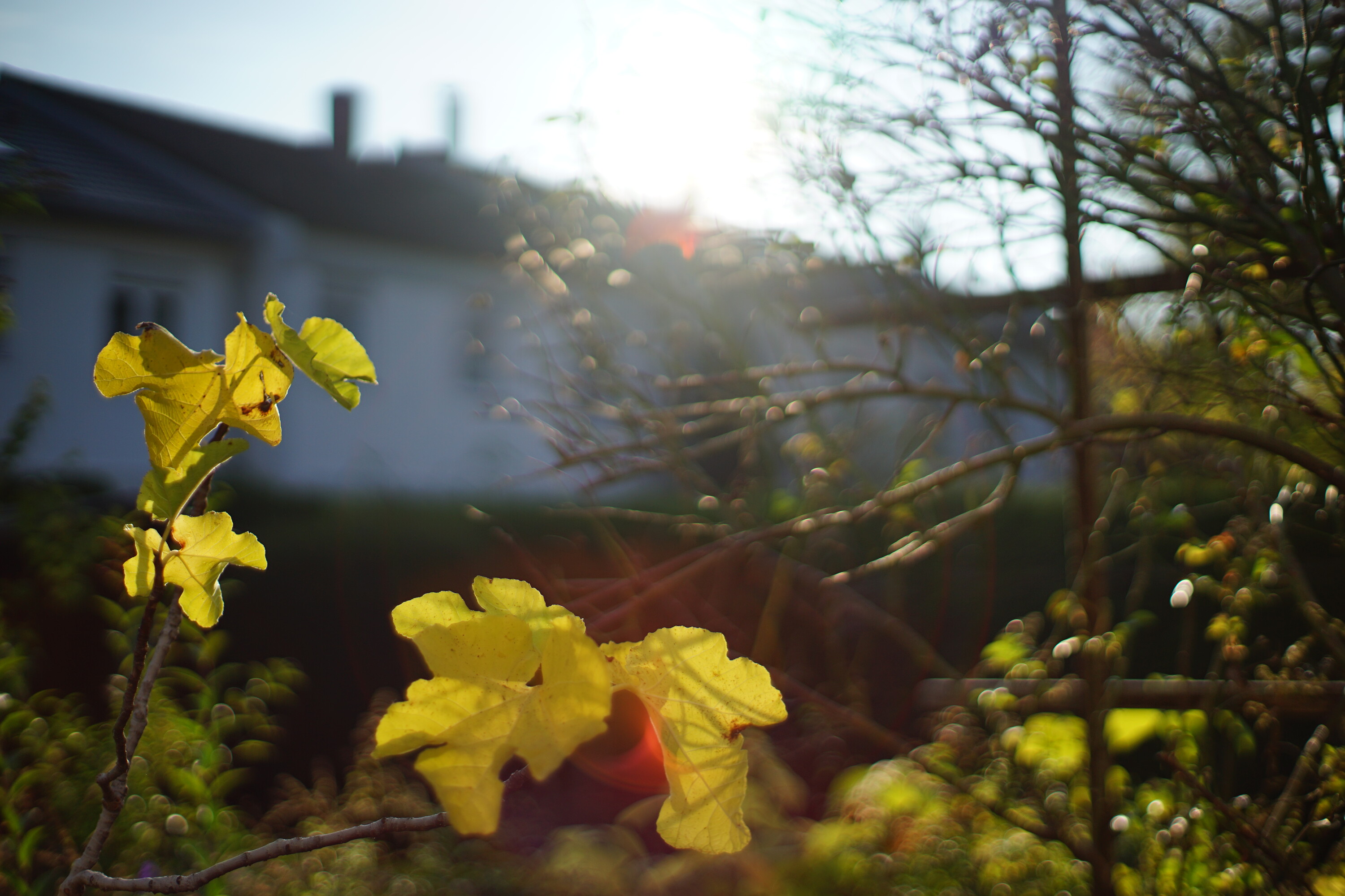 Zuerst ein Bild mit hinter Ästen abgeschatteter Sonne, einmal offen, einmal auf f11, auf der Suche nach dem Blendenstern.