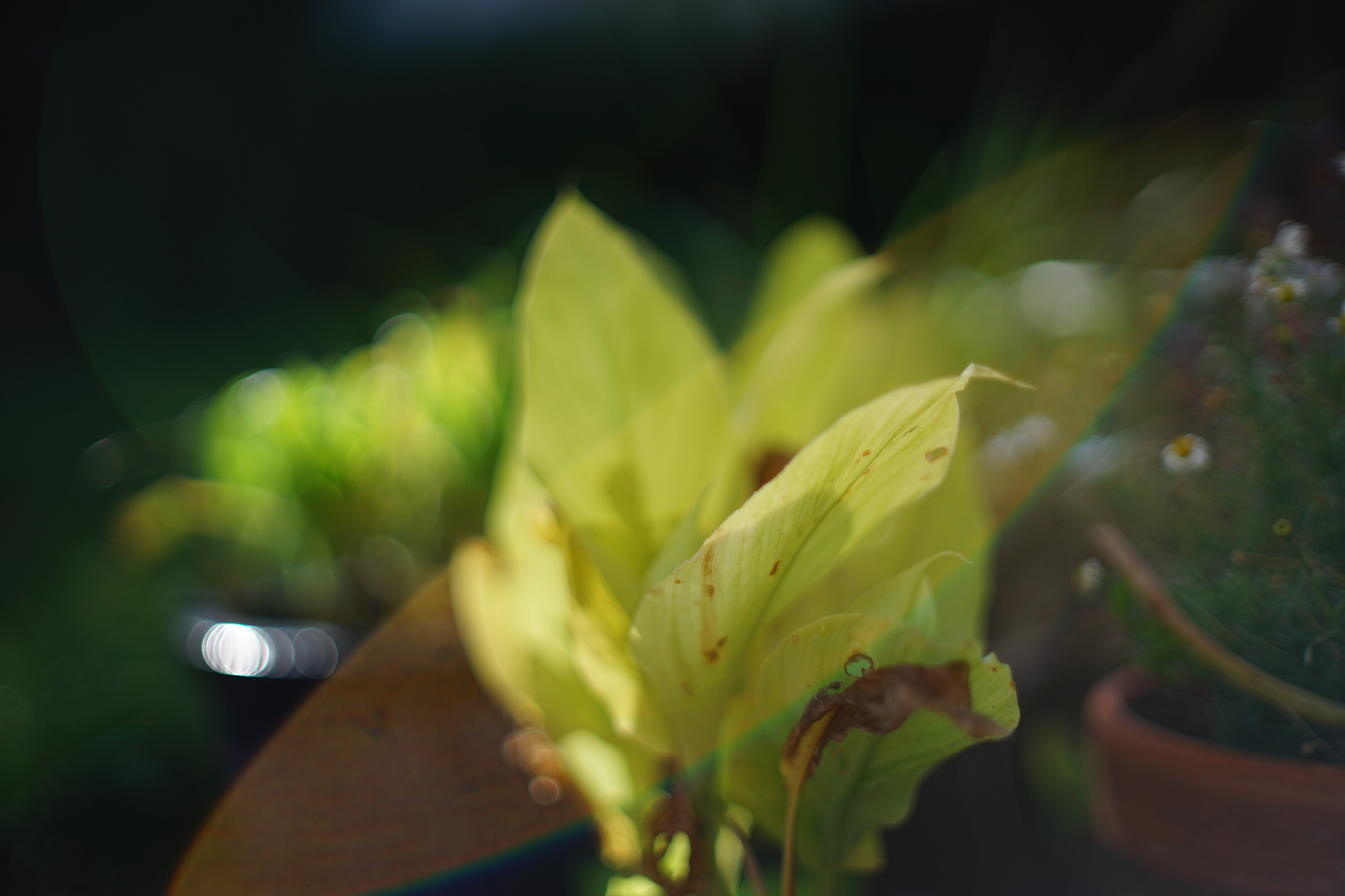 Bei dem Hintergrund und Sonne ist das Bokeh bei beiden ganz schön wild, insbesondere bei Offenblende, da schenken sie sich nicht viel. Bei f2 hingegen wird das Minolta ruhiger und das Zeiss leidet an der Blendenform, aber von "cremig" und unaufdringlich sind wir immer noch weit weg.