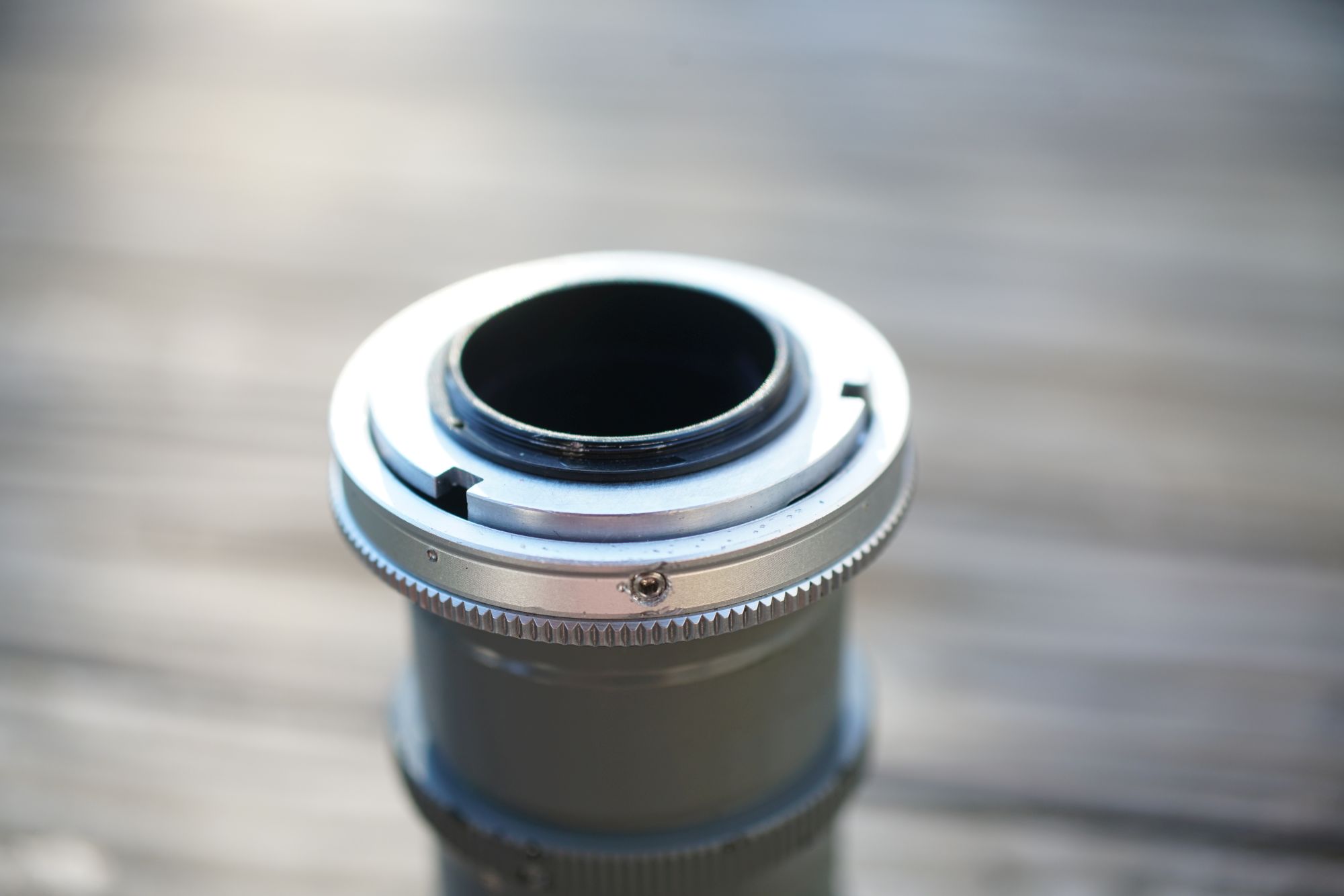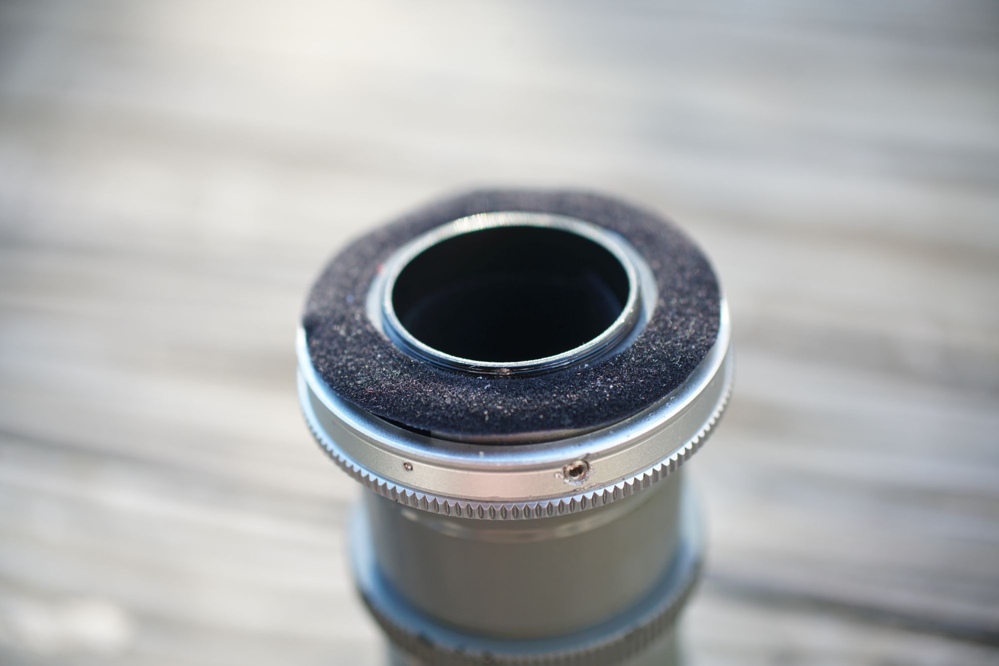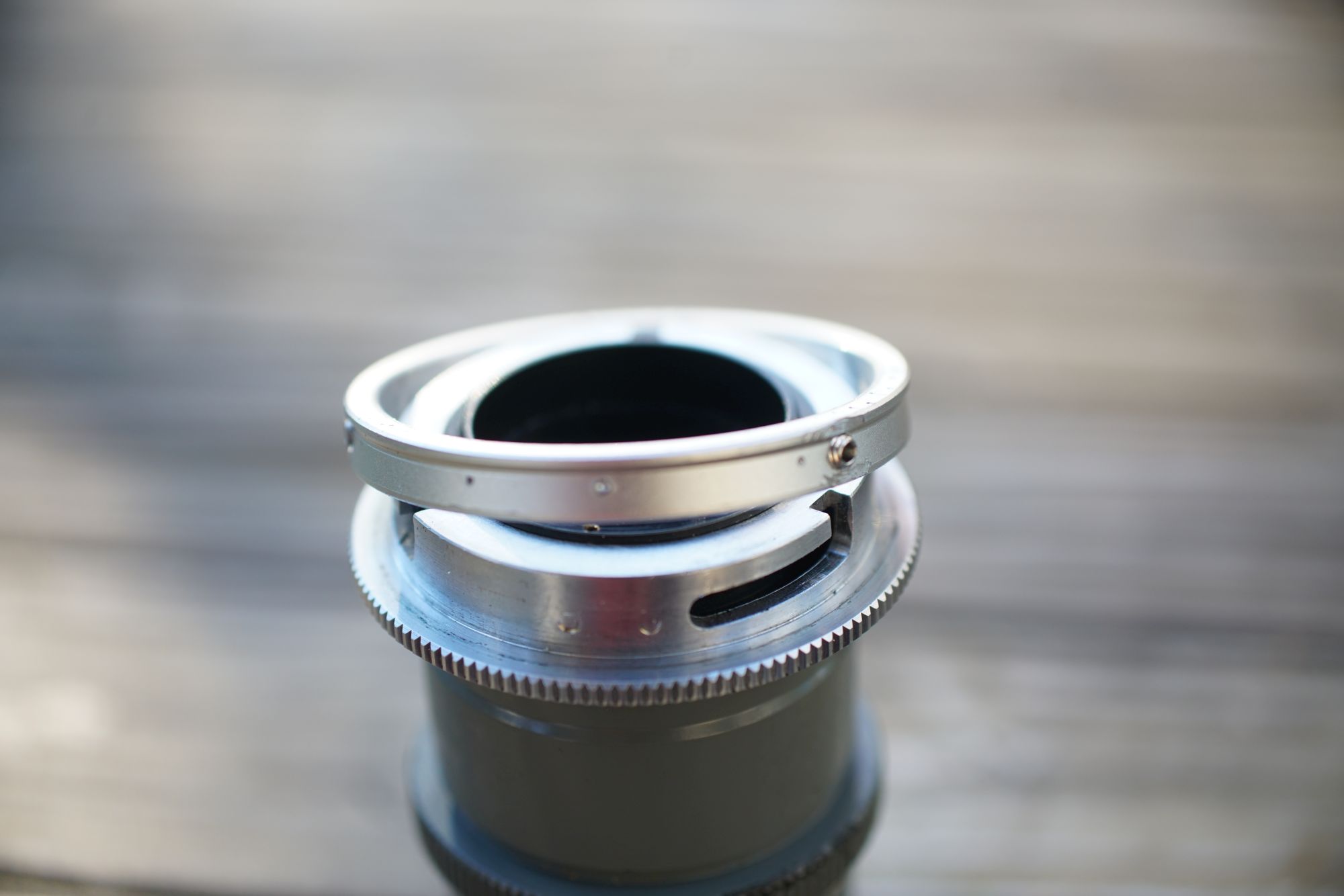 das "Spielzeug") soweit ausgedreht, dass dieser über den Anschluß des Wollensak Objektives flutscht.