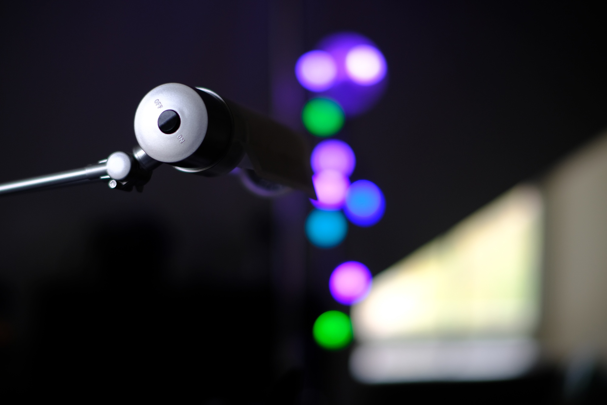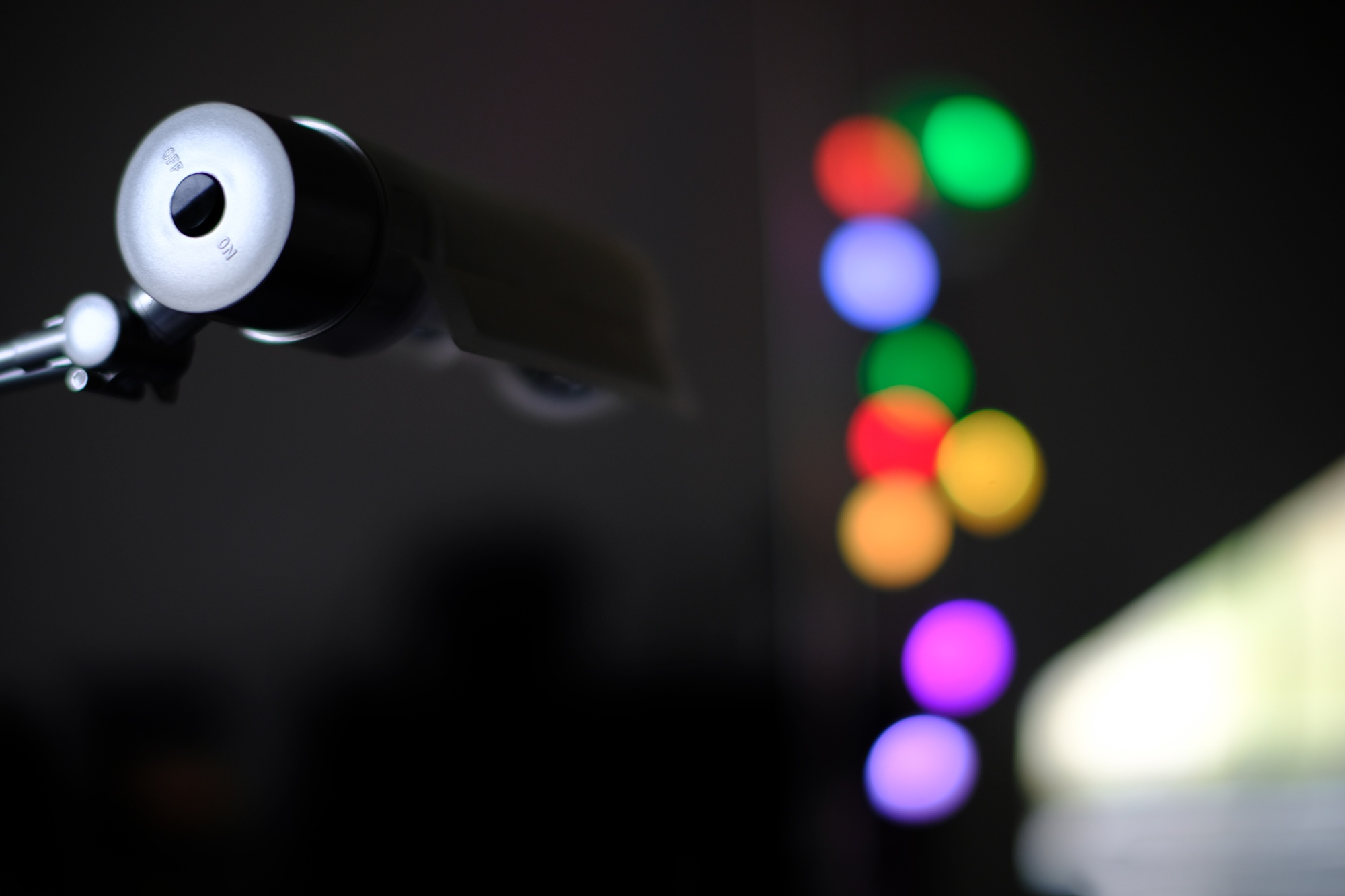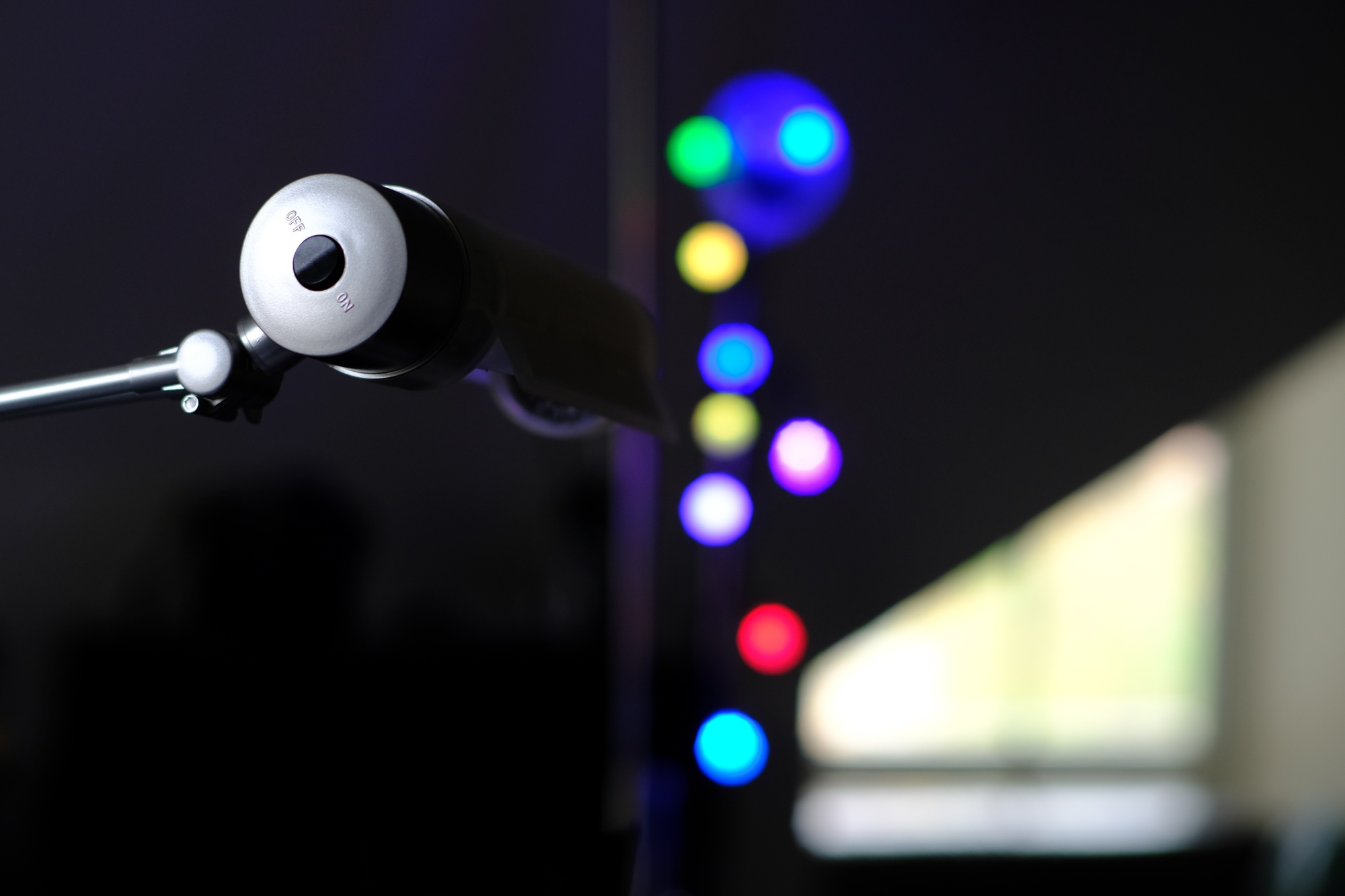 wie Lichtpunkte abgebildet werden. Abstand zur Schreibtisch-Lampe 70cm, zur Stehlampe 2,70m, zum Fenster etwa 5m