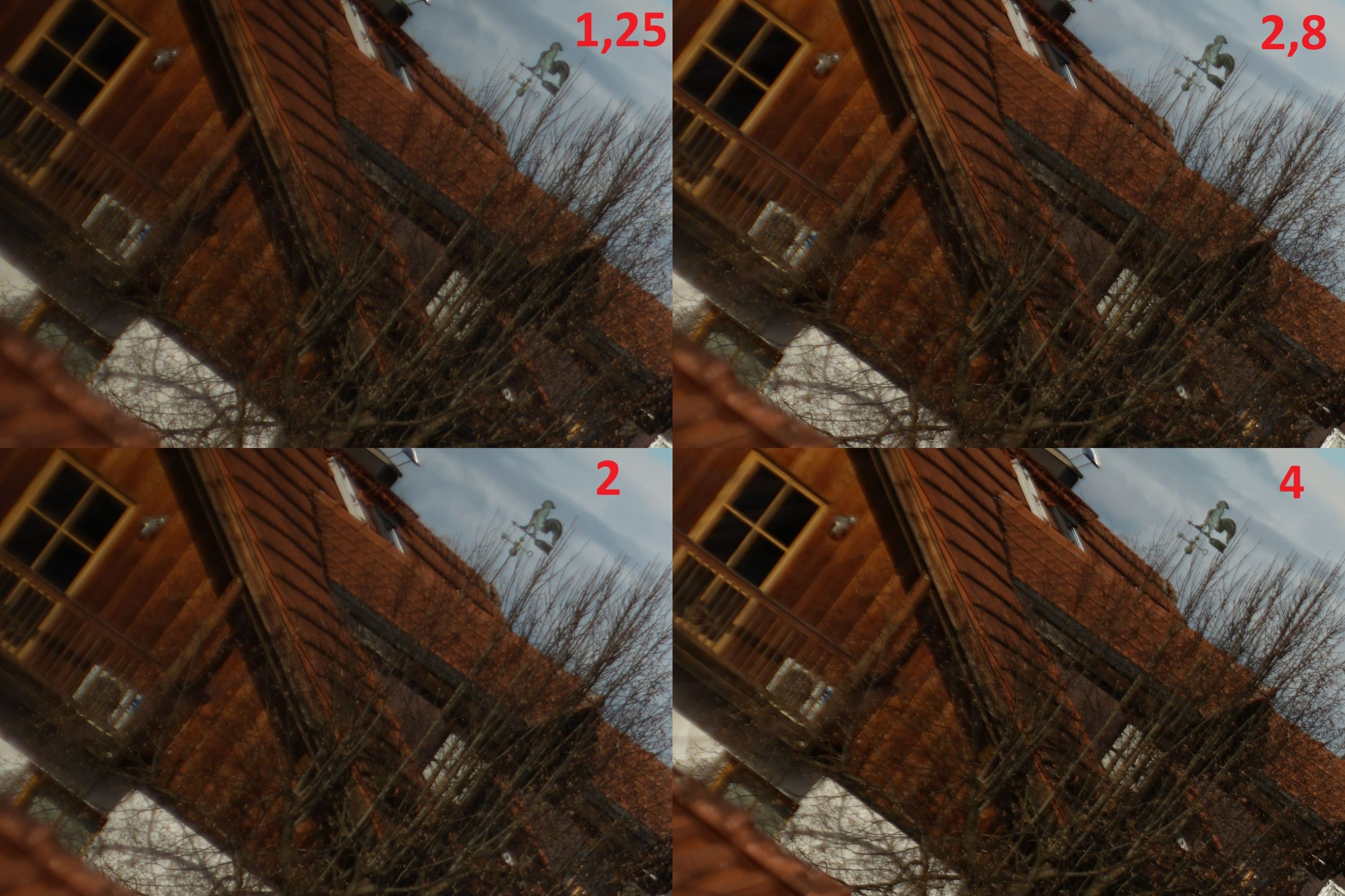 Interessant wird es bei Blende 2,8. Ich habe versucht die existierende Bildfeldwölbung zu demonstrieren.