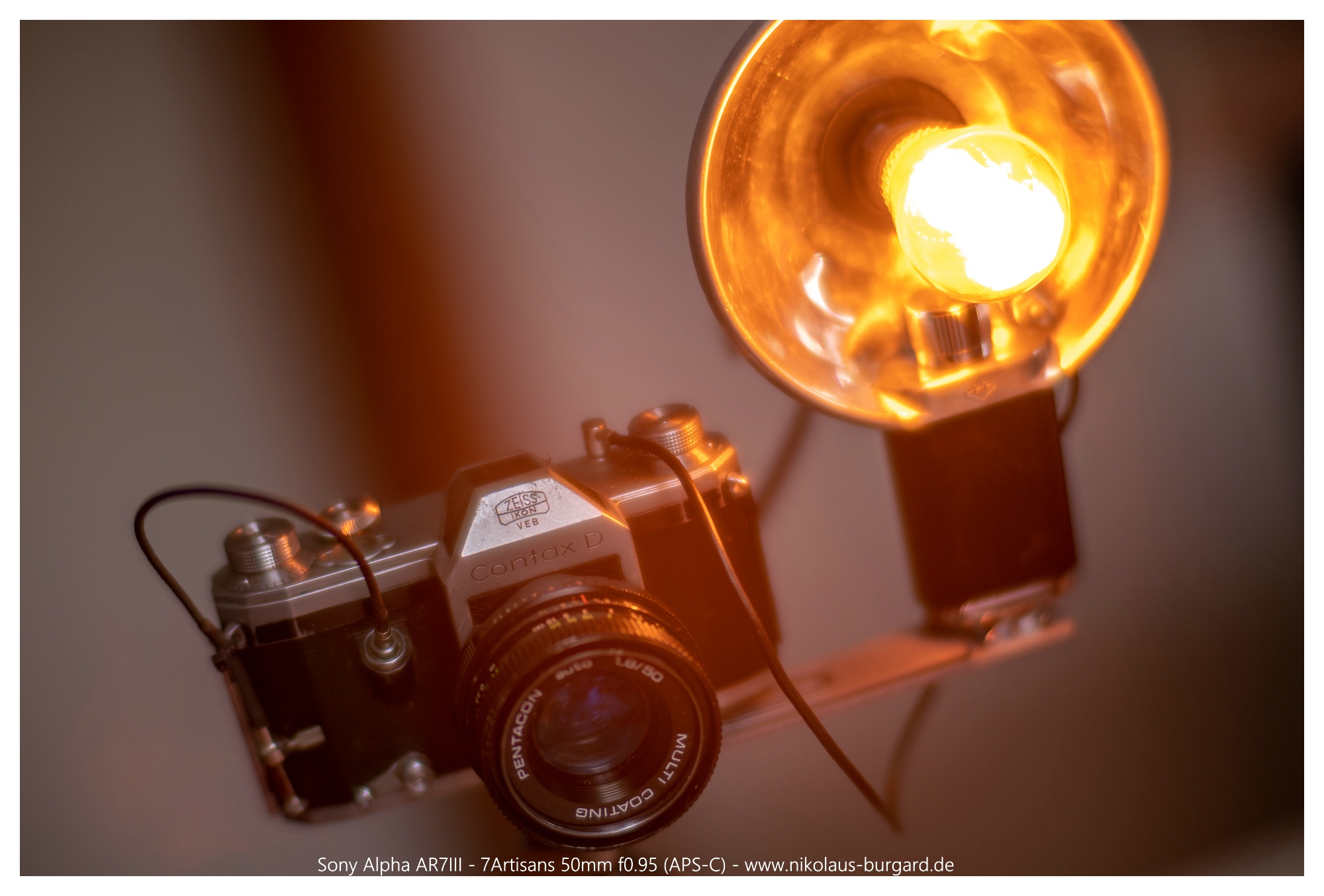 Die Schärfe ist bei f0.95 schon da, aber noch von der sphärischen Abberation (Glow) stark überlagert. Bei f1.4 verbessert sich dies schon, ab f2 ist die Schärfe wirklich ausgezeichnet.
