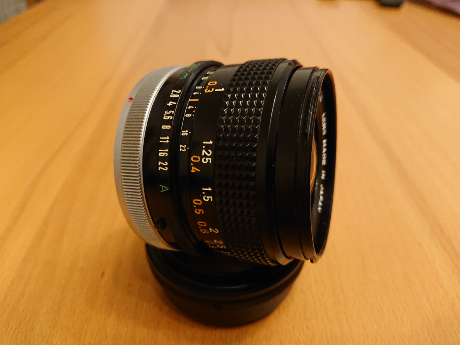 ich habe hier ein Canon FD 28mm 2.8 mit reichlich Pilz im Inneren. Ich habe nun den vorderen Linsen-Block auseinander gebaut. Dabei ist mir die dritte Linse einfach raus gefallen, ohne dass ich gemerkt habe, wie herum die rein soll. Die Linse ist plan-konvex. Hat jemand zufällig eine Quelle über das optische Design des Objektives? Oder eine Skizze?