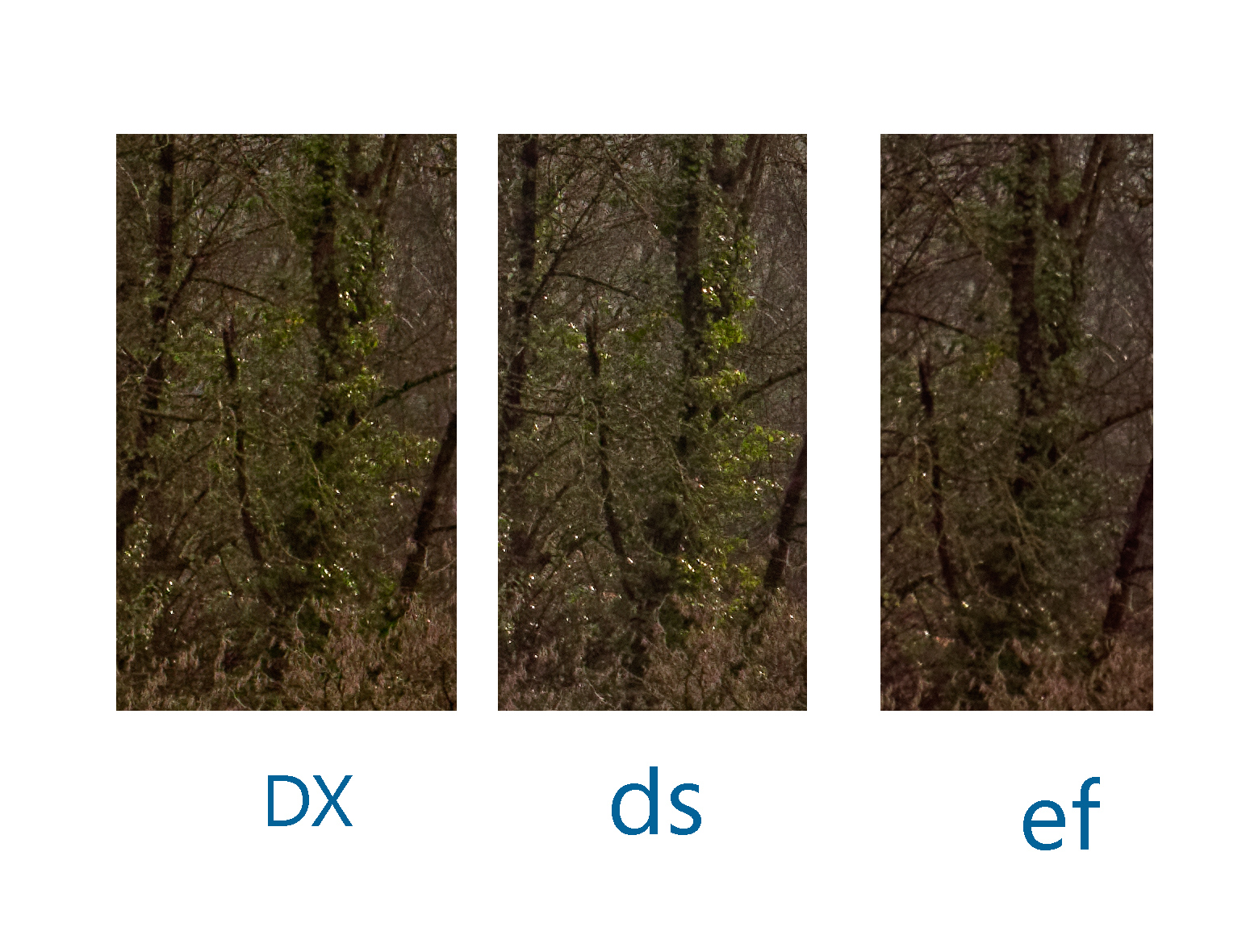 Bei 2.8 bis einschlißlich 5.6 ist das DX klas vorn. Das ds zeichent bis f/4 schön weich.