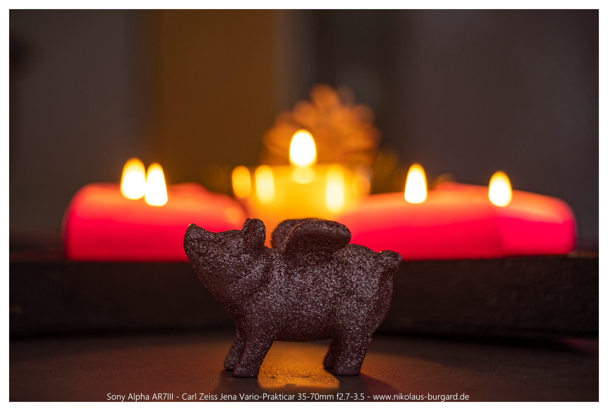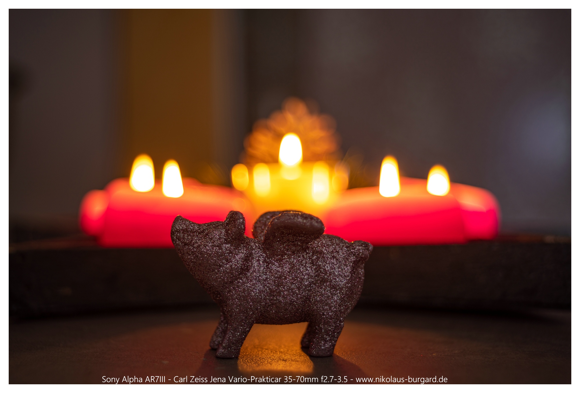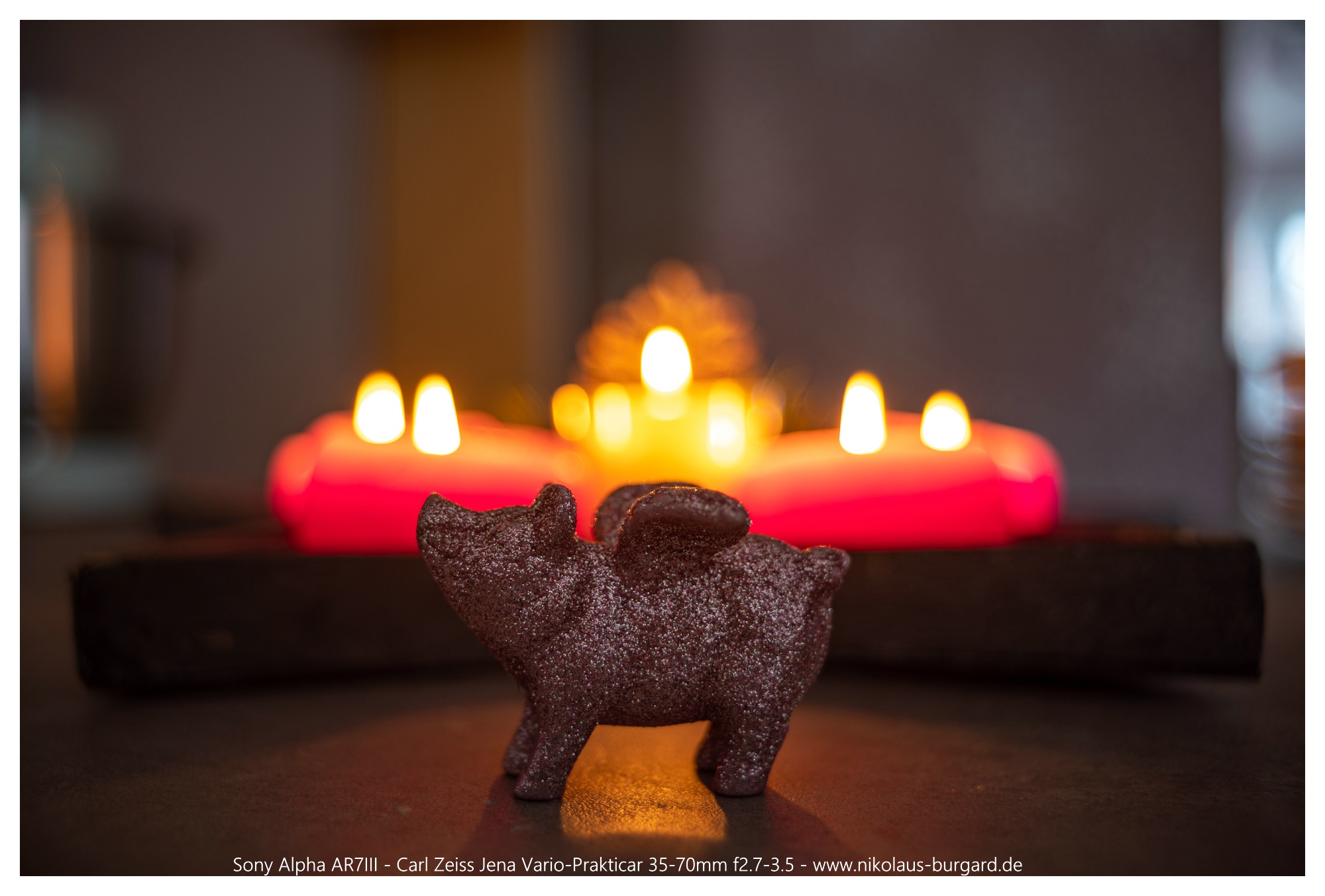 Hierzu habe ich versucht, das Motiv (Glücksschwein) ungefähr gleich groß ins Bild zu bekommen bei den Brennweiten 35, 50 und 70mm.