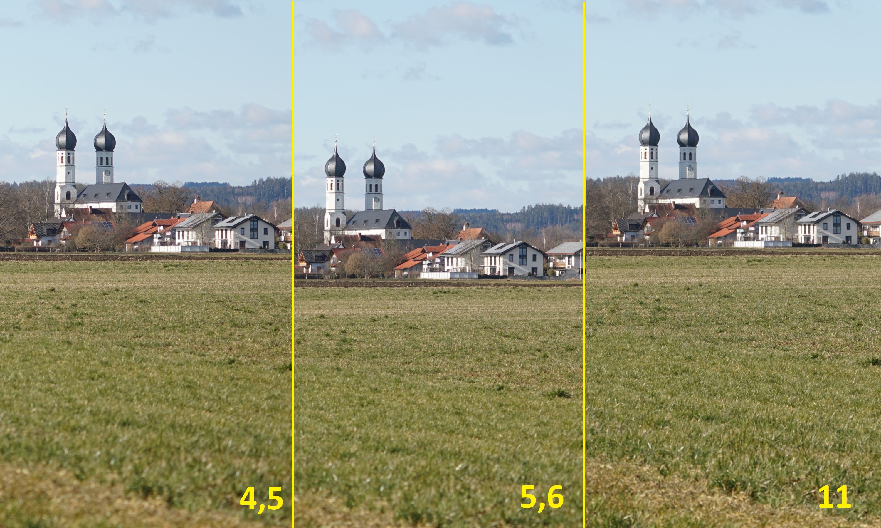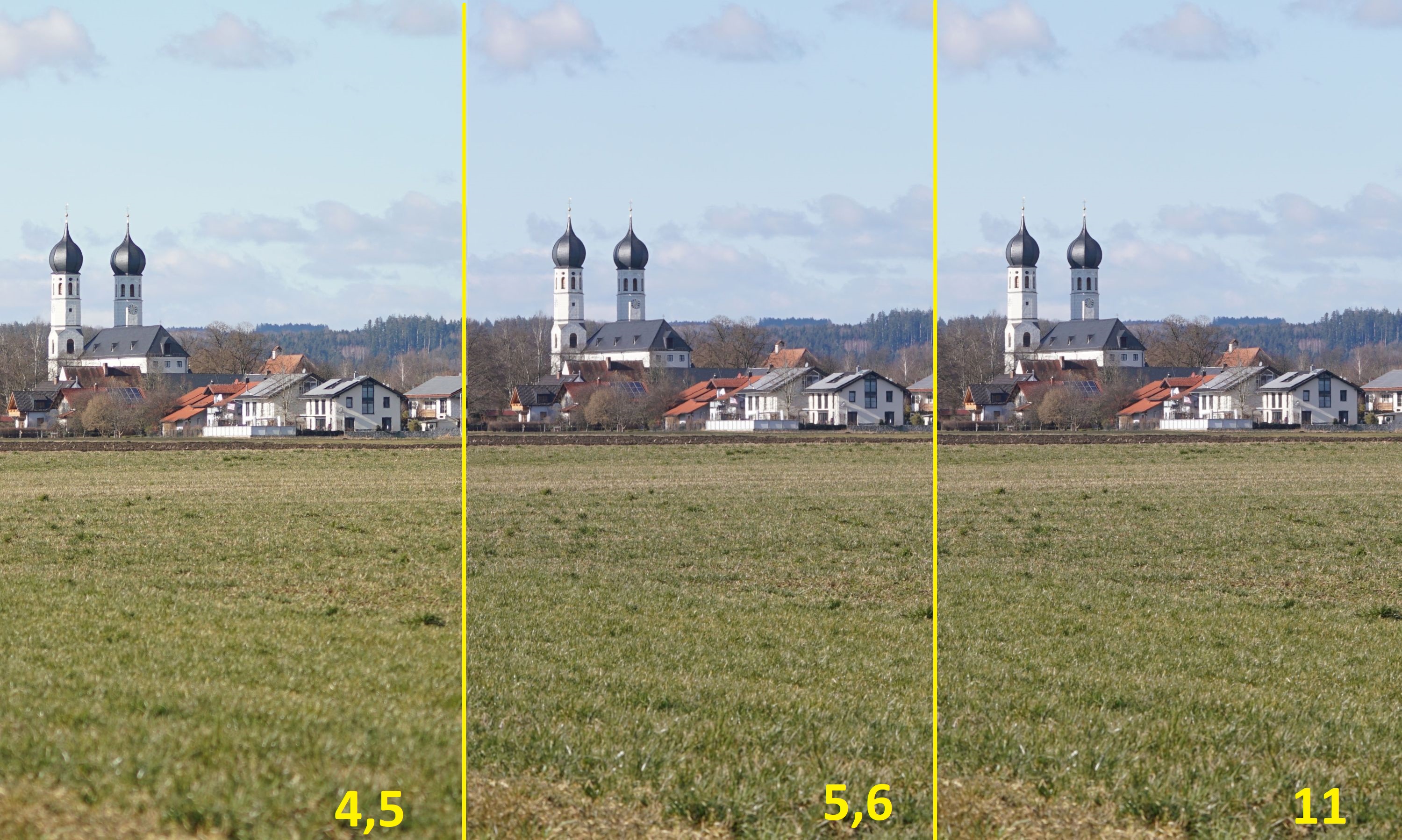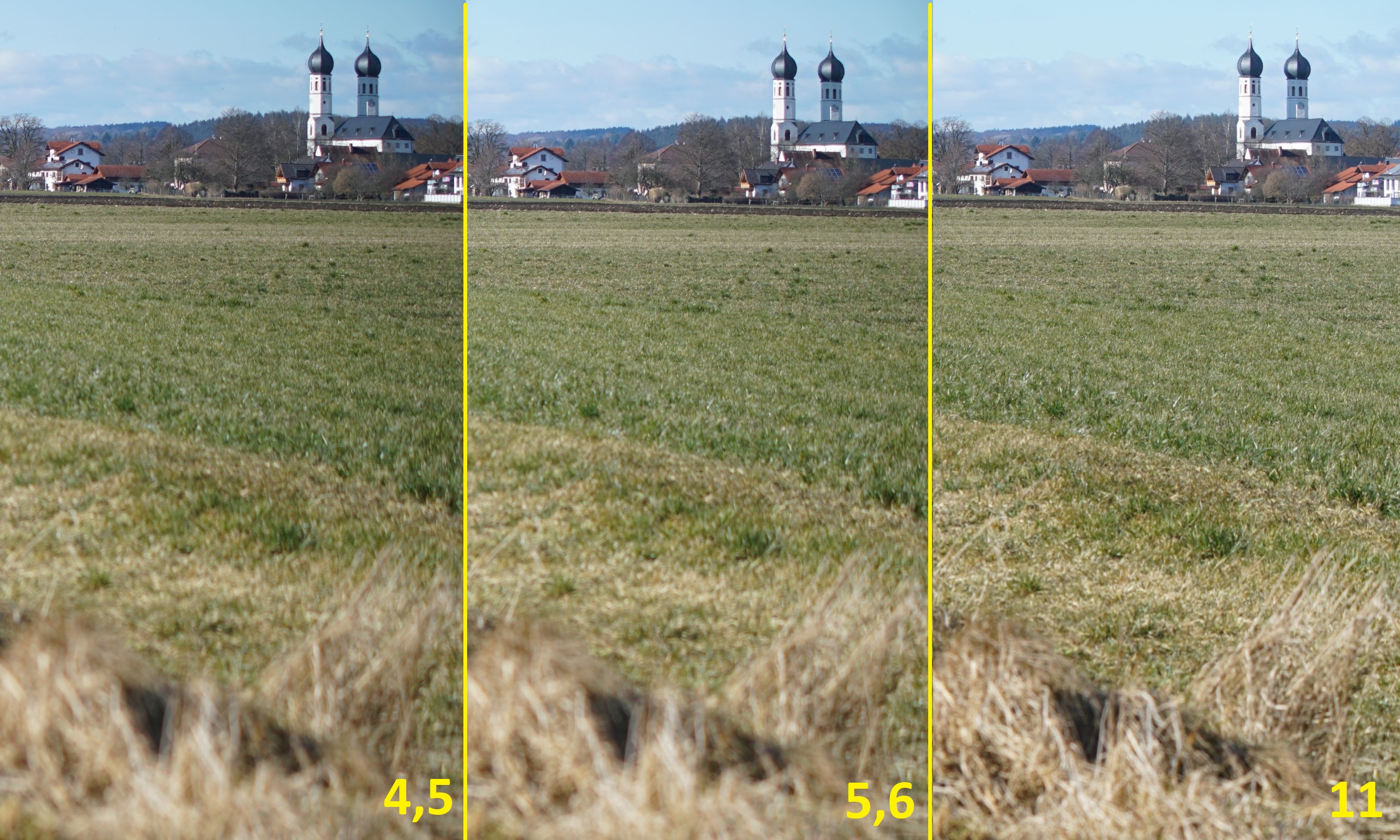 Hier habe ich die Blende 5,6 mit berücksichtigt, um zu zeigen wie stark sich hier ein ganz leichtes Abblenden