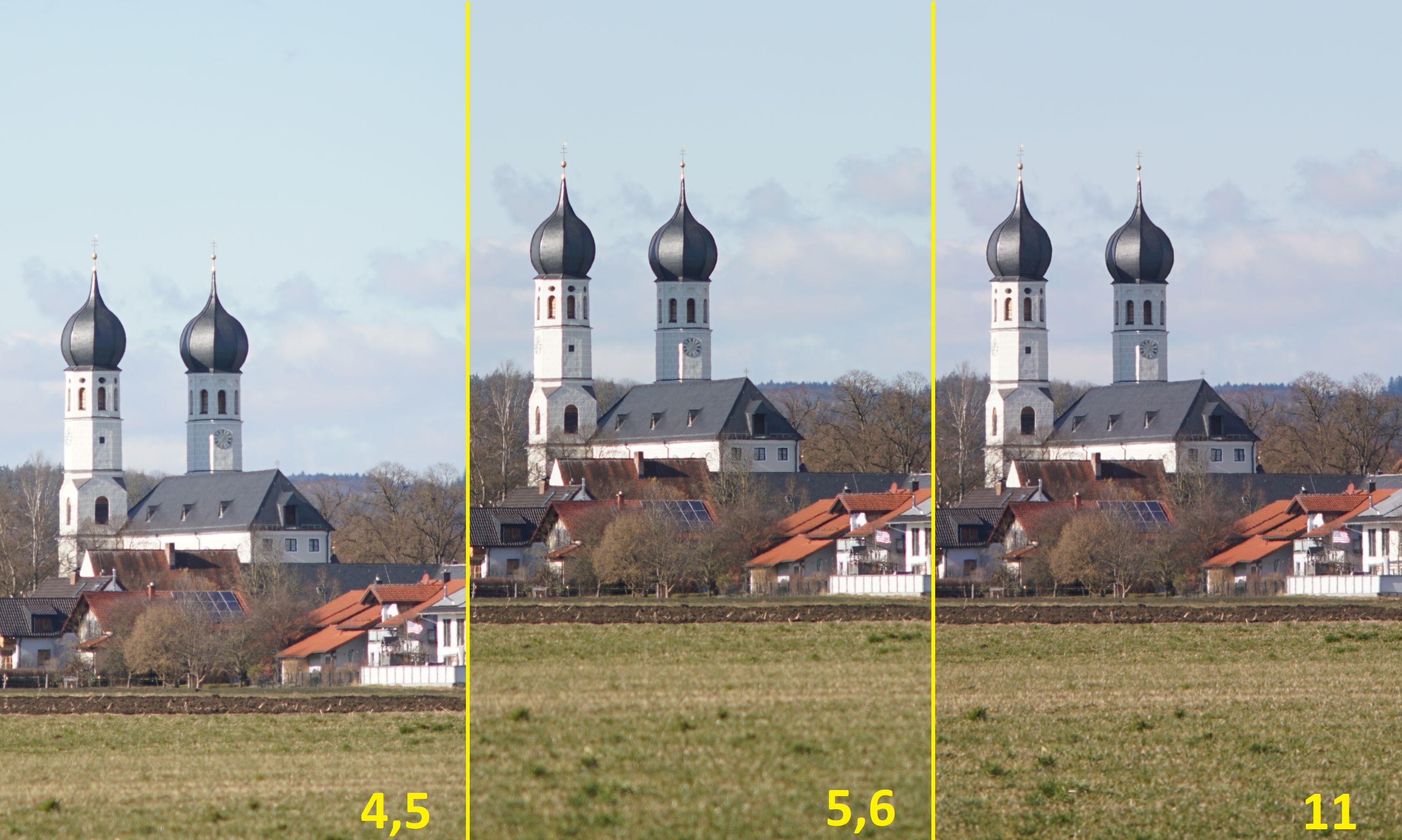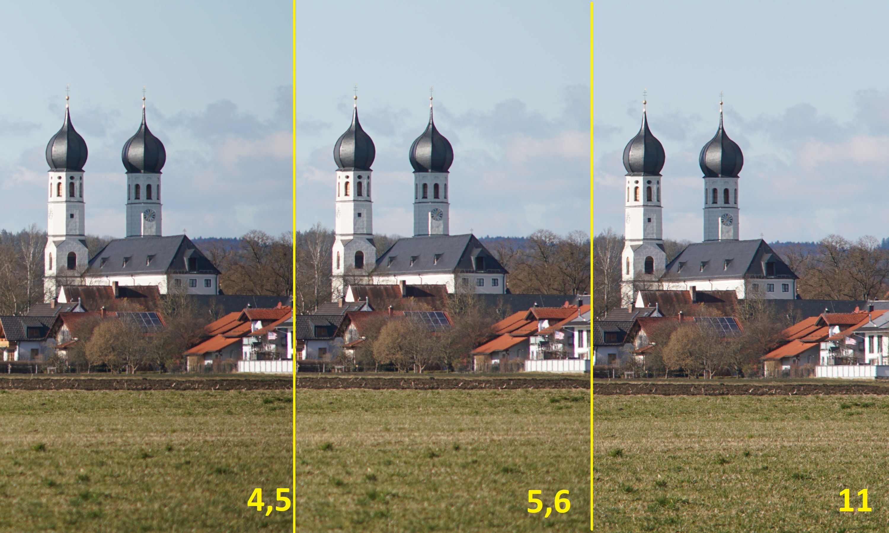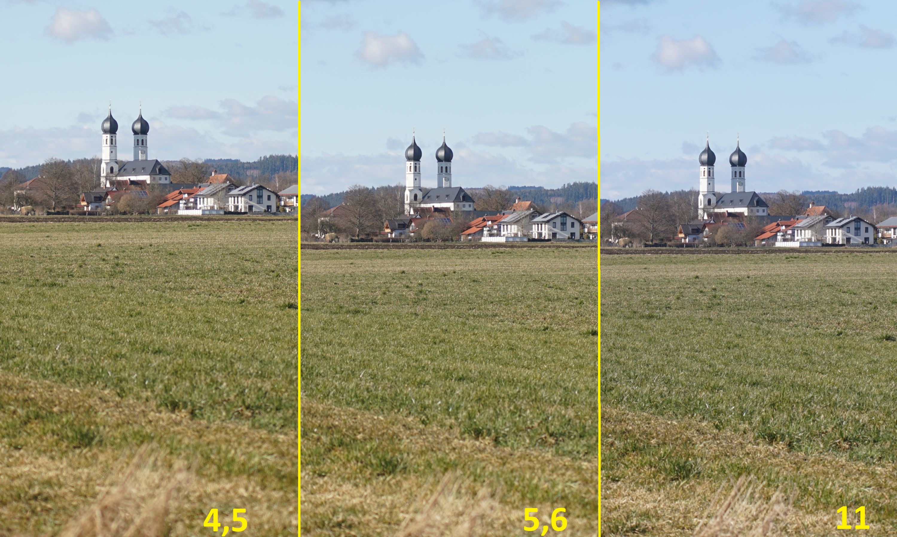 Hier habe ich die Blende 5,6 mit berücksichtigt, um zu zeigen wie stark sich hier ein ganz leichtes Abblenden