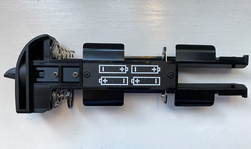 Zwei AA-Batterien im Batteriehalter, die eben noch die T90 in Gang gebracht haben (zusammen mit den beiden anderen), zeigen bei Messung im Batteriehalter eine Gesamtspannung von nur ca. 20 Millivolt. Das kann nicht sein, da würde die T90 nicht arbeiten bei so wenig Spannung.