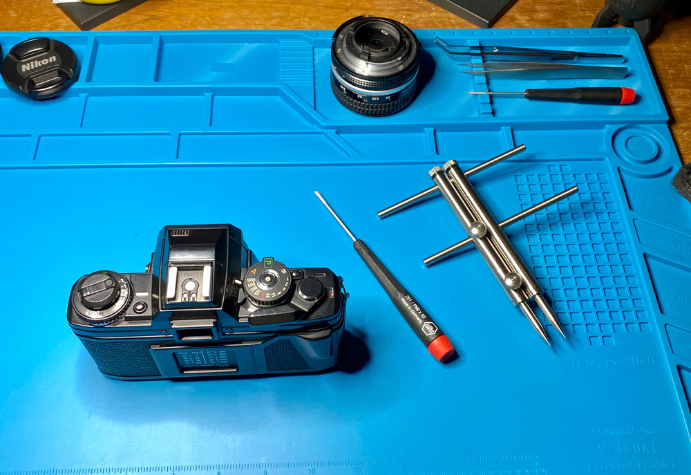 Kandidatin, Schraubendreher, Spannschlüssel und Pinzette. Das Nikkor 50/1.4, oben im Bild zu sehen, ist seit Blendenschaden meine beste Lupe :yes: