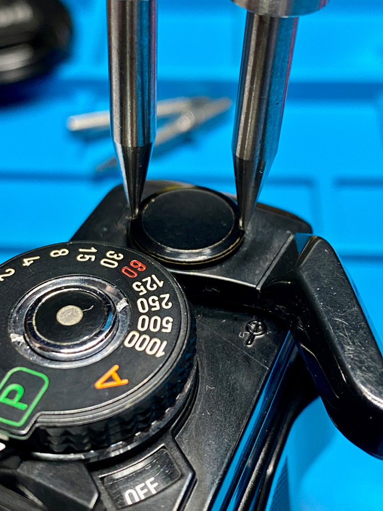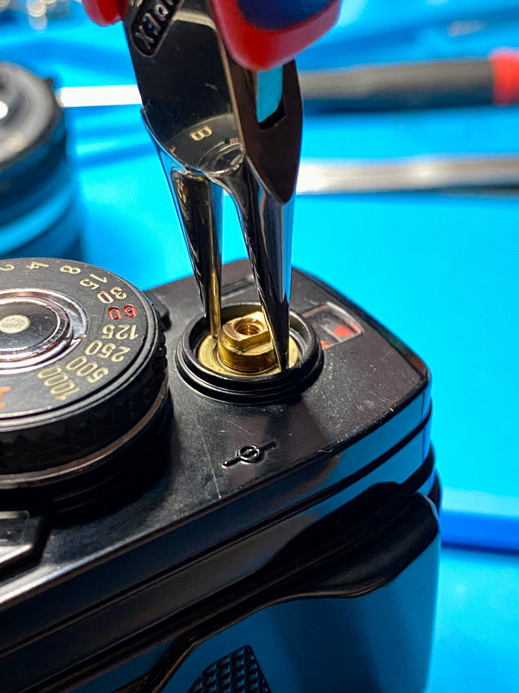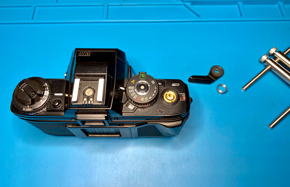 Abmontieren des Filmtransporthebels