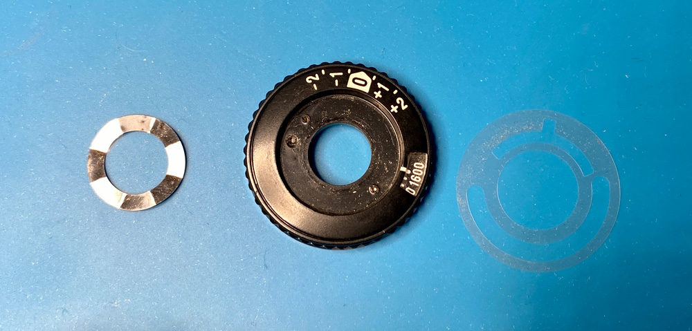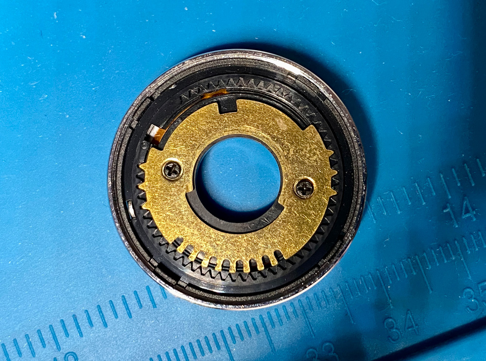 Die beiden Kunststoffscheiben auf dem Kontaktring müssen für das Wiederaufsetzen des Override-Einstellrings ausgerichtet werden. Details dazu finden sich im Video (Link s. erster Beitrag).
