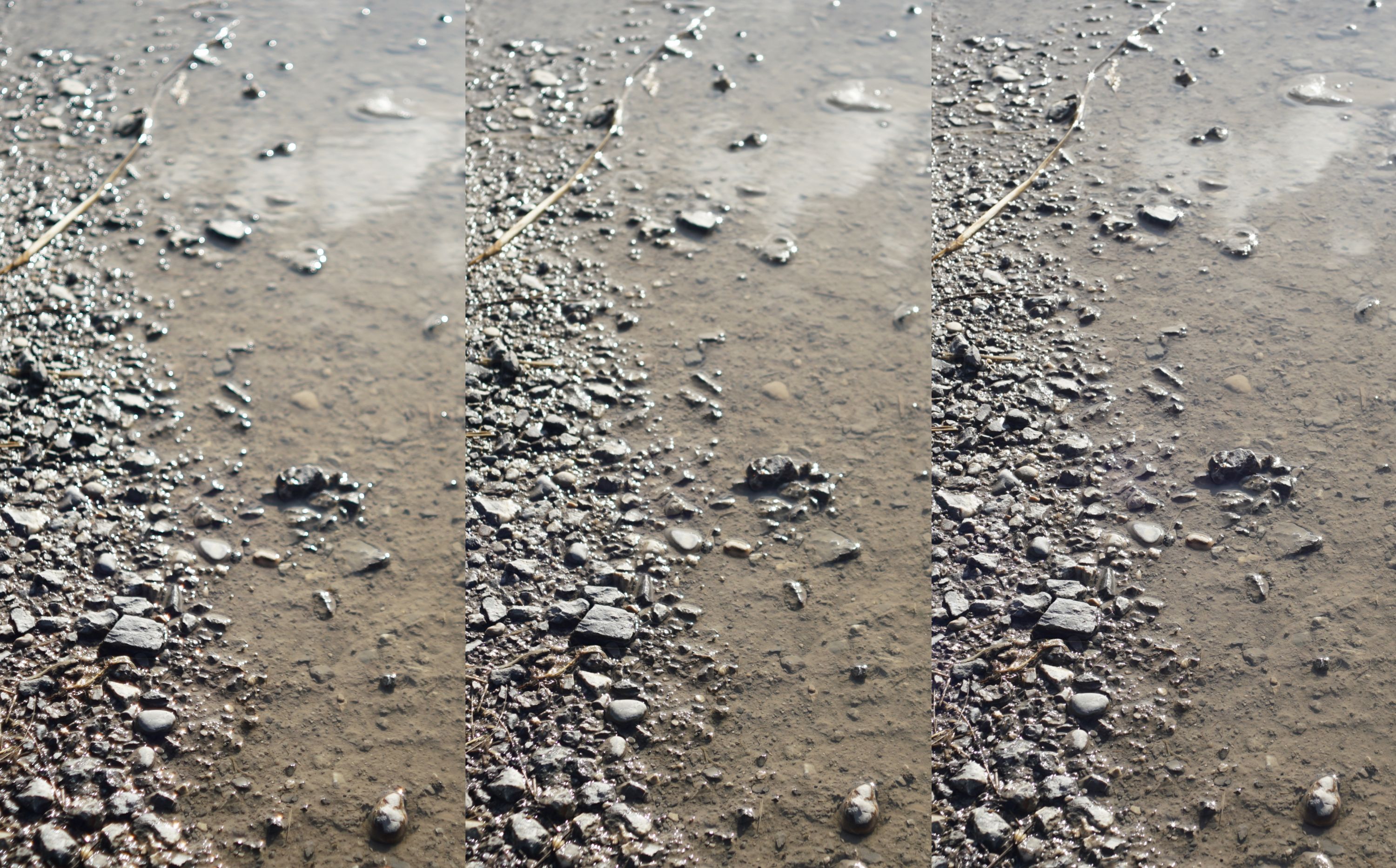 Auch die etwas weiter entfernte Pfütze mußte als Testobjekt herhalten, auch hier habe ich crops der sensiblen