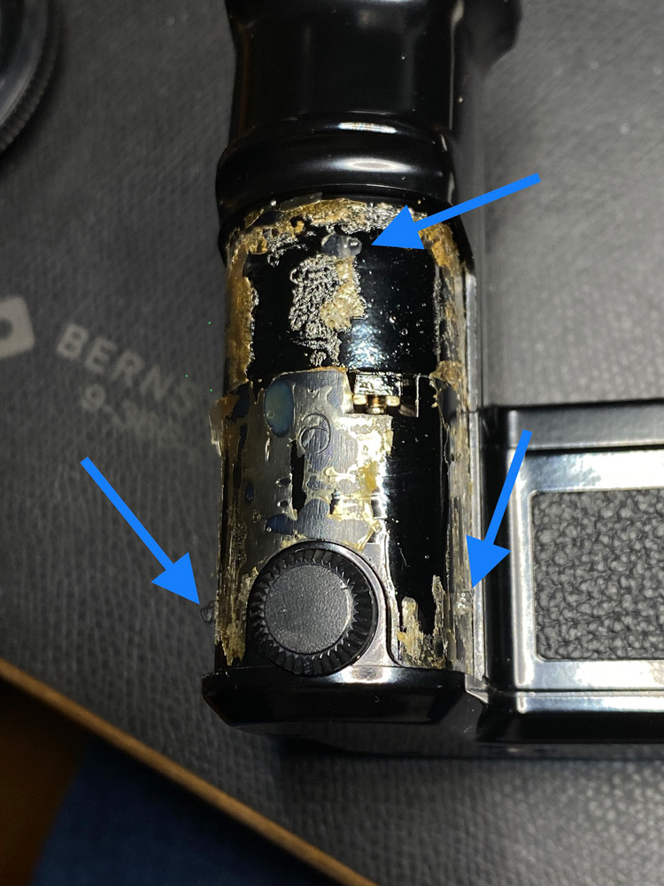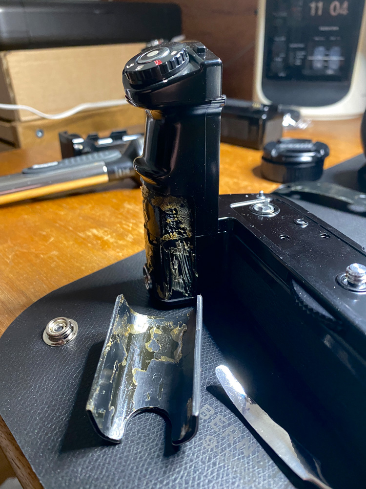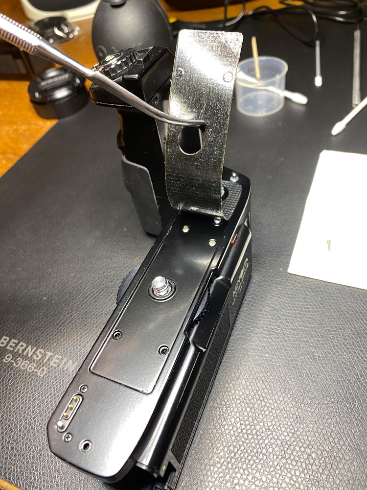 Also isolierte ich die Stelle provisorisch mit Klebeband und stellte die Kamera auf den Motor Drive: