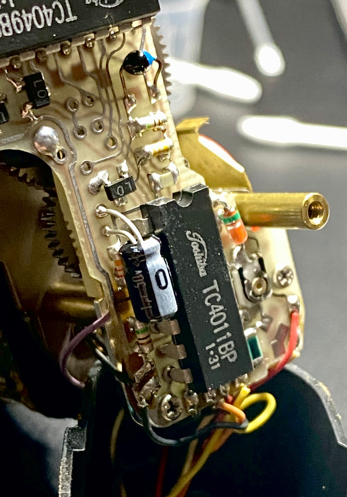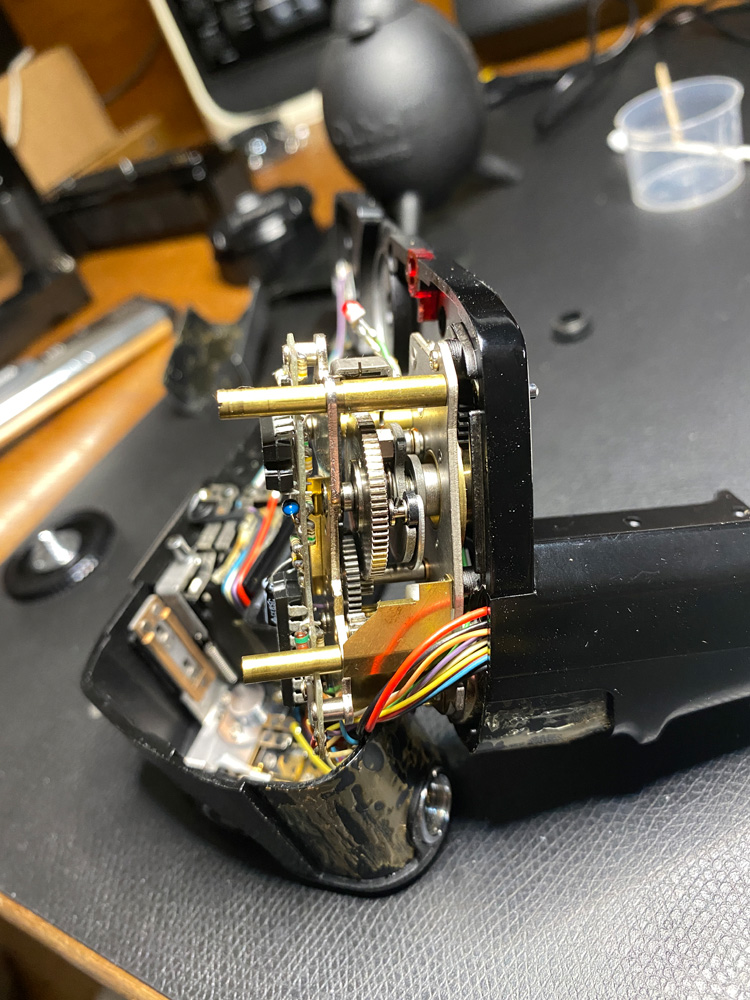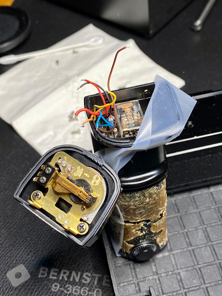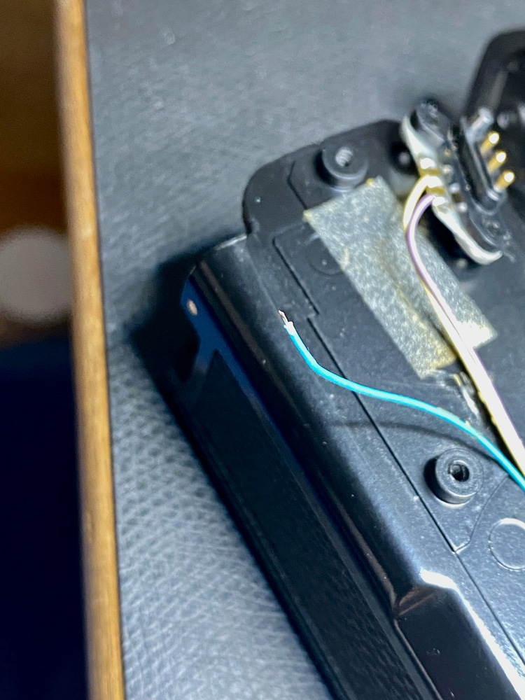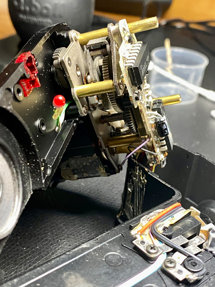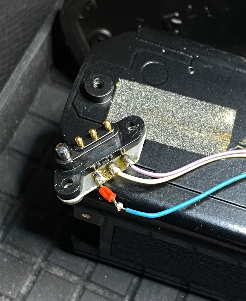 Also schraubte ich den Motor Drive nochmals auf und sah mir die Kontakte, Lötstellen und Kabel an.