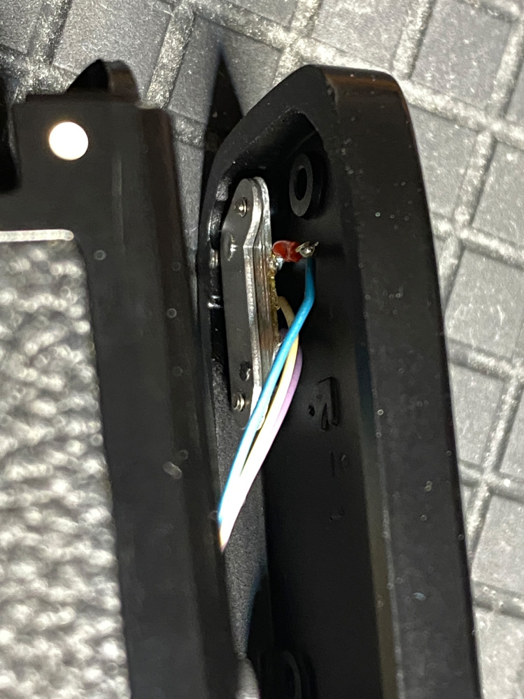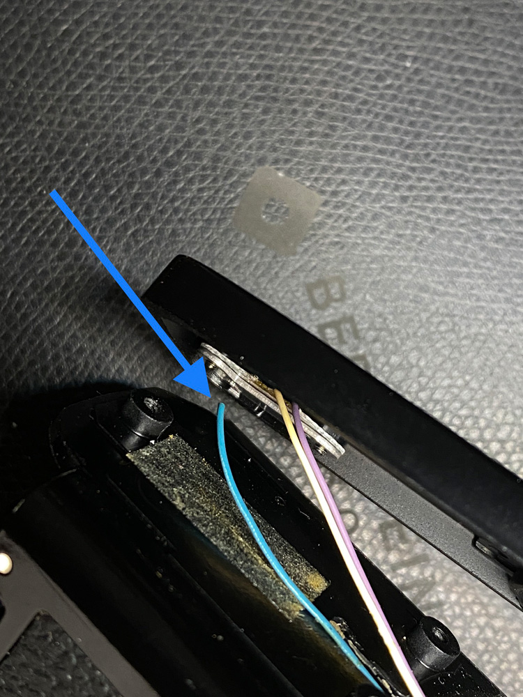 Und tatsächlich, eines der dünnen Kabel, die von der Kontaktleiste wegführen, zeigte eine Quetschung.