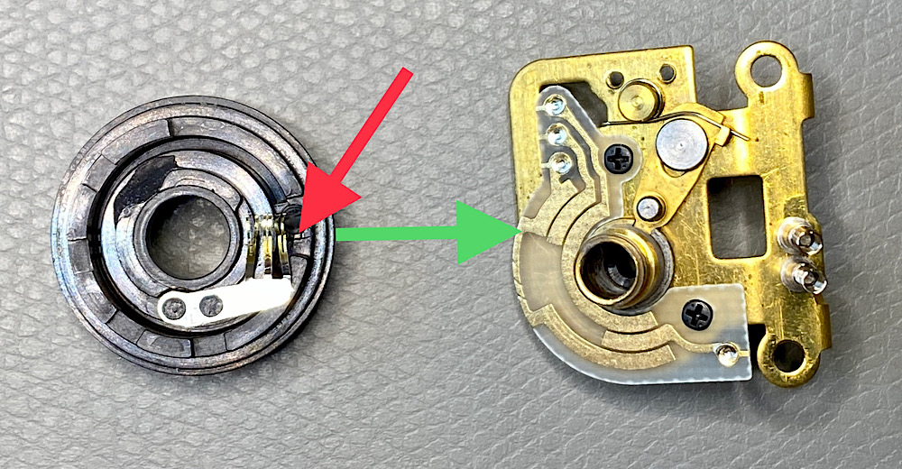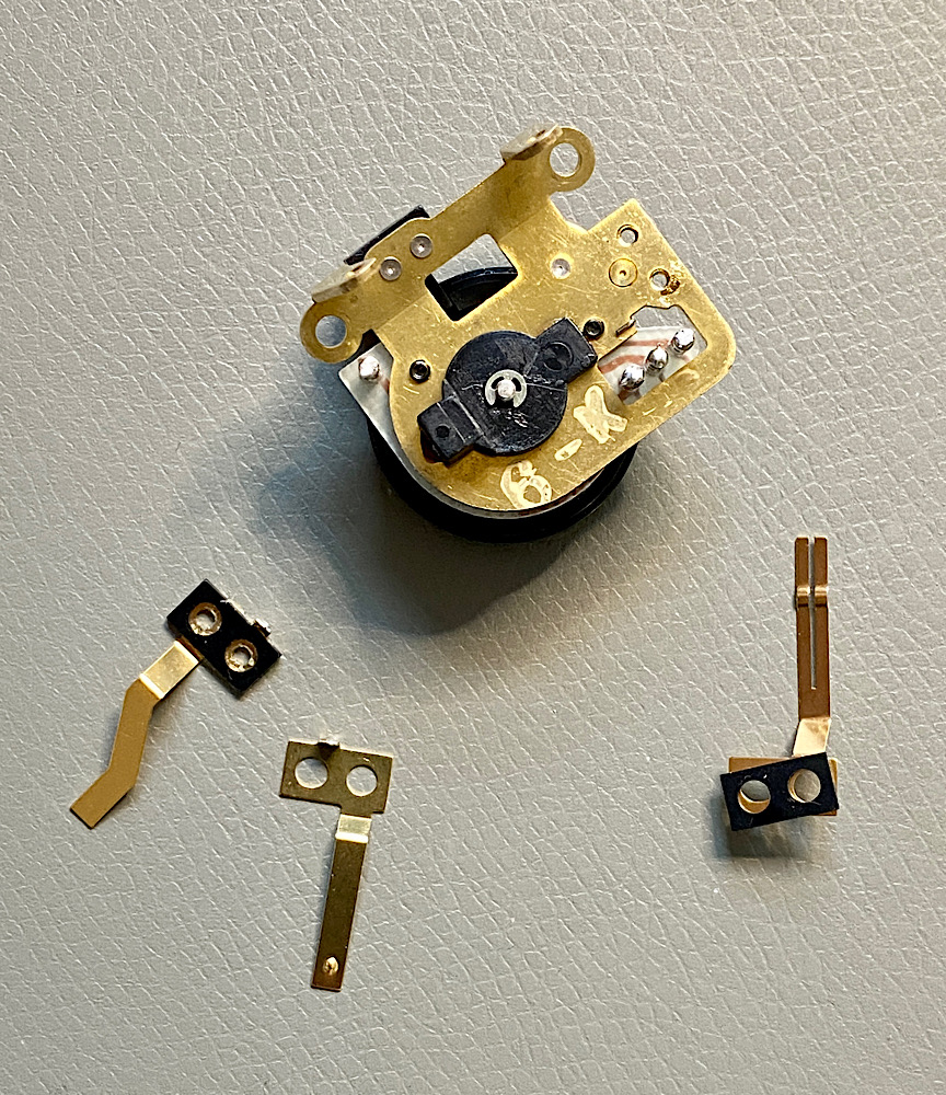 Wie ein Vergleich mit einem anderen Motor Drive zeigte, laufen alle drei Schleifer parallel auf je einer Widerstandsbahn. Nur hier war der äußerste Schleifer verbogen und hatte keinen Kontakt mehr.