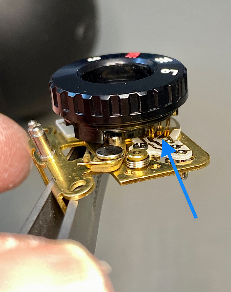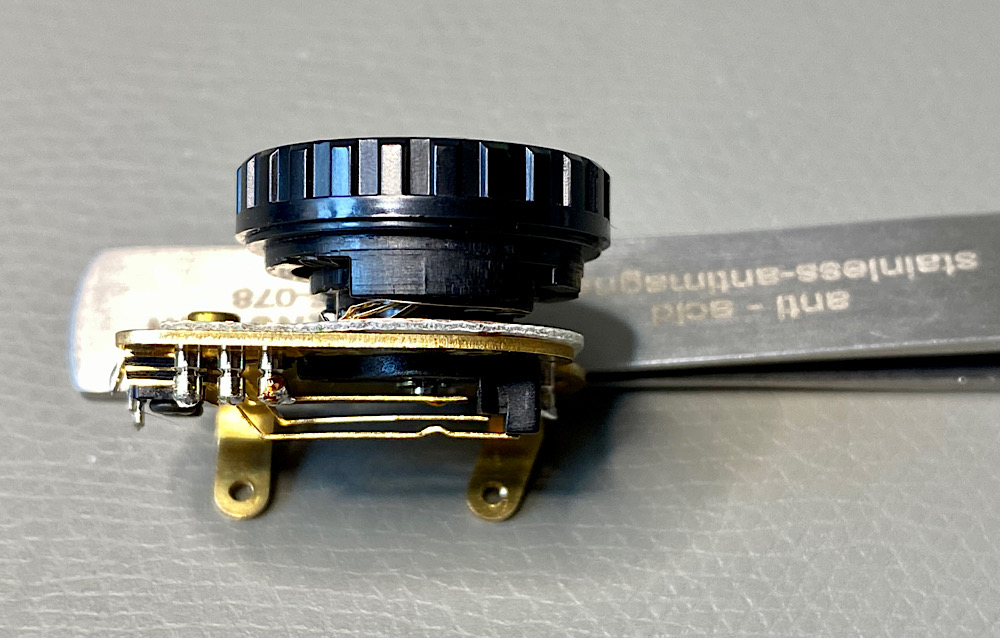 Damit kam ich aber auch nicht an das Poti mit den Schleifern heran. Ein Versuch, den verbogenen Schleifer von außen zu justieren, misslang.