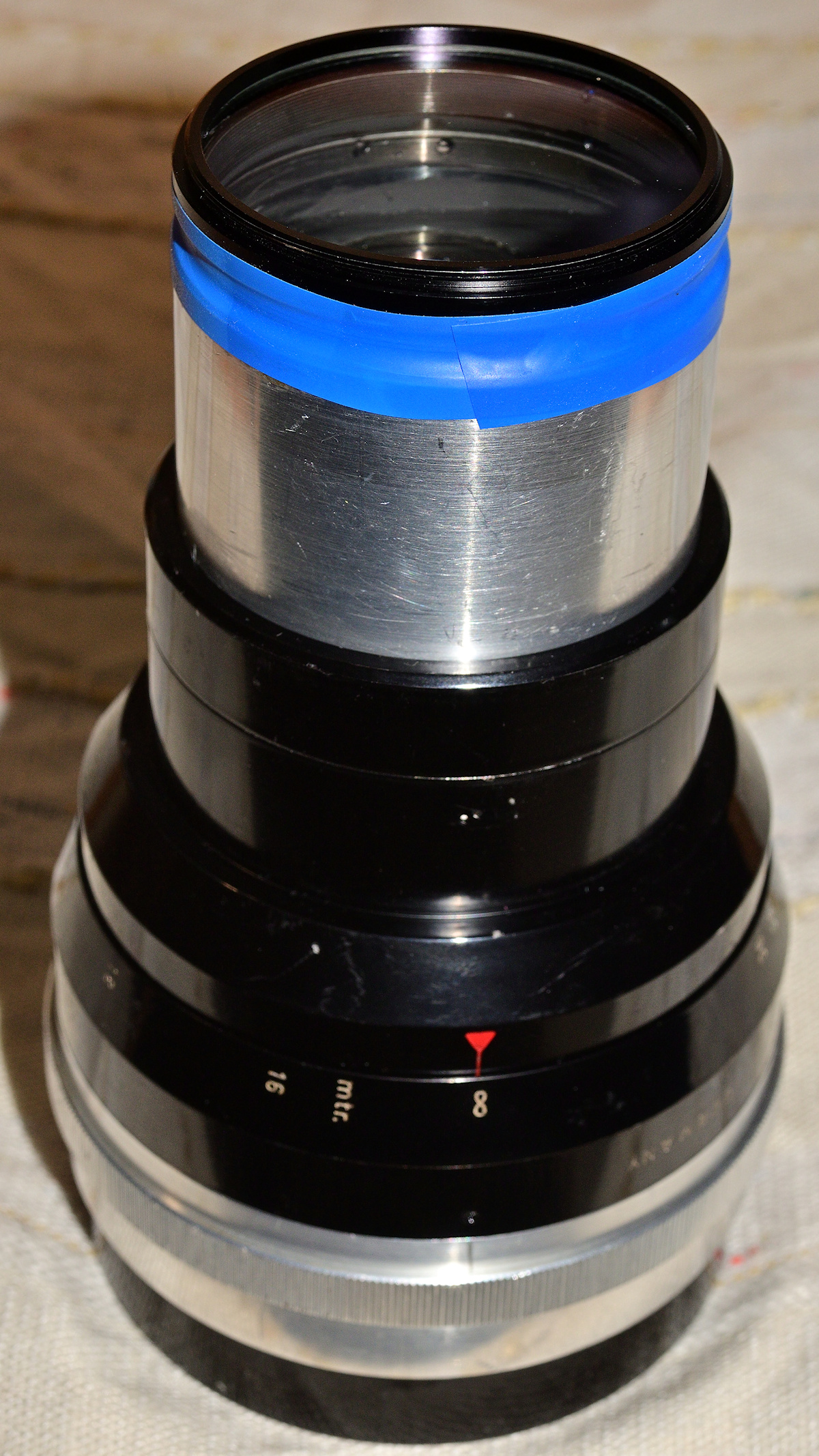 Wie schon zuvor geschrieben, vermute ich aufgrund der auf unendlich bis 16 Meter beschränkten Fokussierung, dass es vielleicht eher für den Vorsatz an Kinofilmprojektoren gedacht war, wofür m.E. auch die mit 66 mm Durchmesser sehr große Hinterlinse spricht.