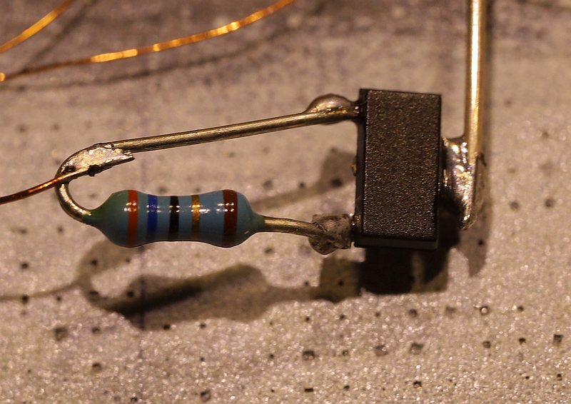 Der 100-Ohm-Vorwiderstand (statt 70 Ohm) nimmt den LED zwar ein paar Milliampere Strom weg, aber es reicht völlig aus. Und ich sollte ihn in meinem Vorrat finden (E-Reihen-Wert - hoffentlich ;)