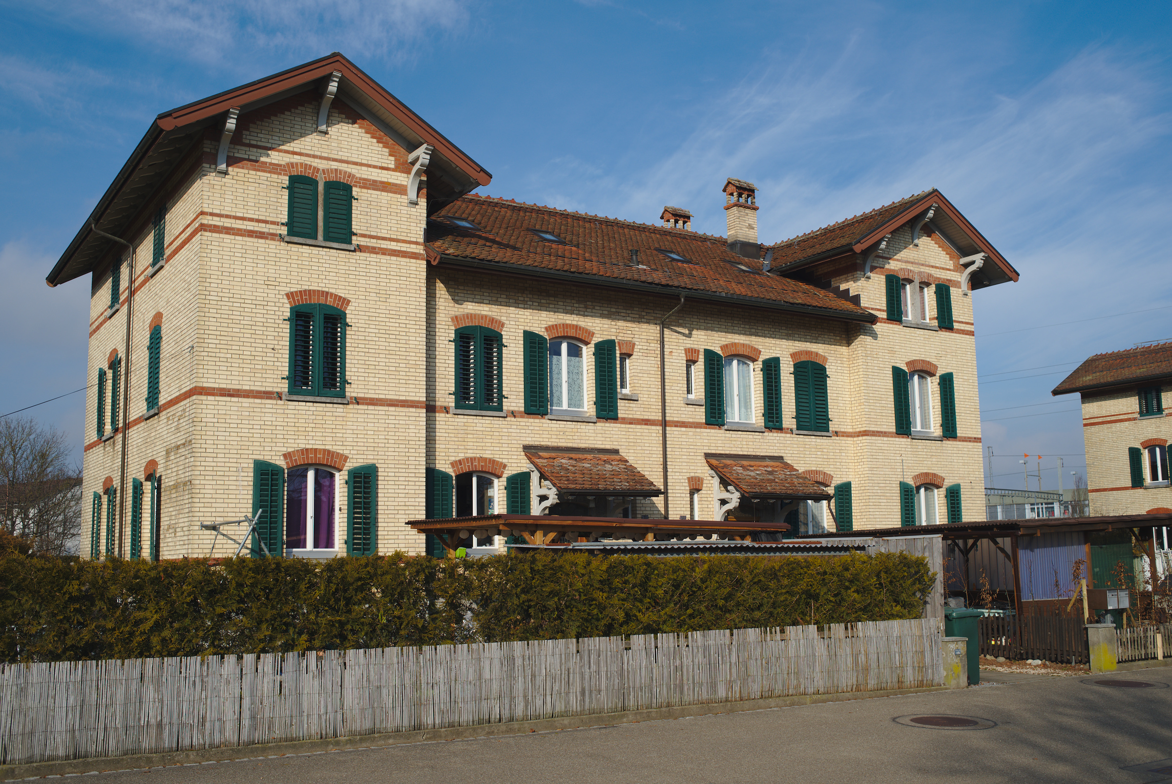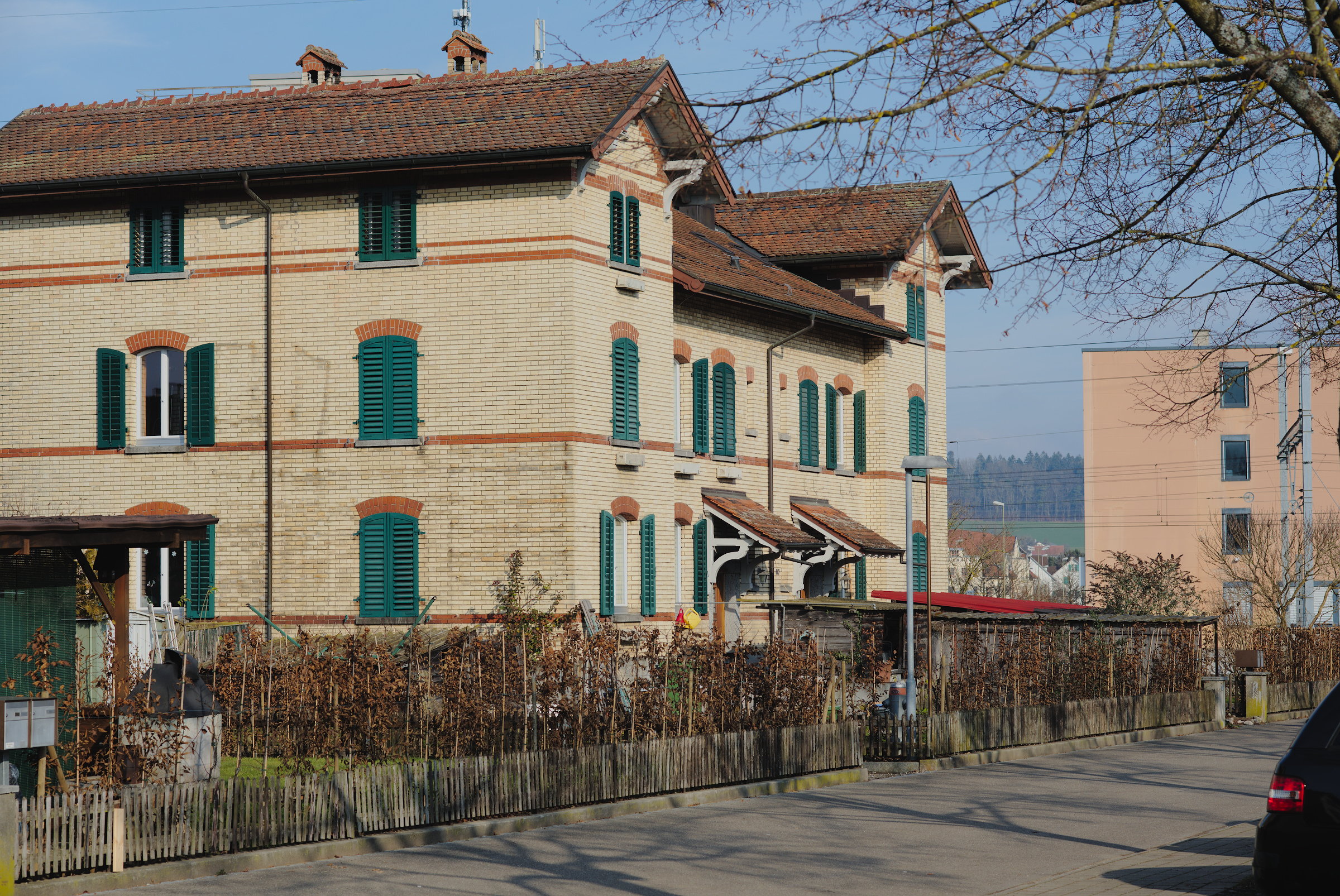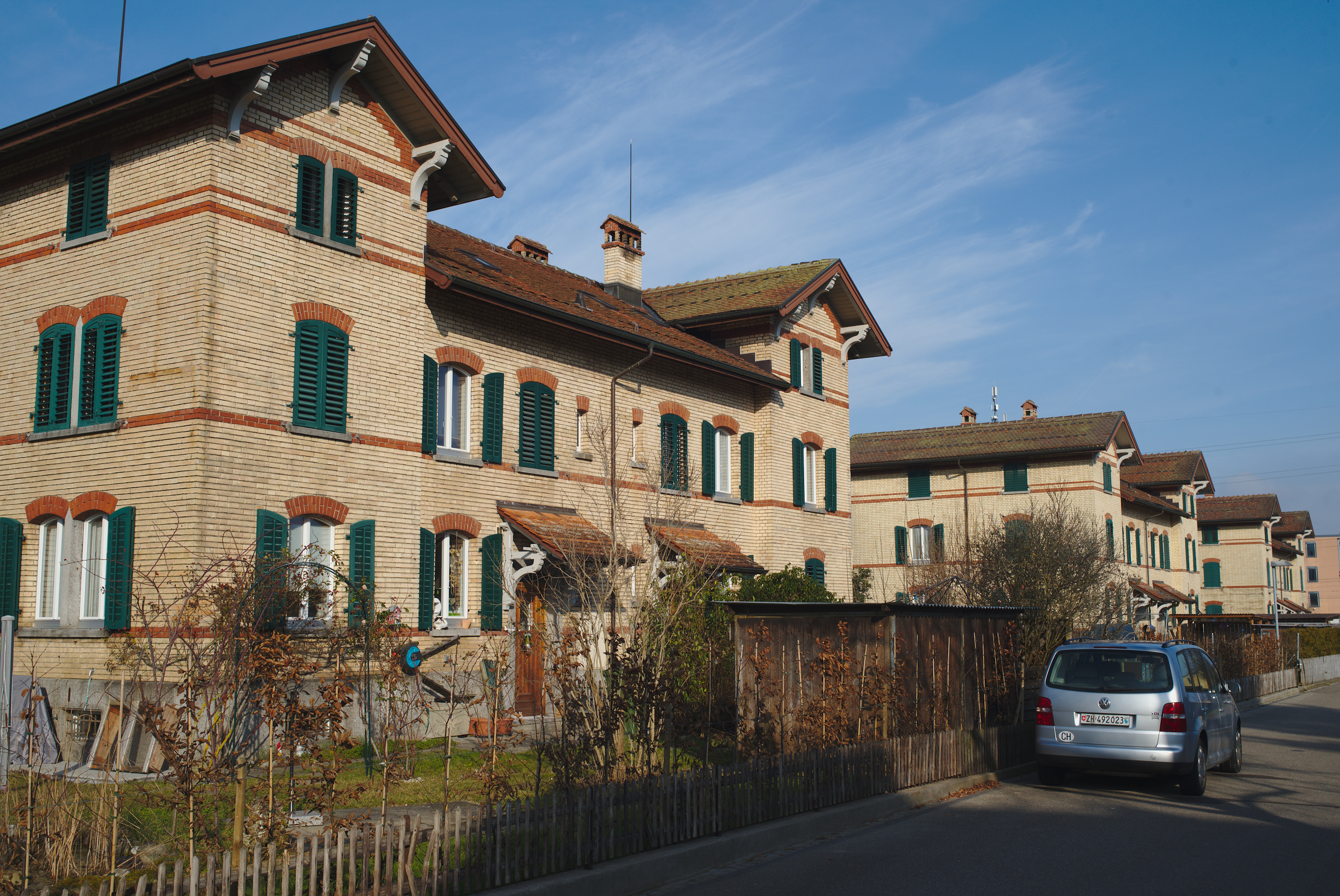 Diese Häuser sind Baujahr 1901 und waren für Beamte und Angestellte der kantonalen Strafanstalt Pöschwies in Regensdorf.