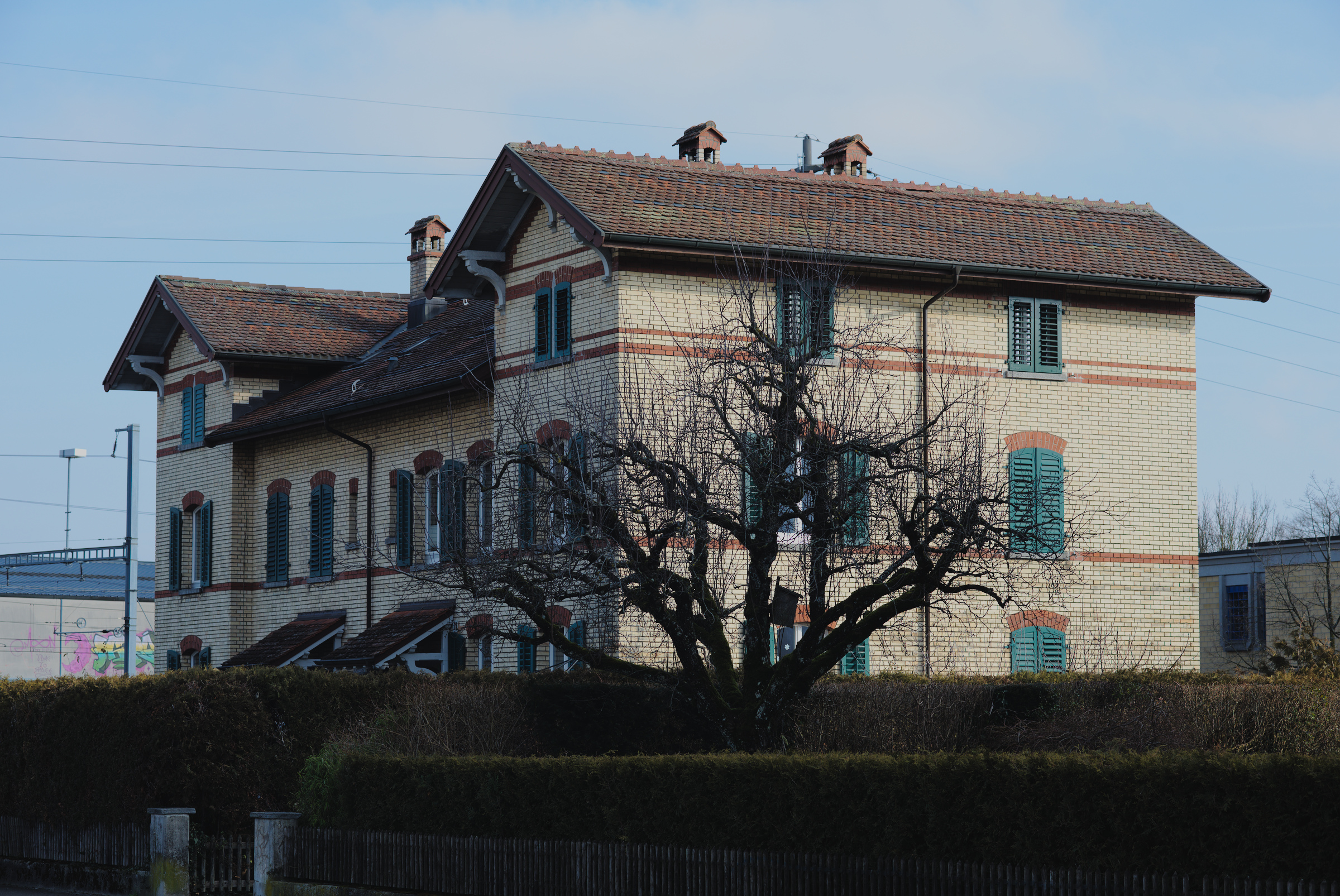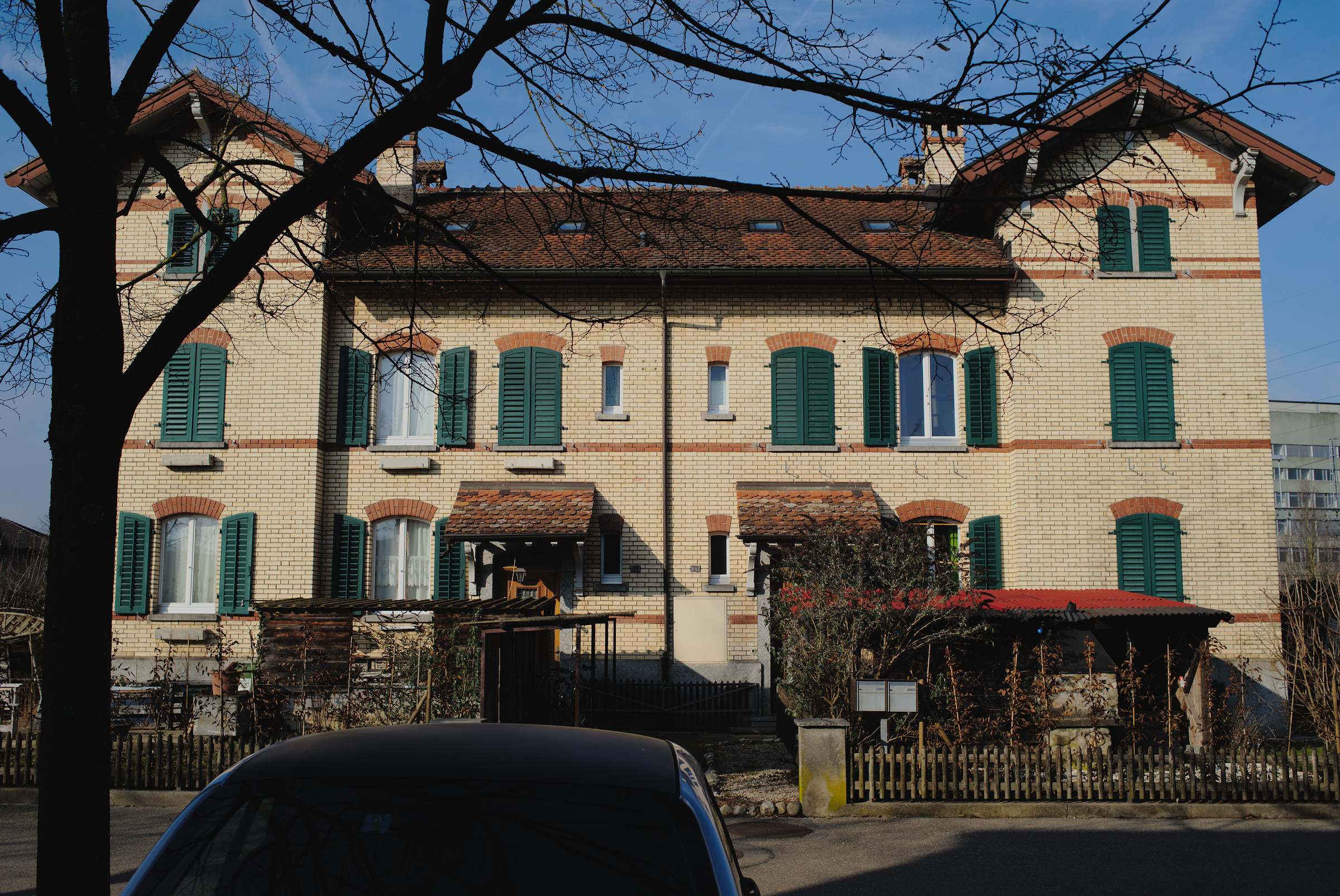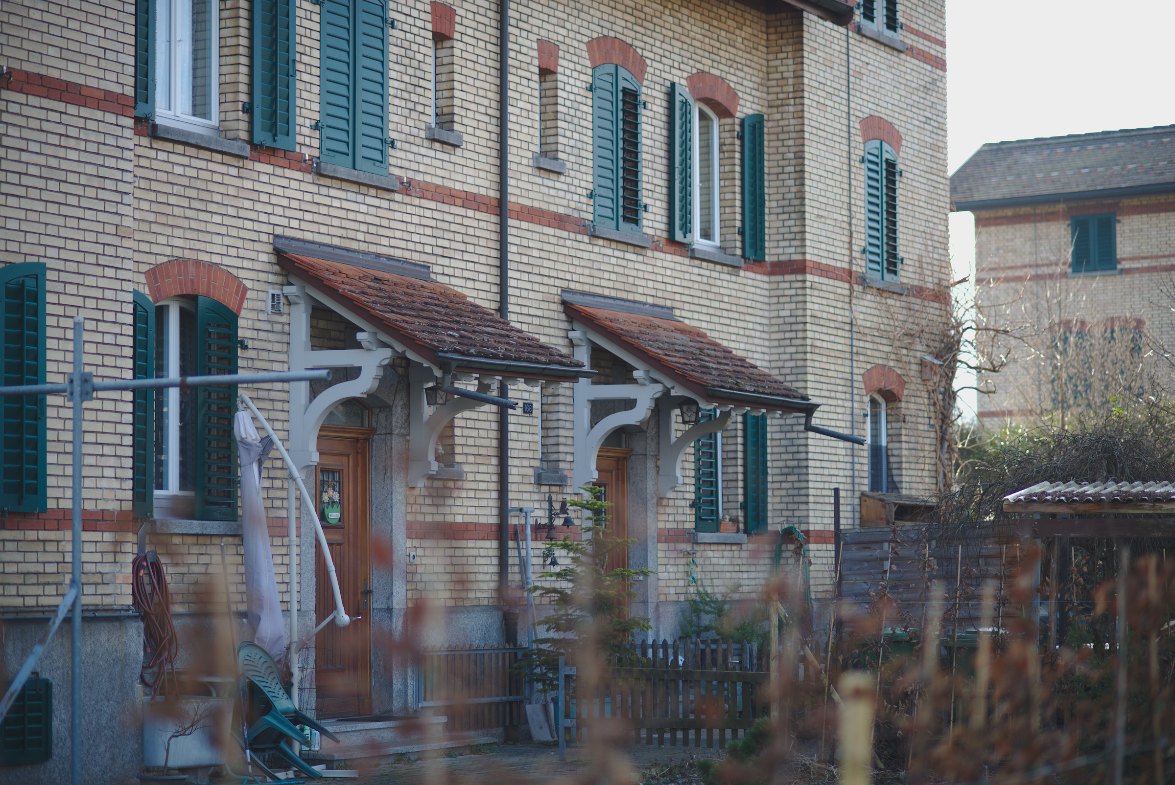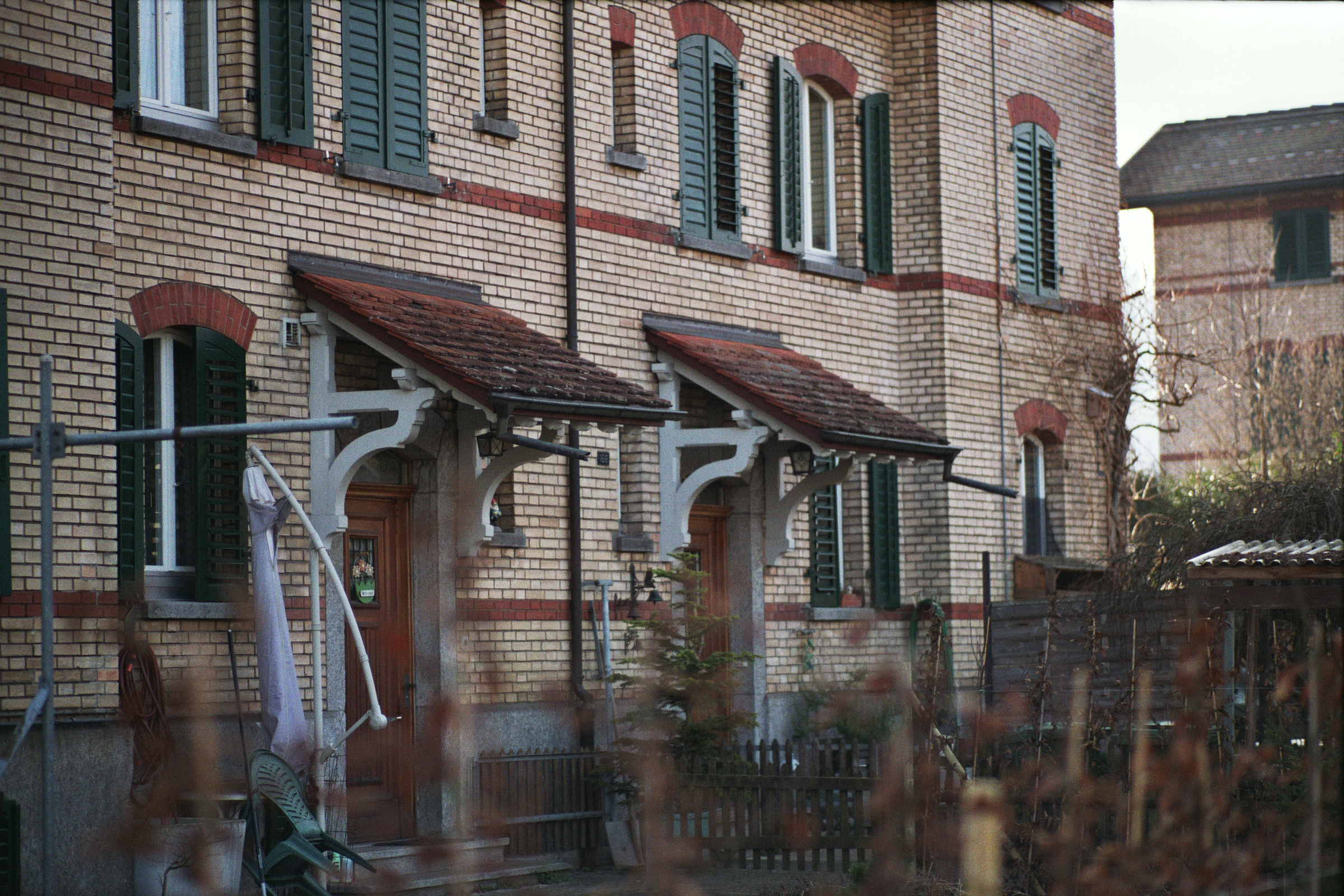 Diese Häuser sind Baujahr 1901 und waren für Beamte und Angestellte der kantonalen Strafanstalt Pöschwies in Regensdorf.