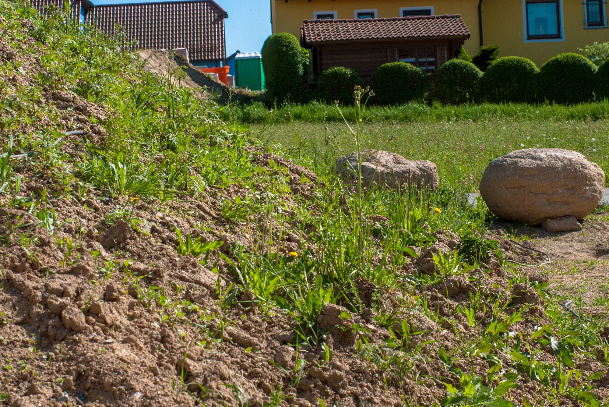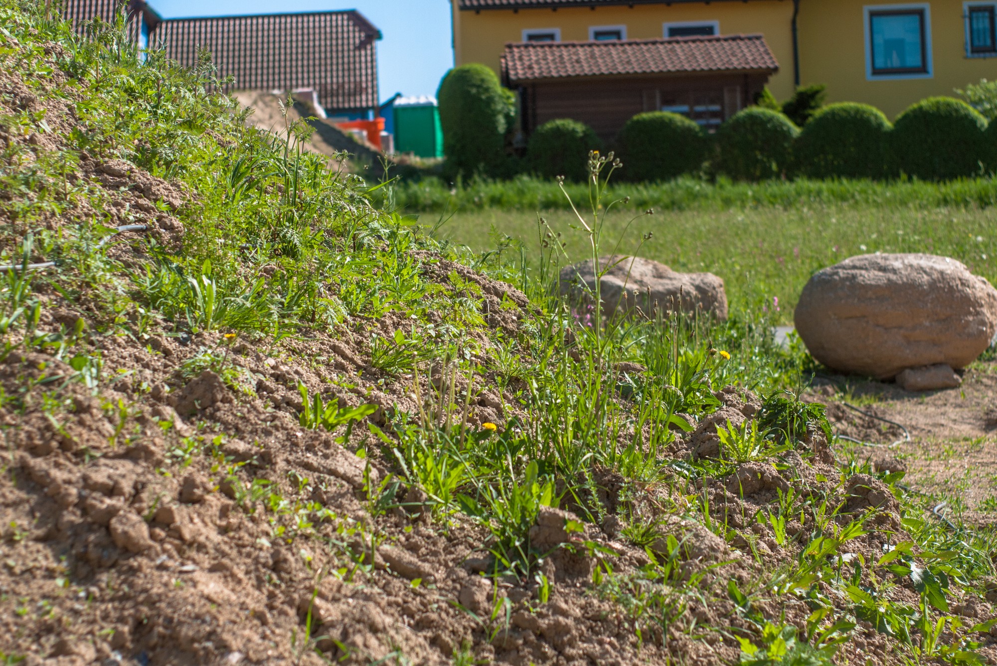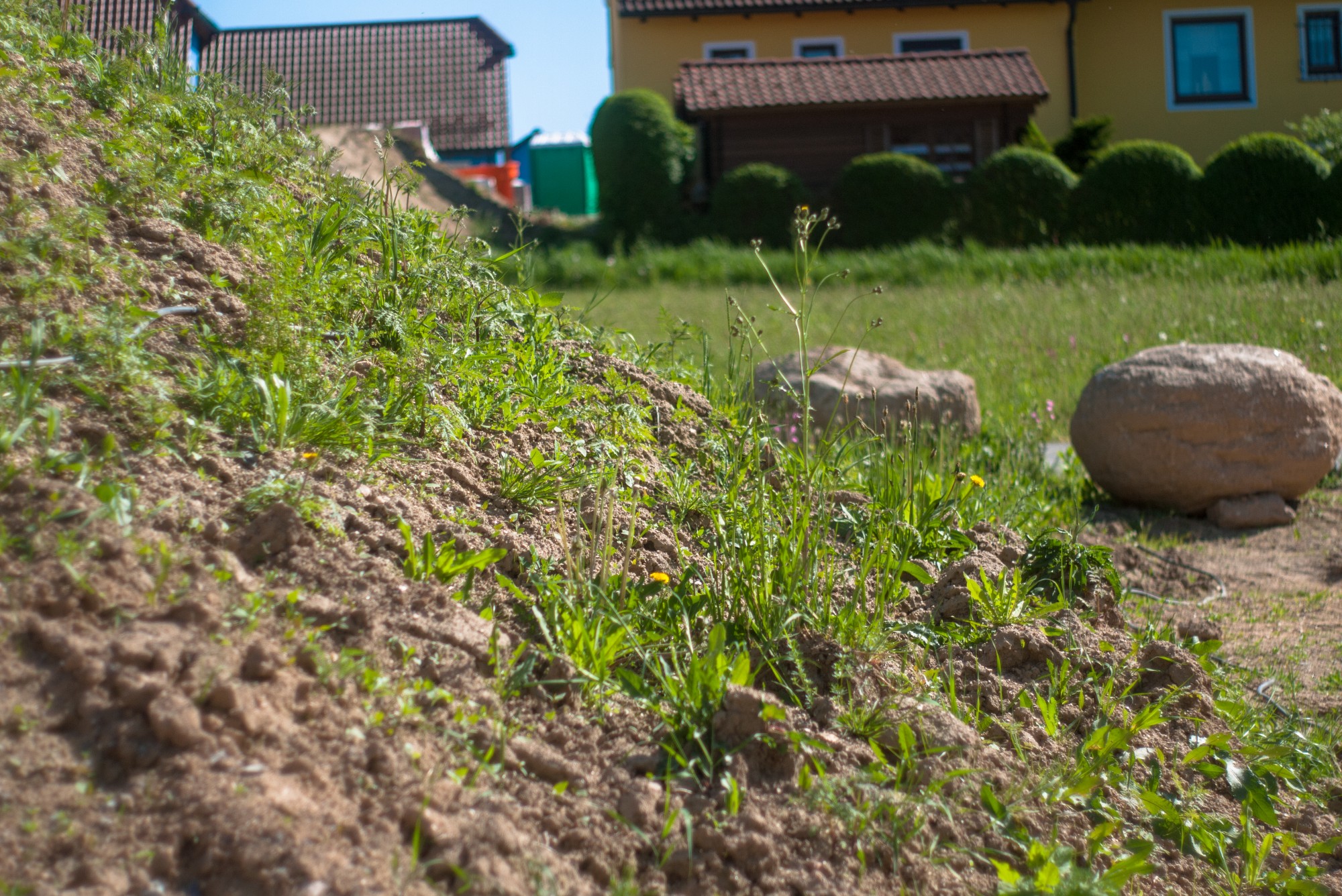Berghaufen mit Grün Fokus kurz hinter der rausragenden Pflanze .