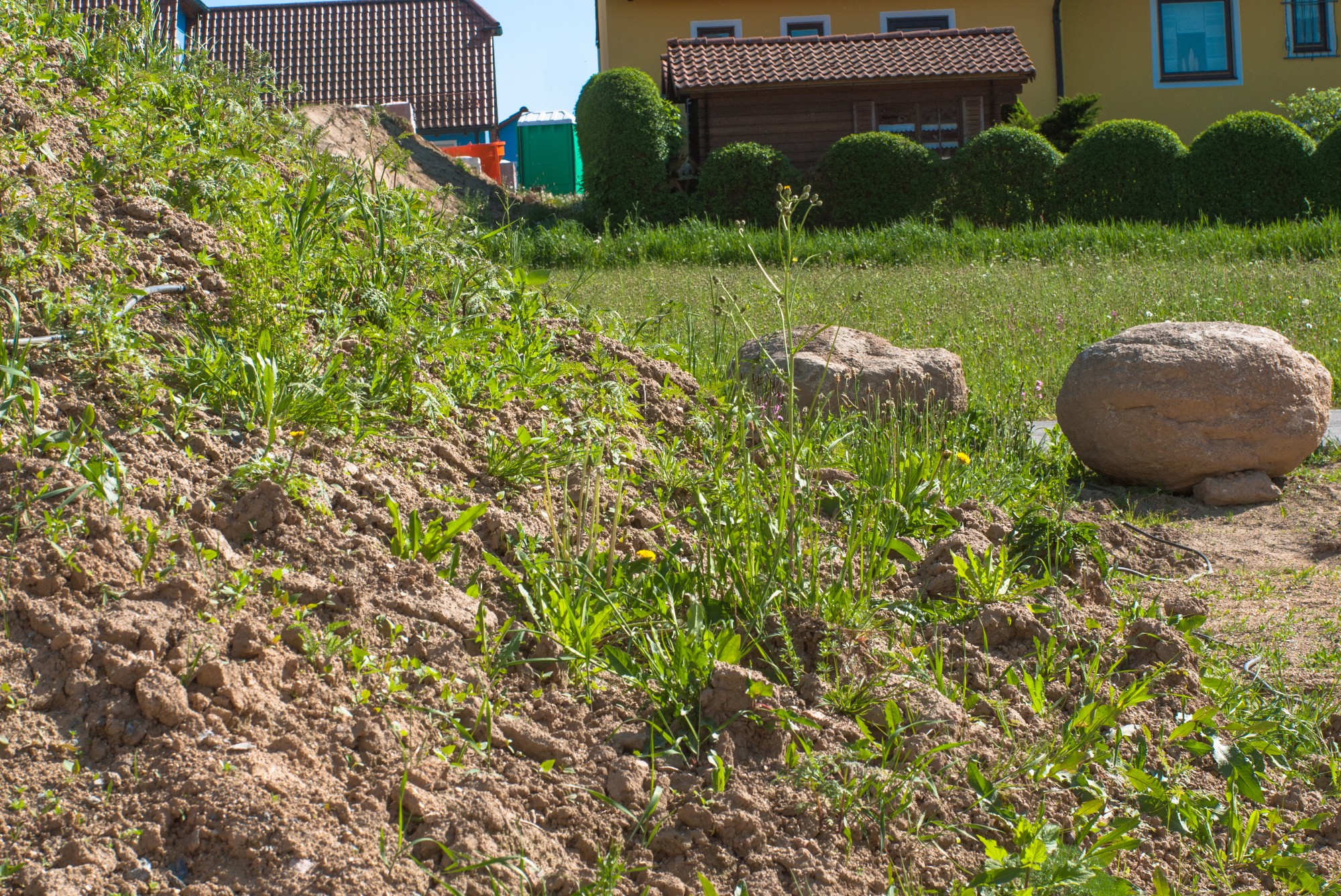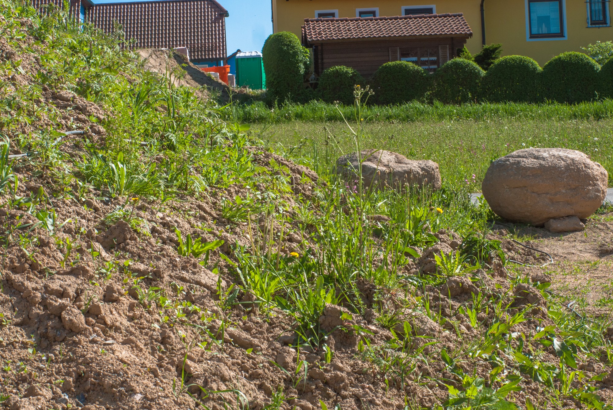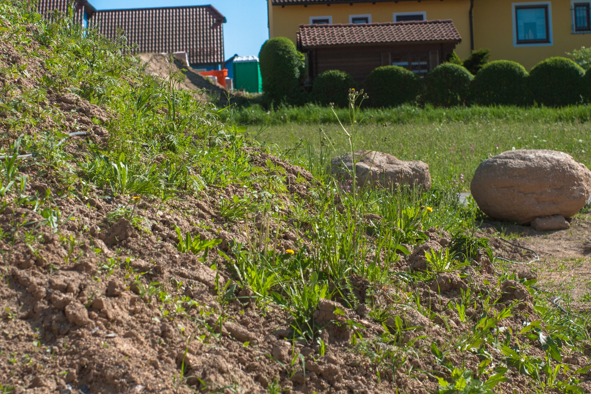 Berghaufen mit Grün Fokus kurz hinter der rausragenden Pflanze .