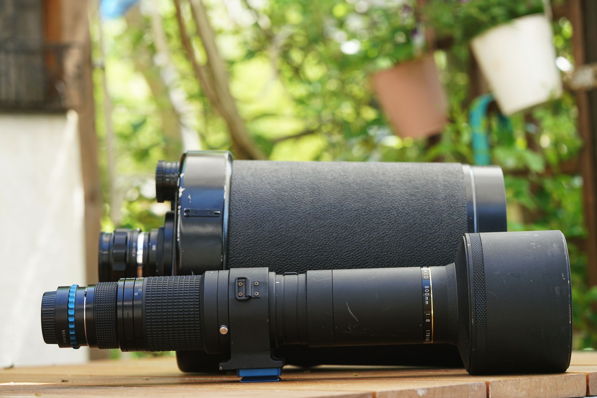 Interessant: Das Nikon 8/800 ist deutlich lichtstärker als das Minolta RF-Rokkor 8/800. Lt. den Verschlußzeiten um fast
