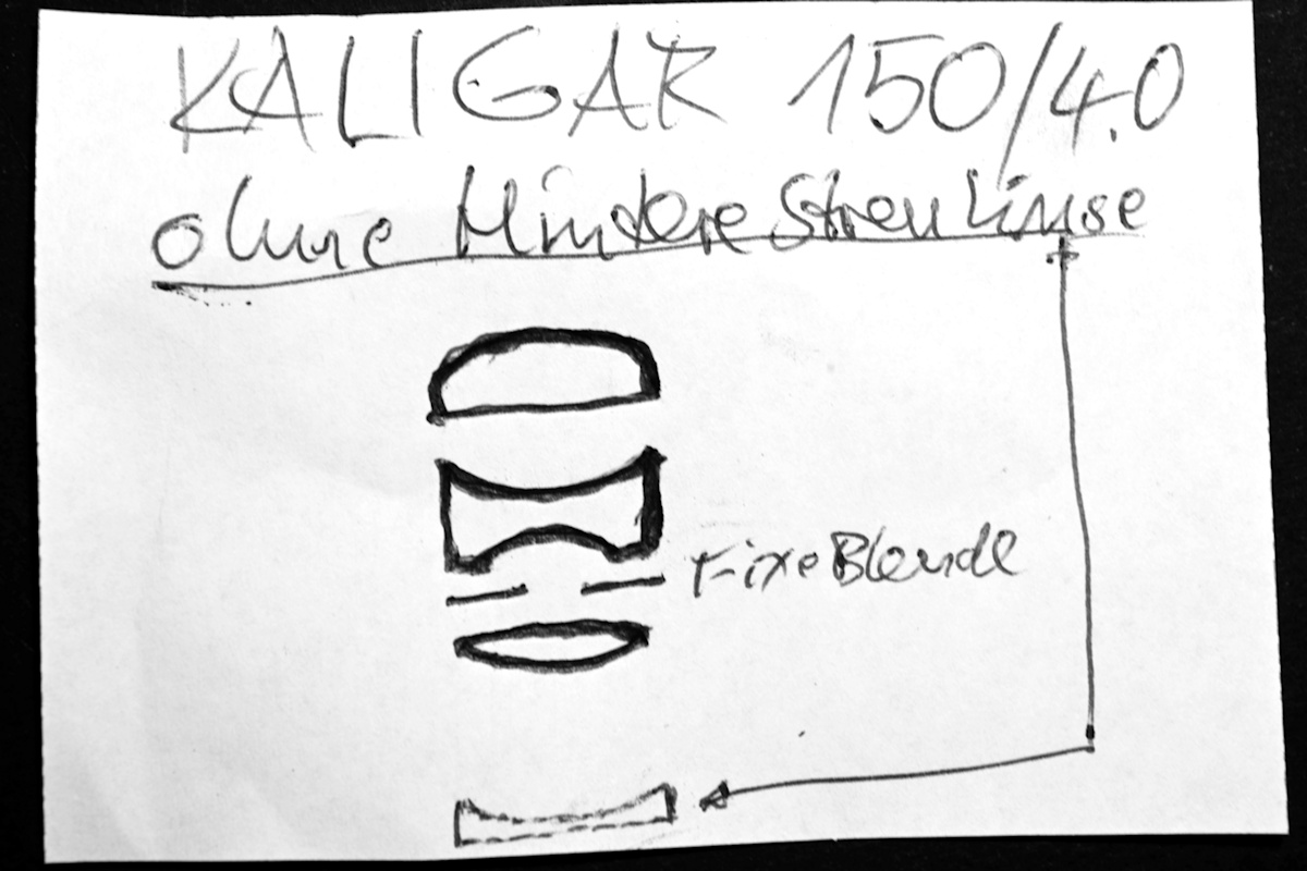 im Rahmen eines größeren Reparaturauftrages blieb mir ein KALIGAR 150 mm 1:4 übrig, dessen hintere (Streu-)-Linse fehlt und dessen Irisblende irreparabel kaputt war.