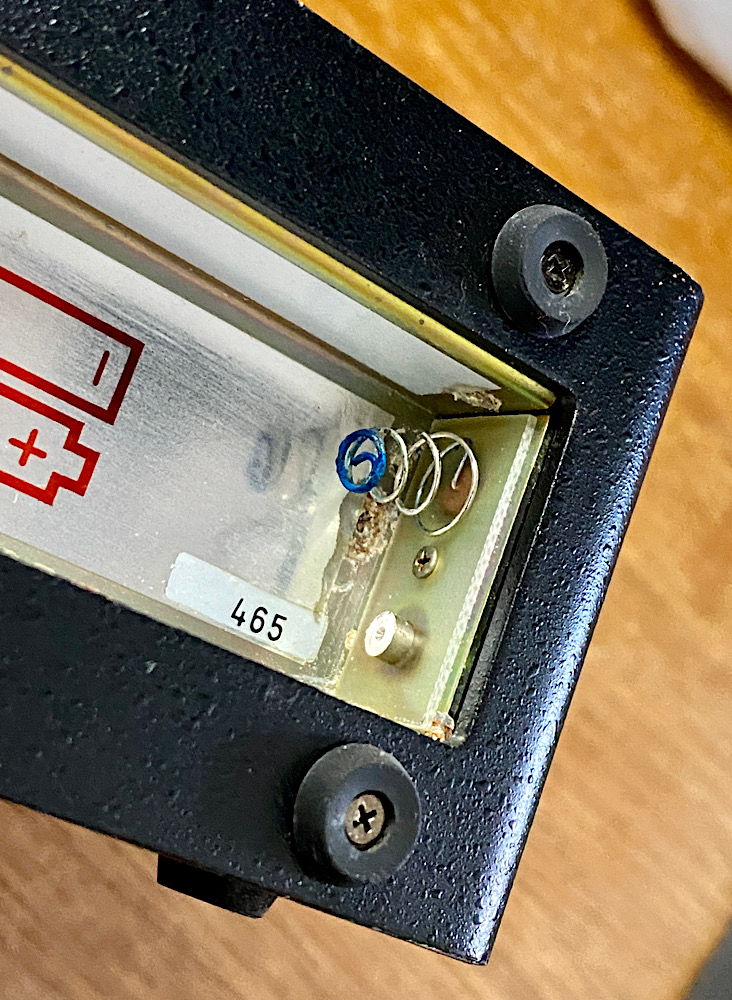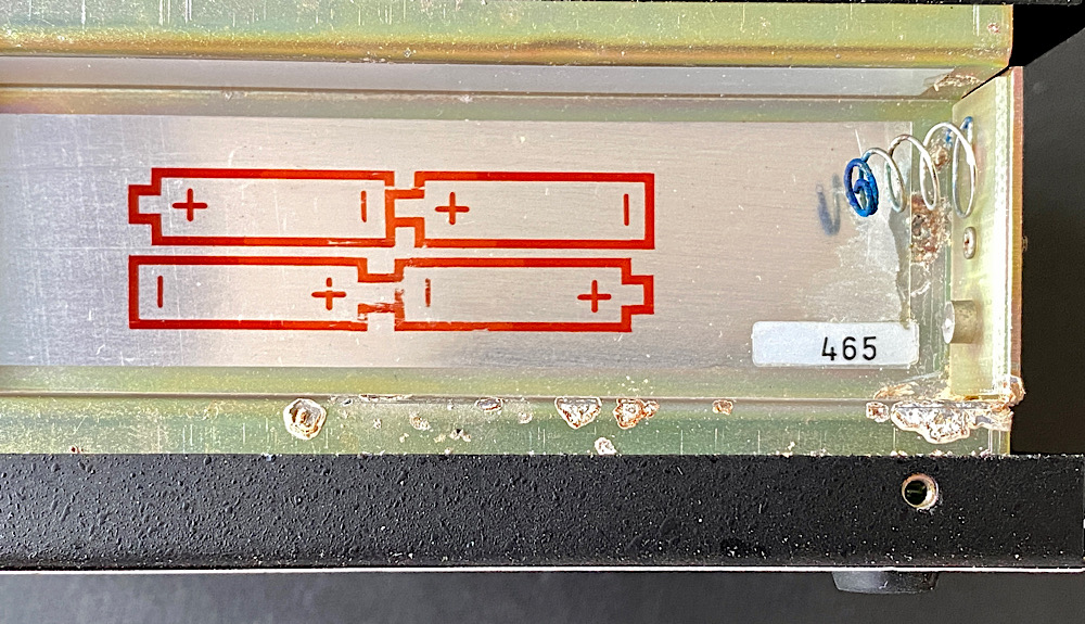 Wie so oft wurden wohl die eingelegten Batterien vergessen und diese rächten sich über die Jahre durch Auslaufen. Die ausgetretene Batteriesäure griff dann die Federn aus Metall an.