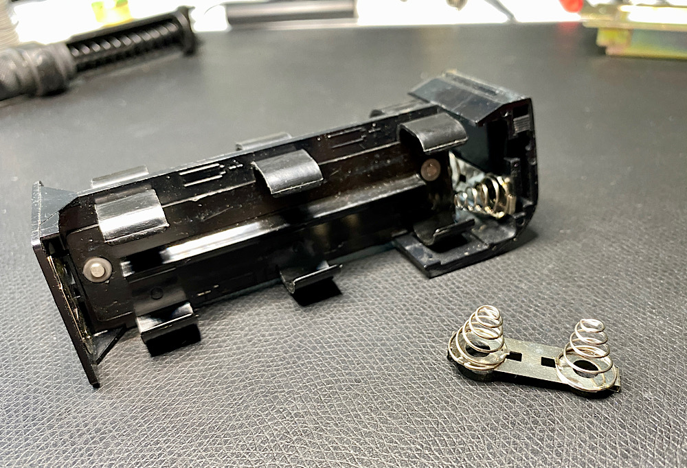 Ersatz für die abgebrochene Kontaktfeder Nr. 2 finde ich in einem Batteriehalter für den MD-4 Motor Drive: