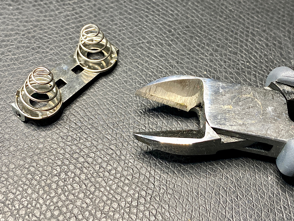 Für harten Draht wie den aus dem die Kontaktfeder gemacht ist, nutze ich dieses Beißmonster von Knipex.