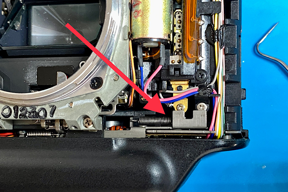 Nun noch die entsprungene Feder dort wieder aufspannen.