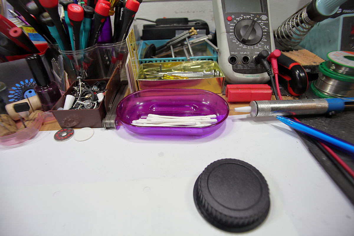 Um zu verhindern, dass Ausdünstungen des Klebstoffes beim Abbinden die inneren Linsenoberflächen vernebeln, habe ich dann eine Weile Frischluft durch den Tubus geblasen.