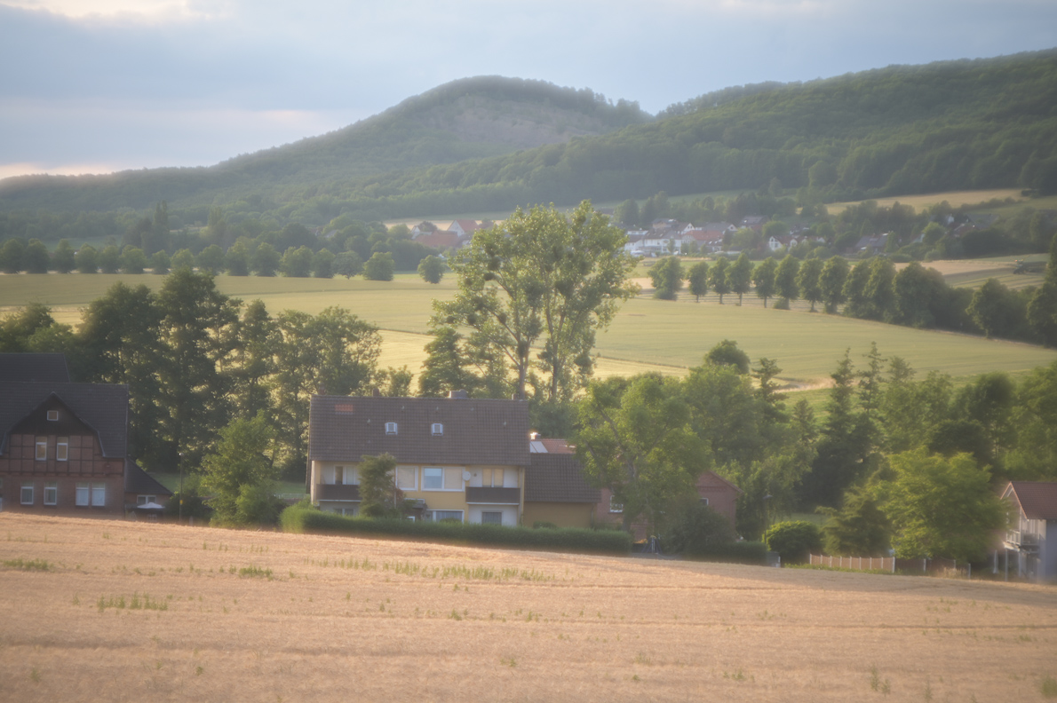 - Sehr starker Kontrastverlust, wenn die Sonne schräg ins Objektiv scheint. Sonnenblende geht nicht (kein Gewinde), abschatten mit der Hand sehr empfehlenswert. (Wenn die Sonne hingegen direkt im Bild ist, tritt der Kontrastverlust nicht auf und der Kontrast ist in Ordnung.)