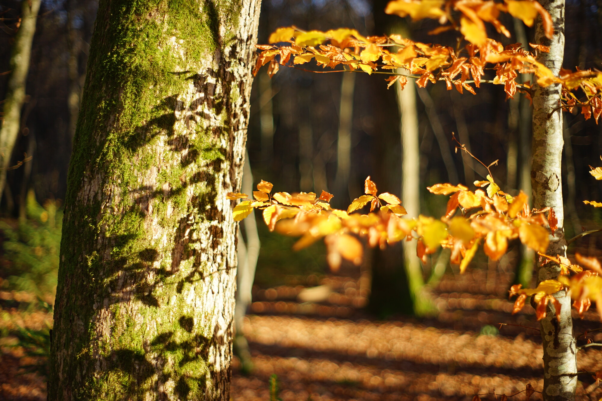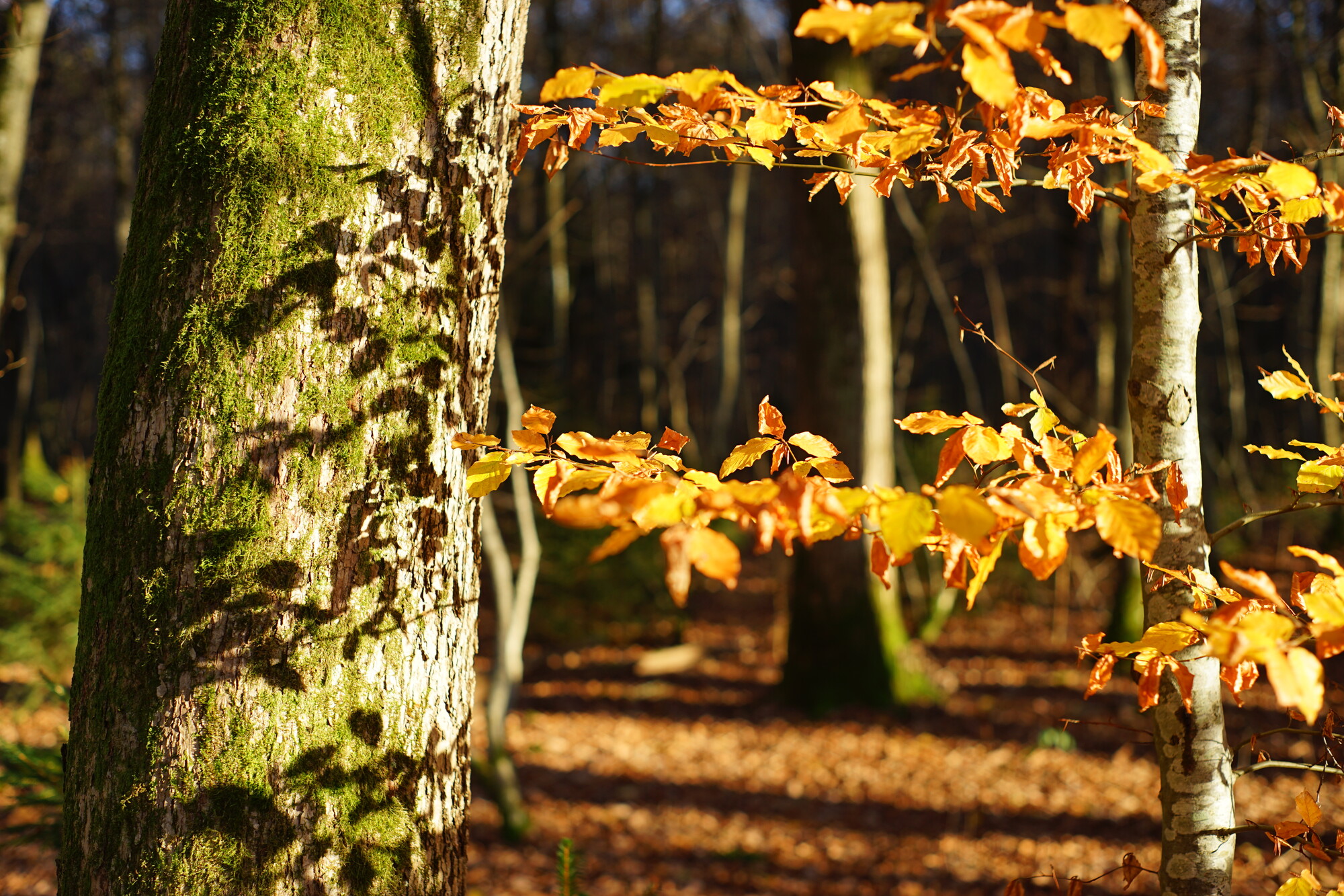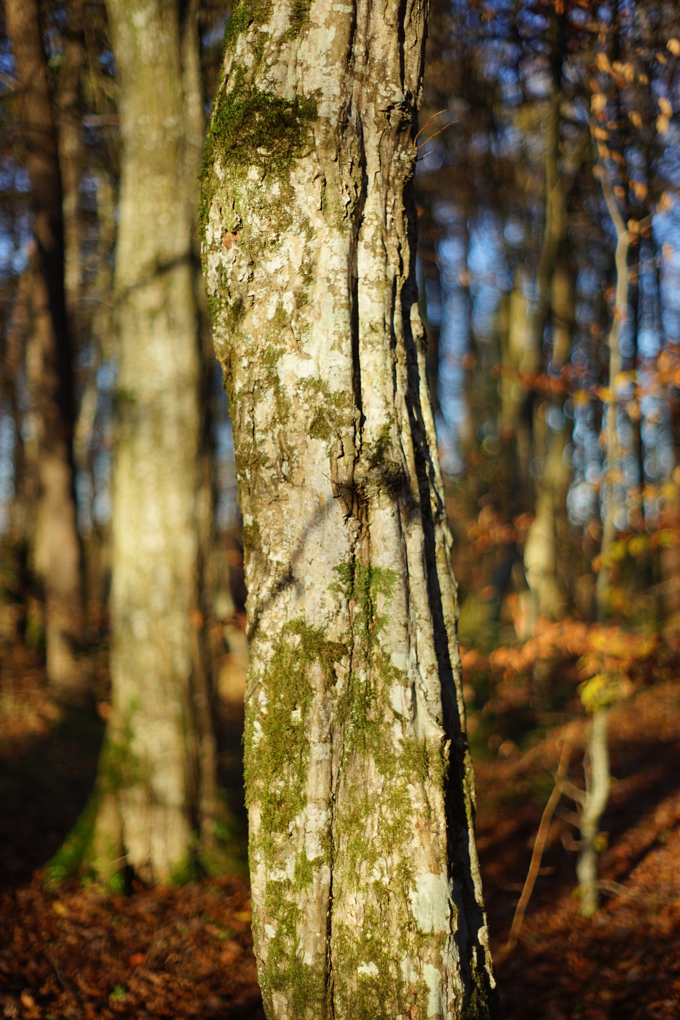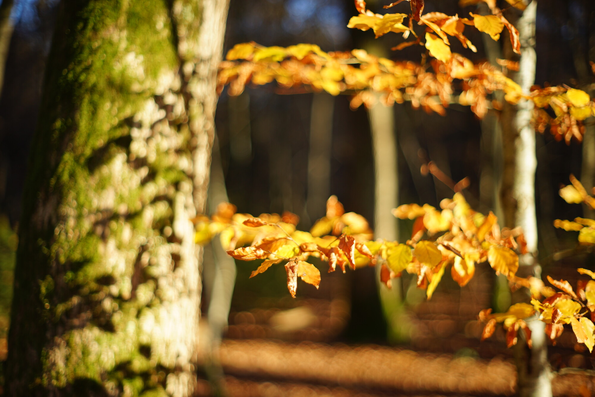 Nochmal ein Vergleich Offenblende und f2.8 bei unterschiedlich gesetztem Fokus (zuerst auf dem dicken Baumstamm, dann auf den nächstgelegenen Zweig mit Herbstblättern