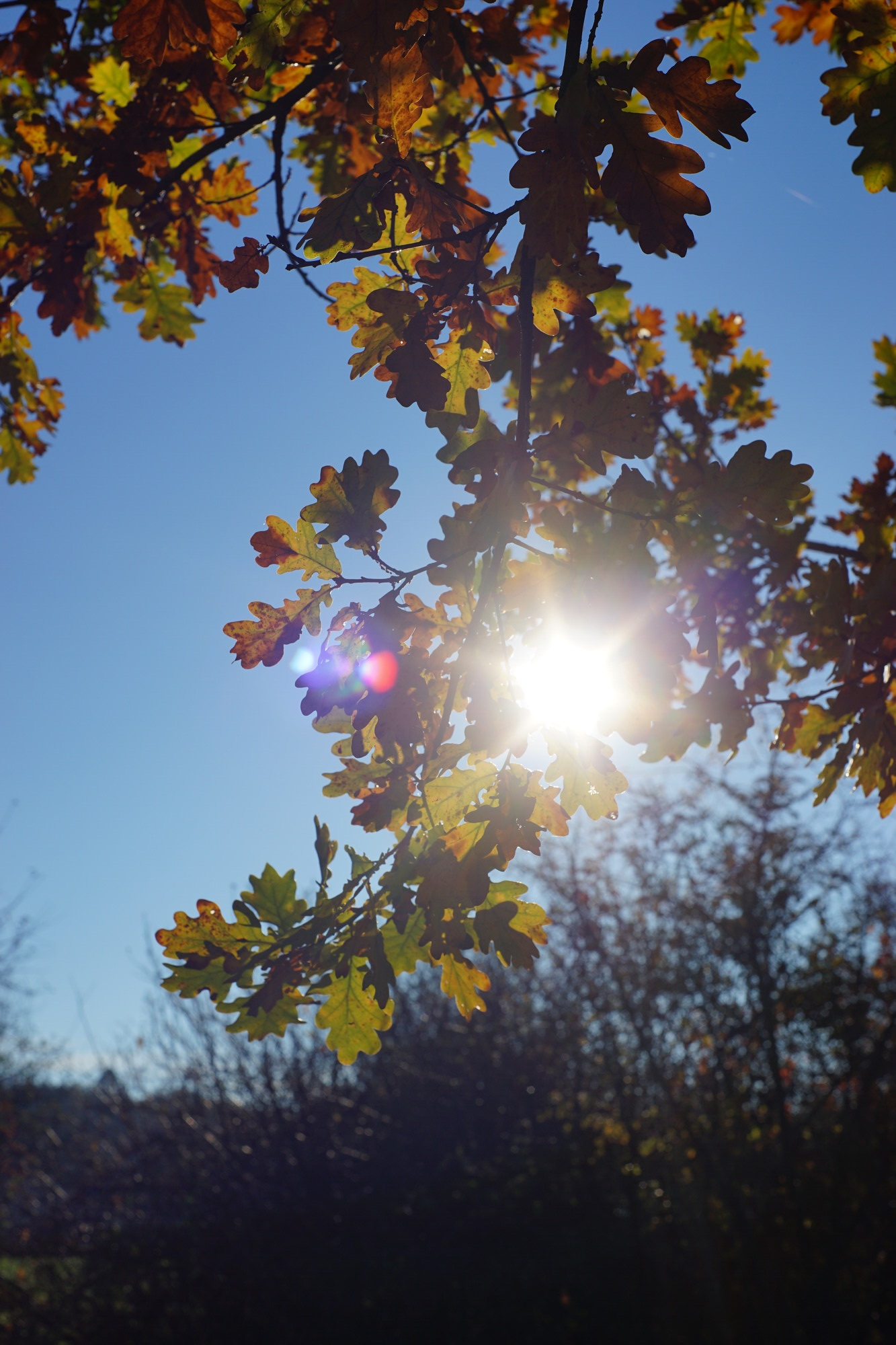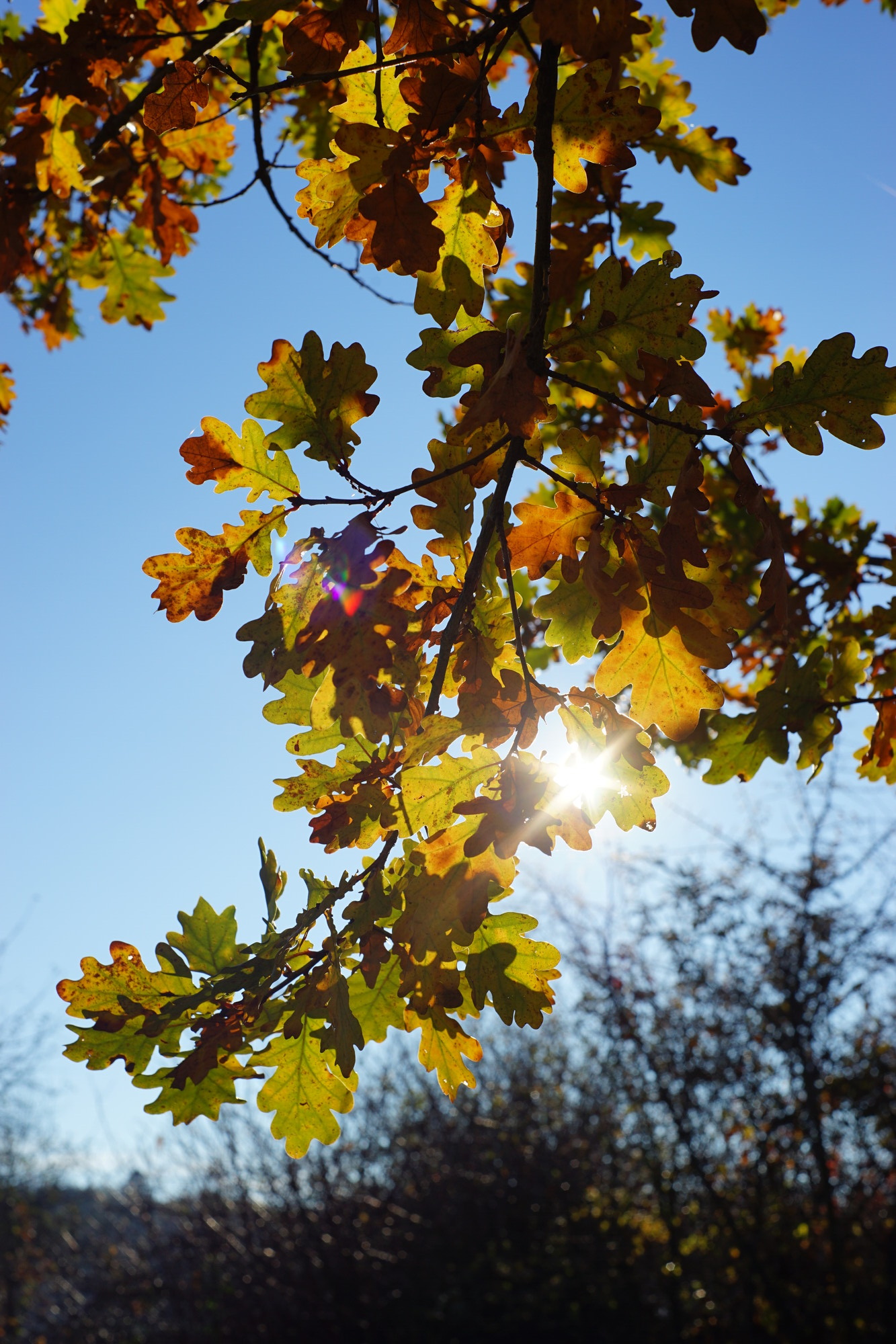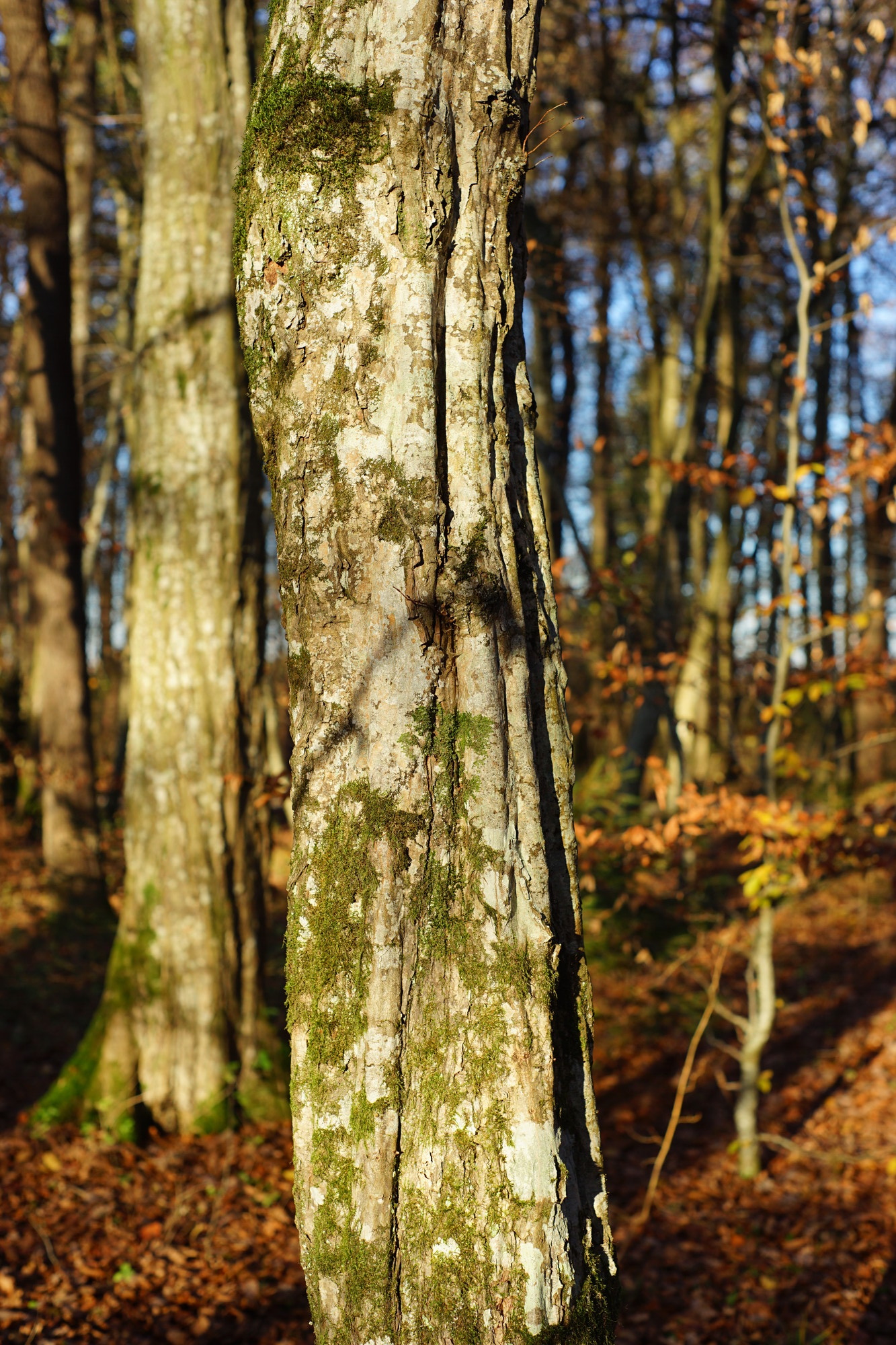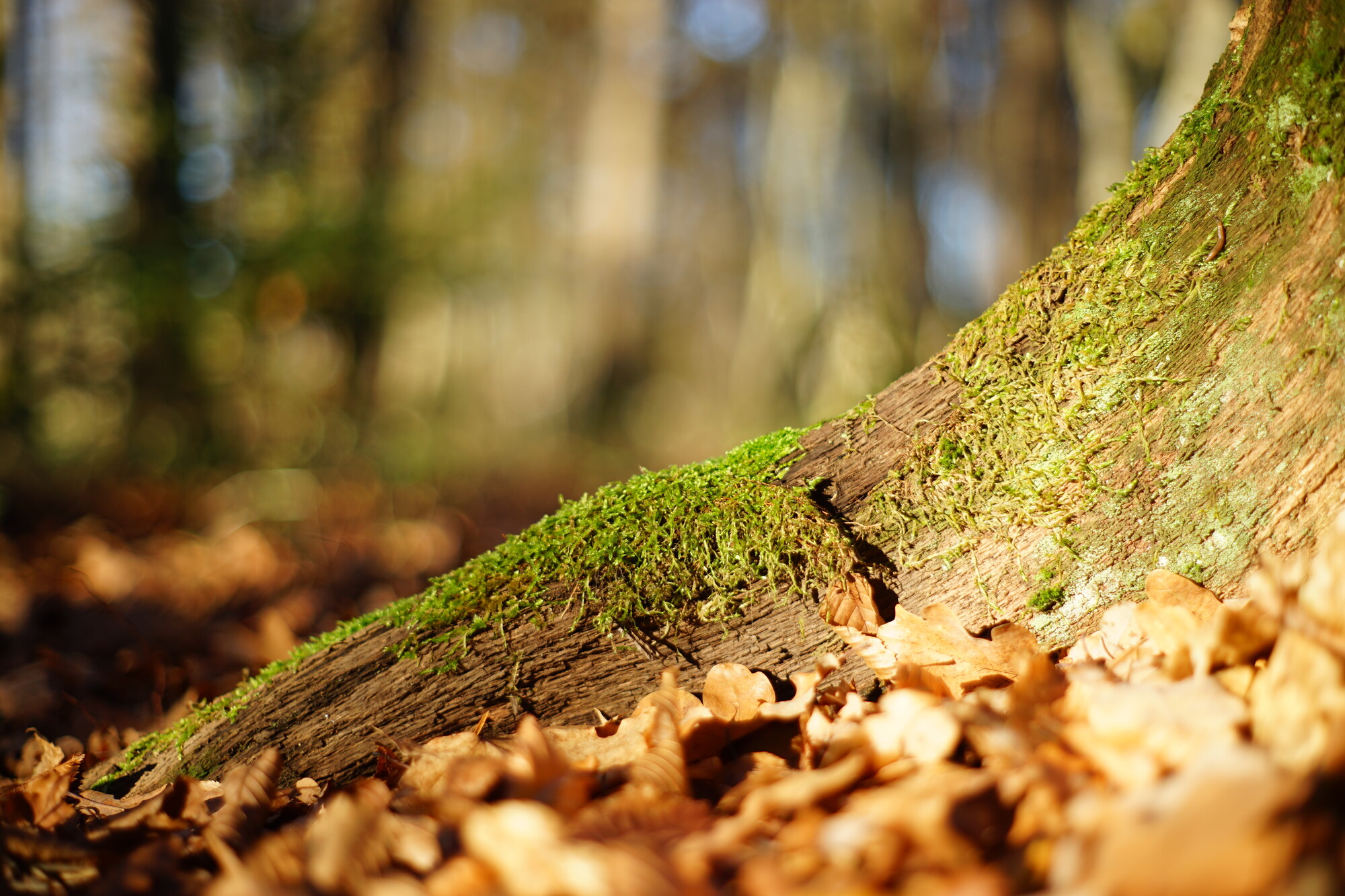 Nochmal ein Vergleich Offenblende und f2.8 bei unterschiedlich gesetztem Fokus (zuerst auf dem dicken Baumstamm, dann auf den nächstgelegenen Zweig mit Herbstblättern