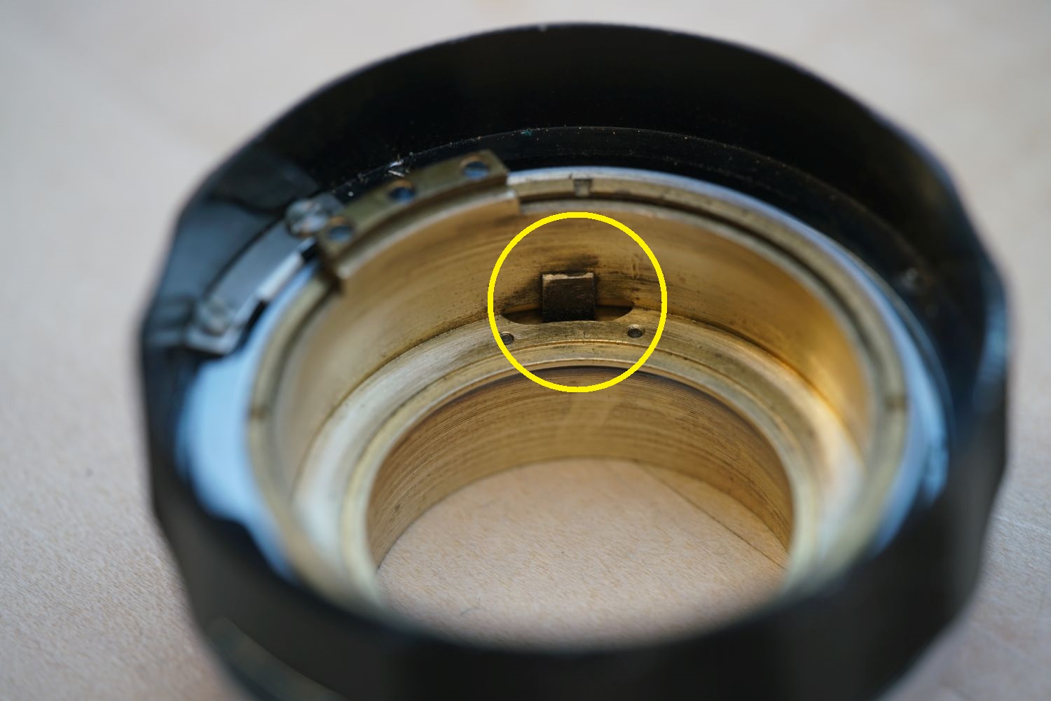 Schaut man sich ein Canon ltm Objektiv von hinten an, so schaut es am Beispiel des 1,2/50mm so aus: