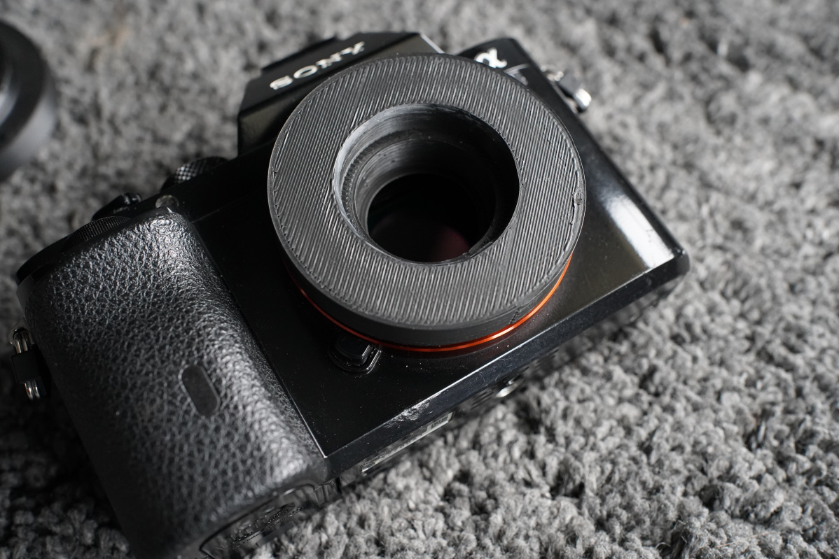 Als schnelle erste Lösung habe ich daher einen einfachen Adapter in Form einer einfachen Röhre gedruckt, in welche der Hintere Teil des Objektives hineinpasst: