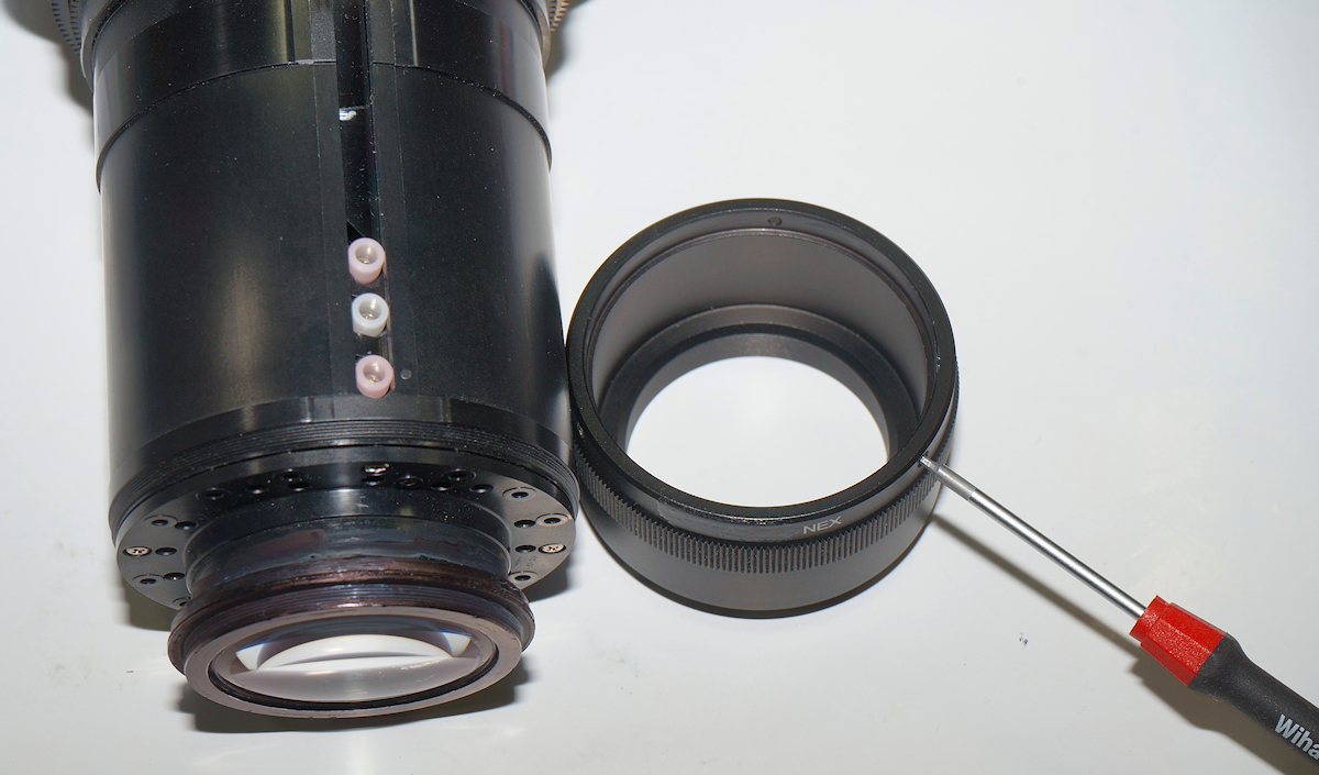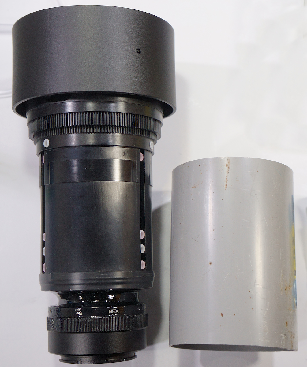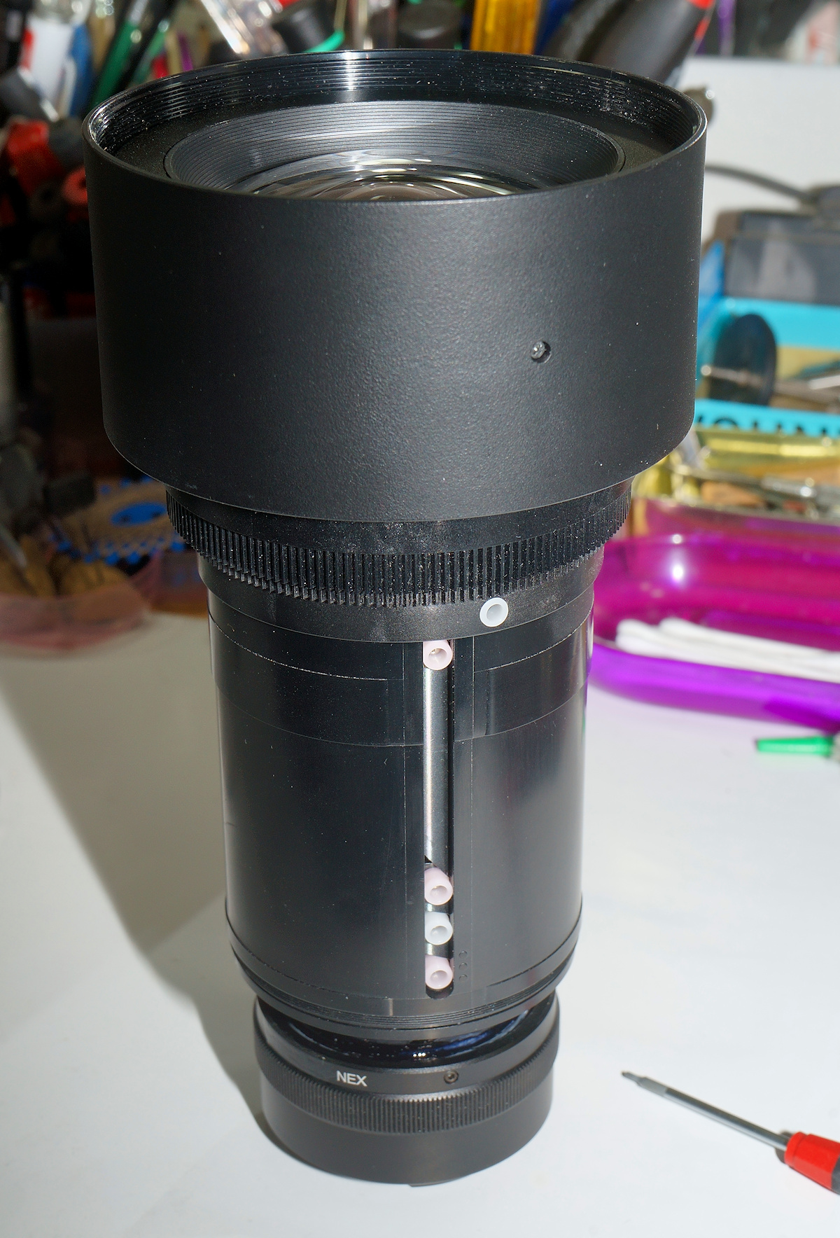 Beamer-Zoomobjektiv auf Sony NEX umgebaut