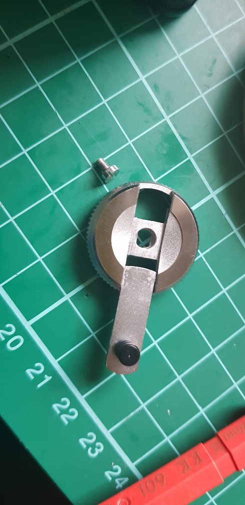 Hier das Einstellrad an dem sich auch eine Justierschraube befindet