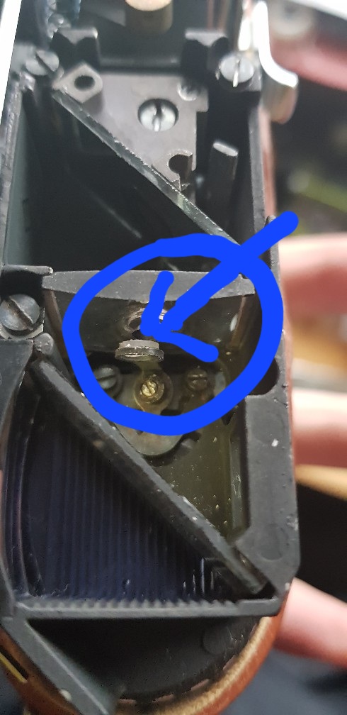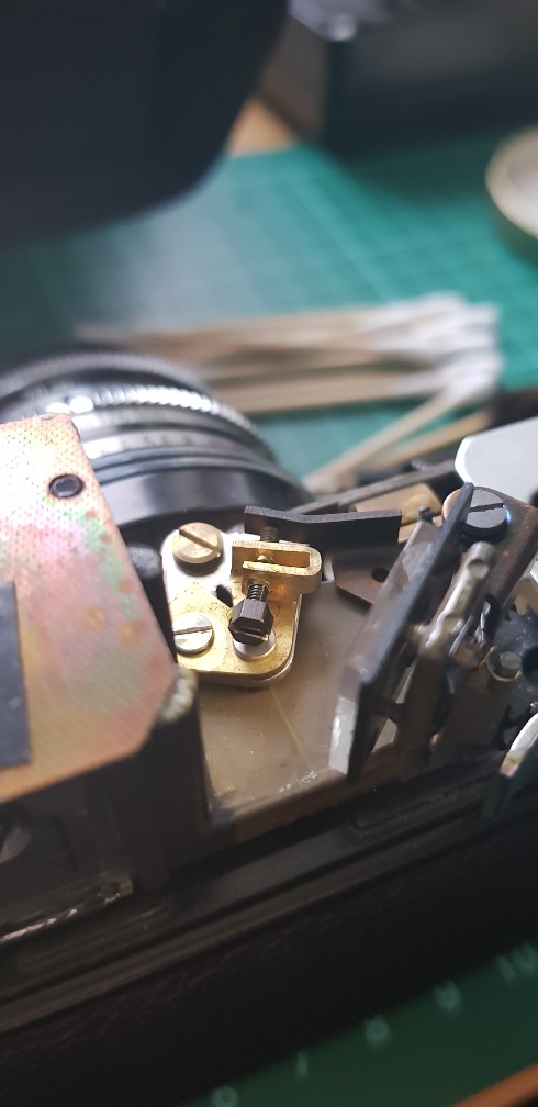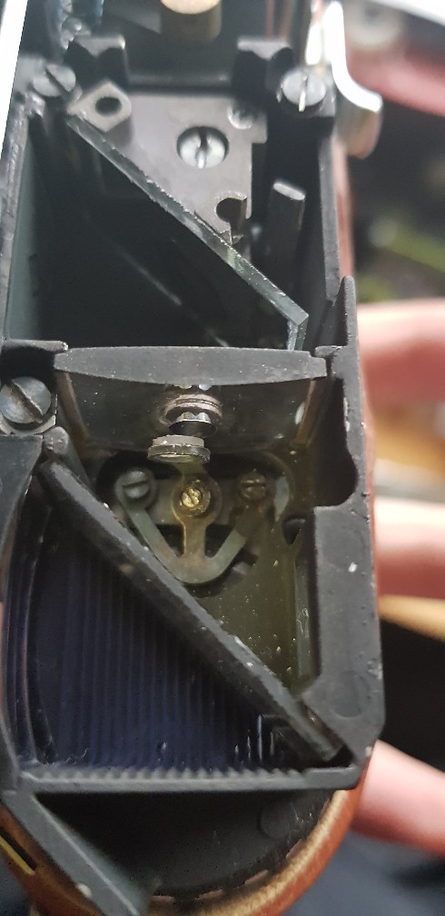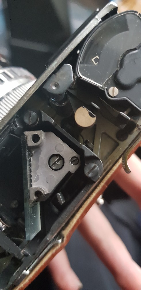 Hier selbes Spiel, Sucher reinigen und dann habe ich versucht mich ranzutasten die Schrauben zur Justage zu finden. Nachdem ich den Winkelspiegel 100.000fach fehljustiert hatte , hatte ich dann gesehen wo das genaue Problem lag dieses kleine teil hatte sich um einige zehntel mm verschoben und hatte den Sucher justiert , ob das mein Ungeschick war oder Zahn der Zeit..