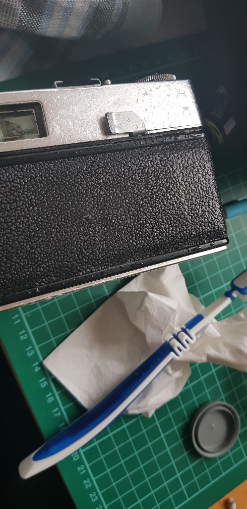 Danach habe ich mir den Sucher vorgenommen alle Flächen vorsichtig geputzt (mit Wasser und Wattestäbchen), dann habe ich mir den Winkelspiegel des Messsuchers vorgenommen und hier auch wieder vorsichtig geputzt. Der Sucher war danach ein Wunder im Vergleich zu vorher.