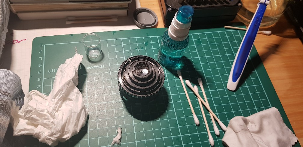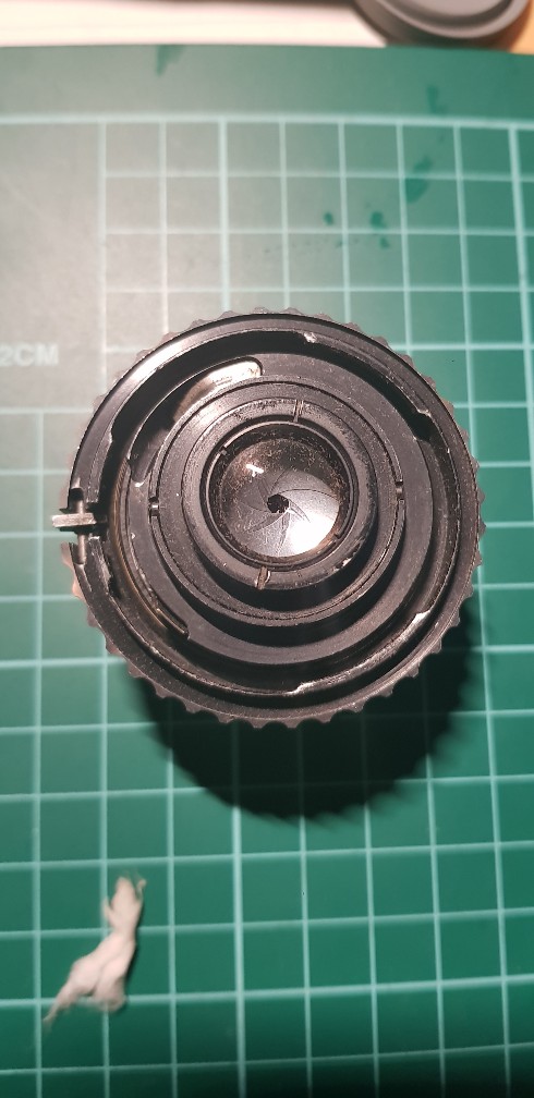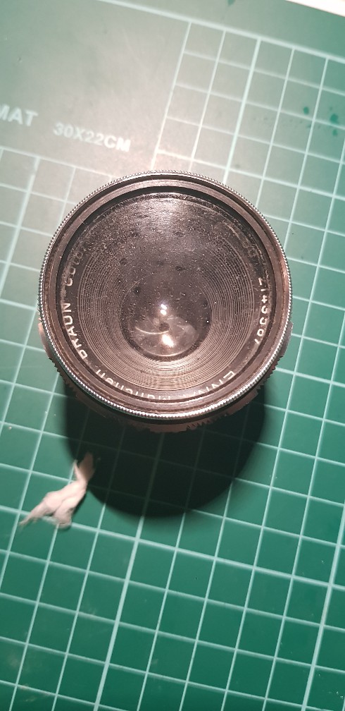 Das ISCO 35mm f3.5 habe ich auch äuserlich gereinigt, hier schließt die Blende aber nicht. Die Baustelle habe ich vorerst sein lassen.