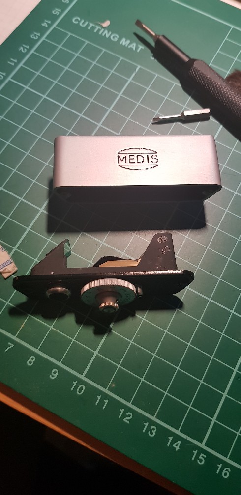 Zu guter Letzt habe ich mich noch um meinen externen MEDIS Entfernungsmesser den ich für meine Zeca Primus 6x9 Klappkamera verwende neu justiert, da er seit einiger Zeit total unbrauchbar war (total falsche Werte , dreckiger Sucher).