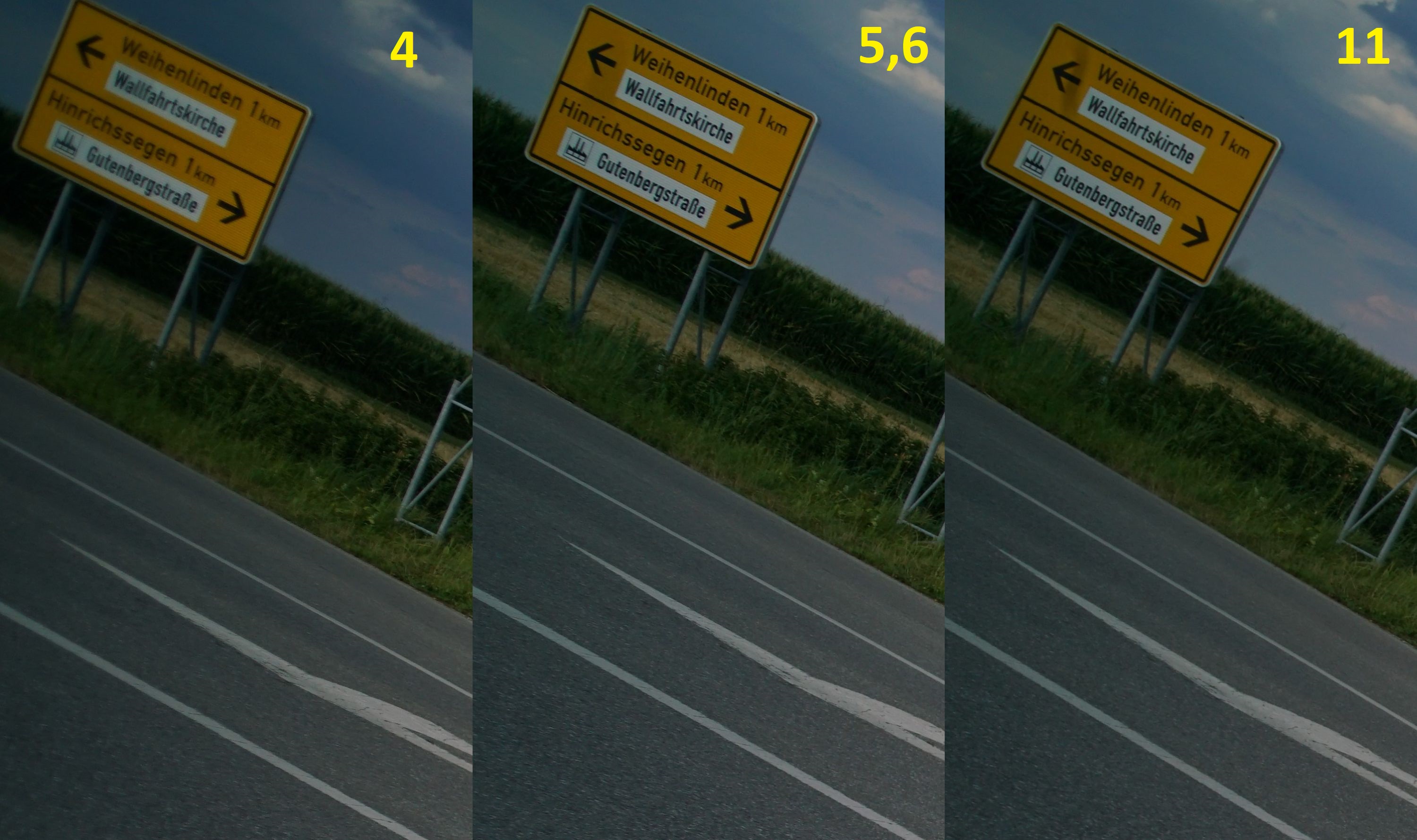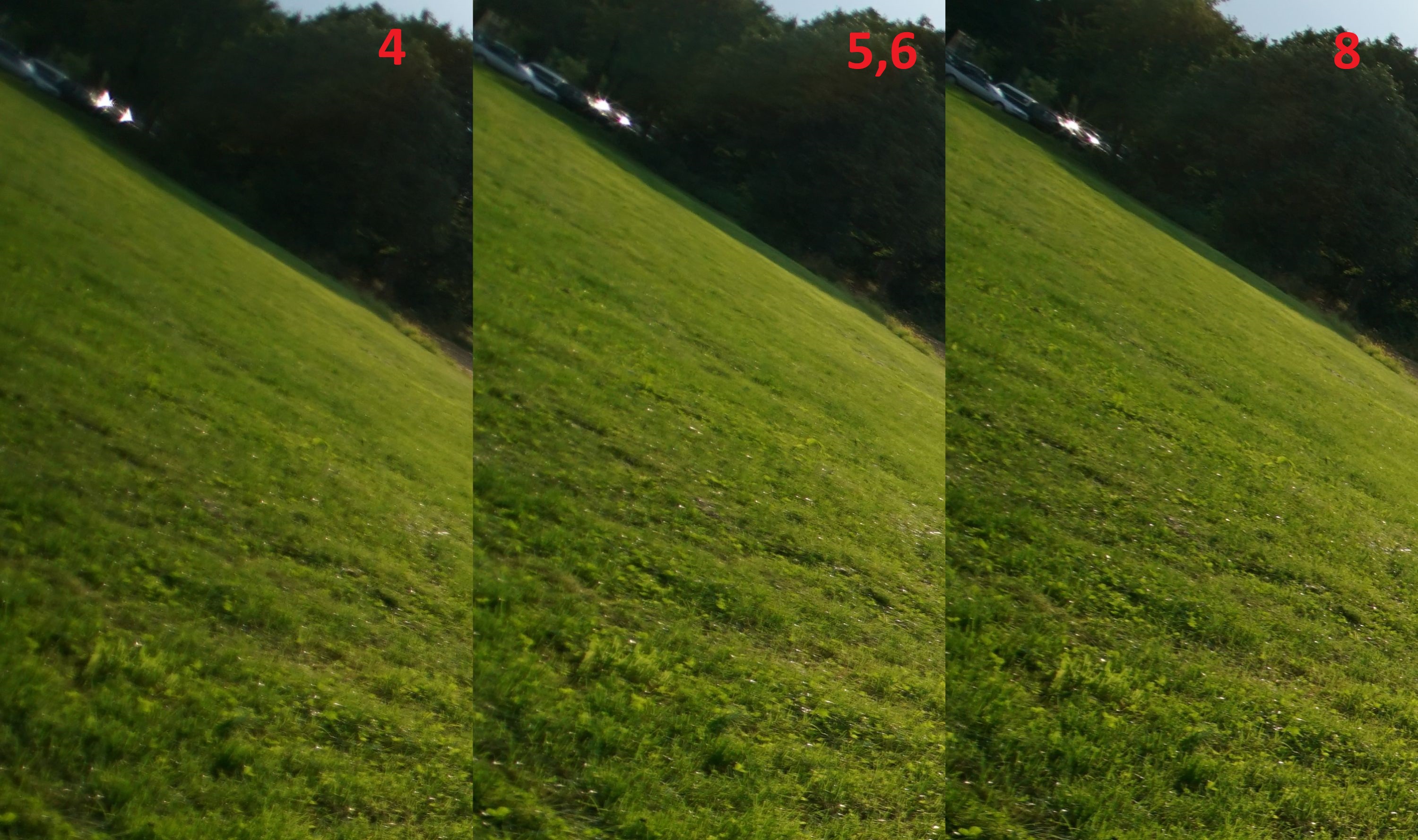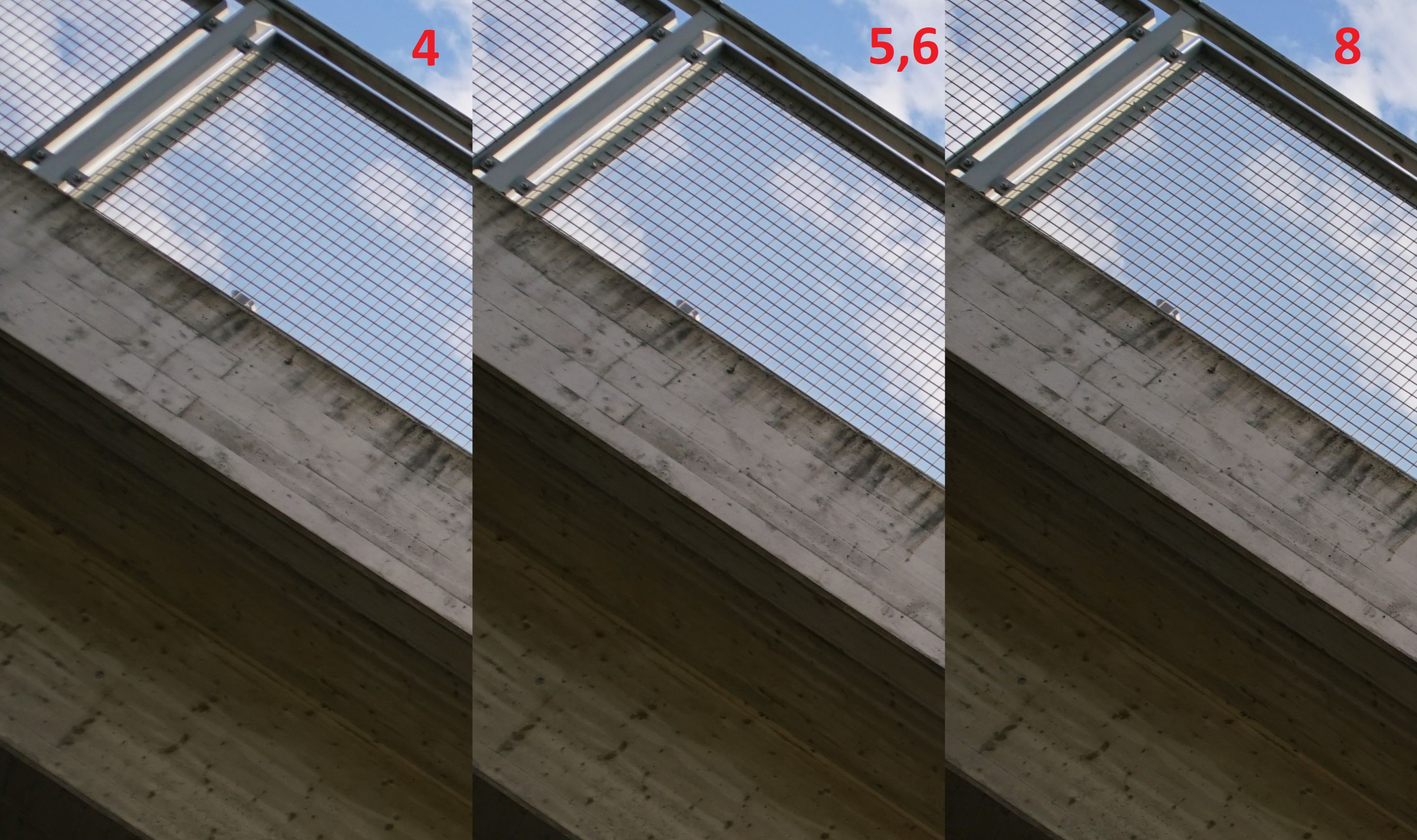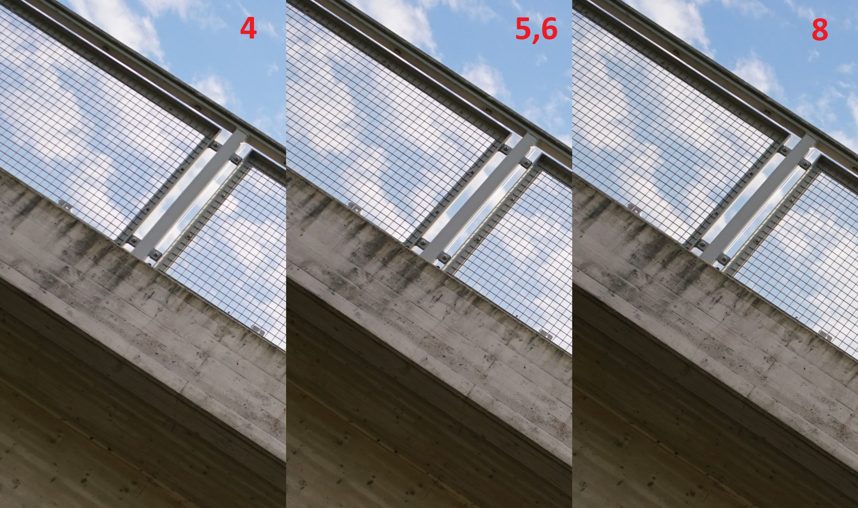 Crops aus der Ecke, die Blendenwerte stehen im Foto: