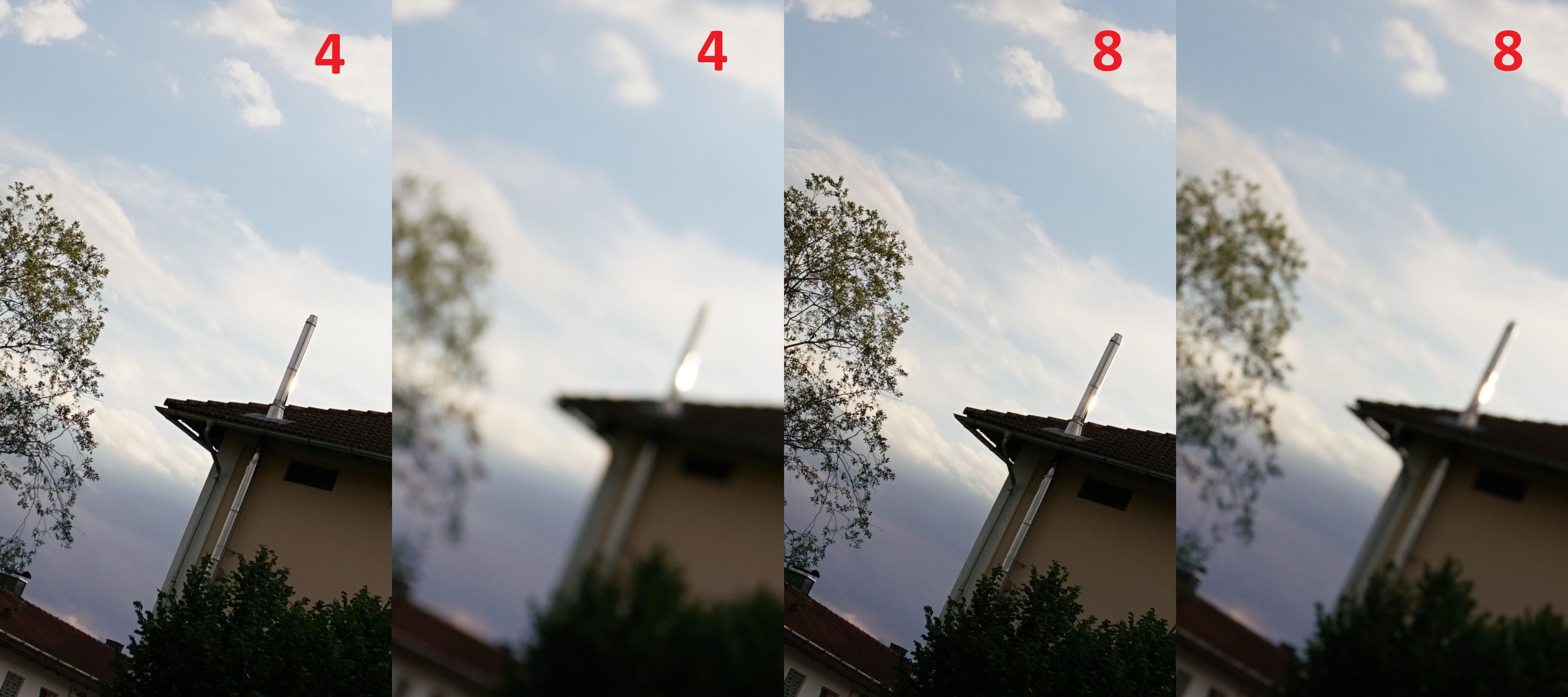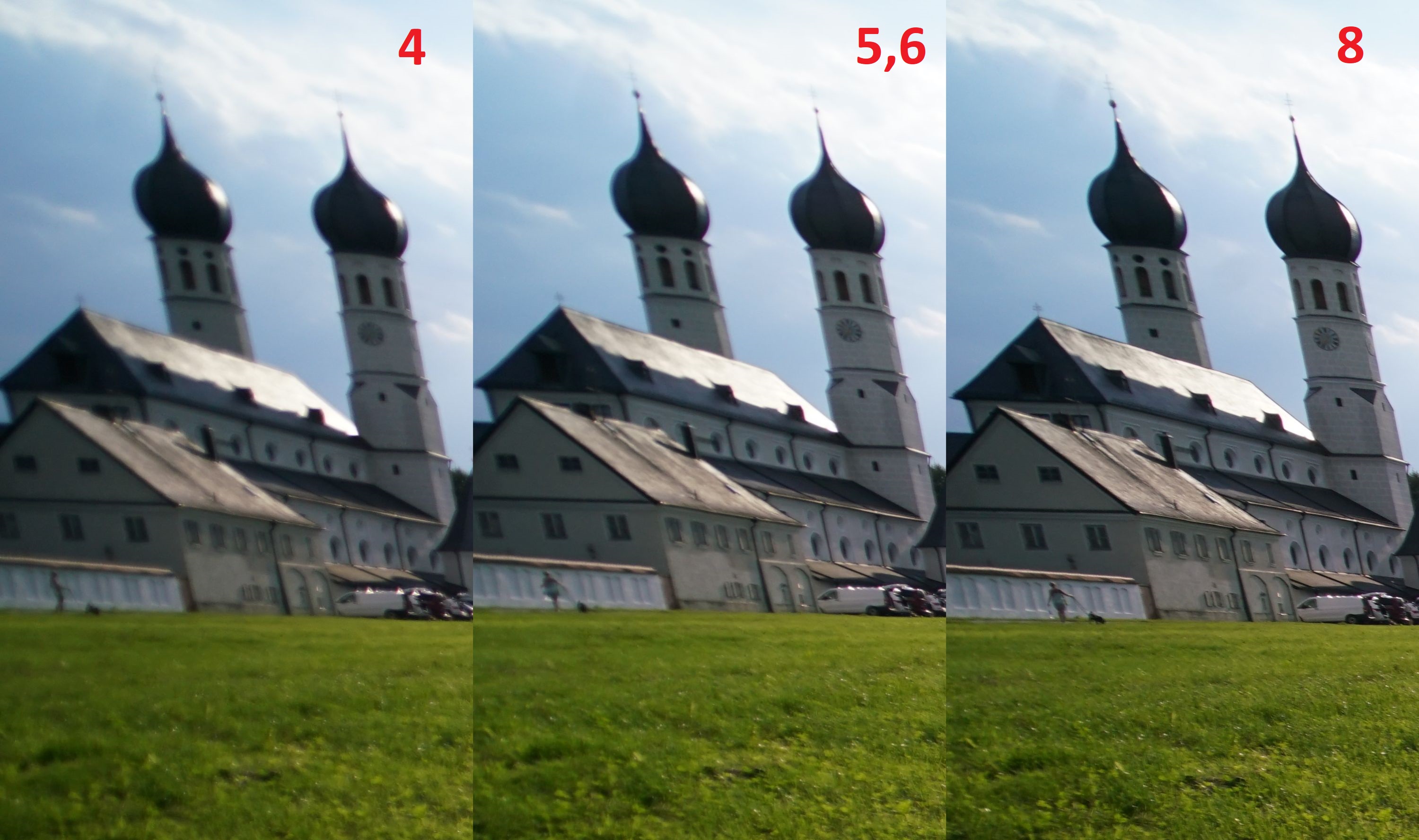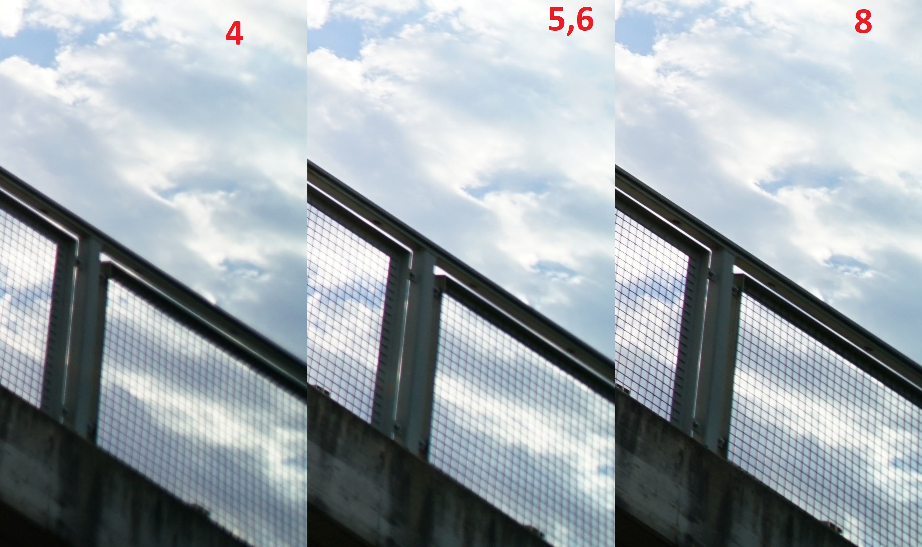 Crops aus der Ecke, die Blendenwerte stehen im Foto: