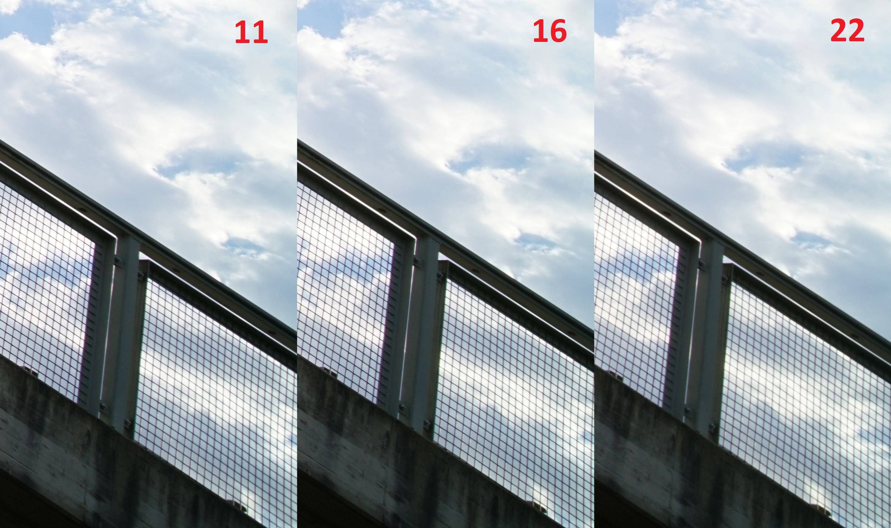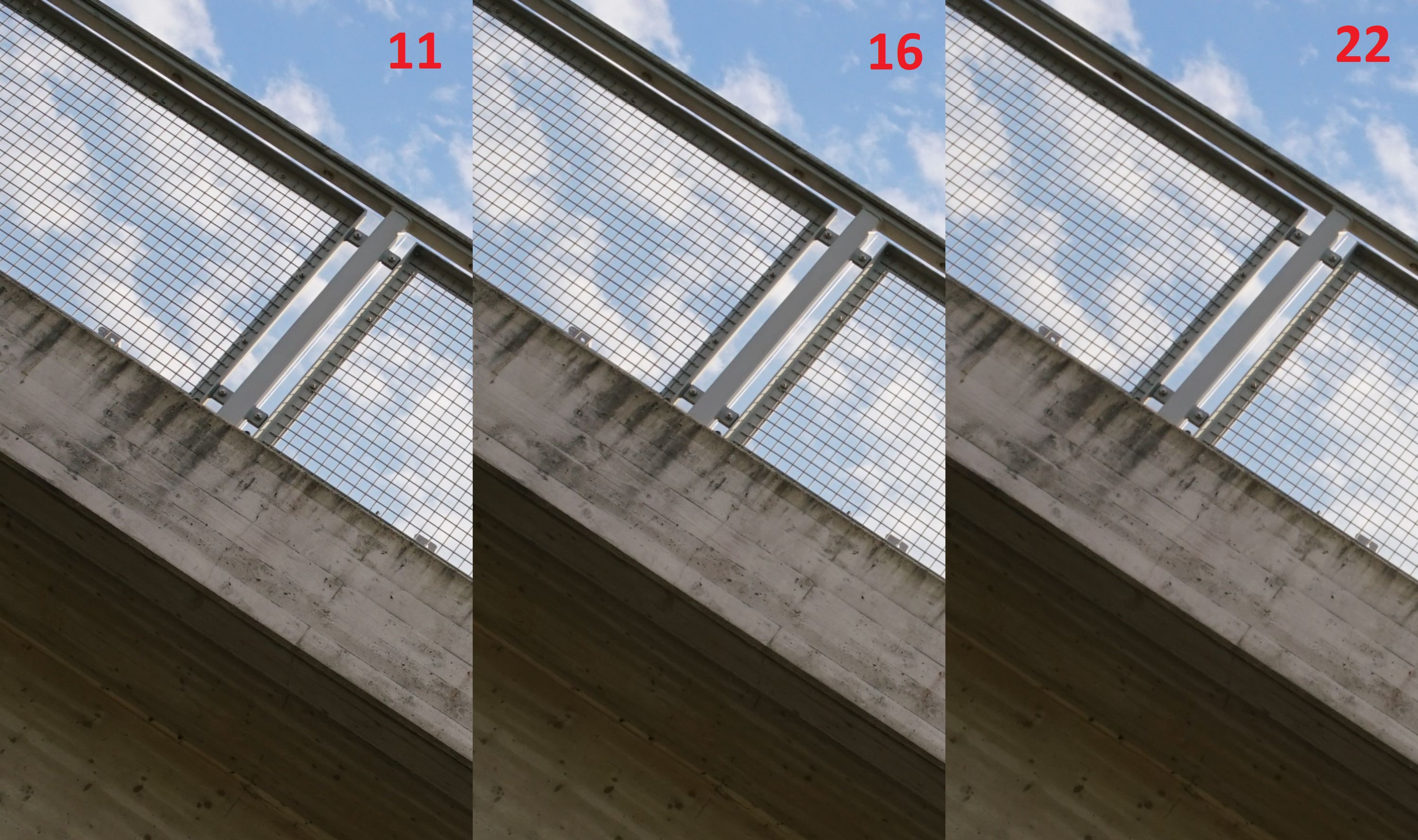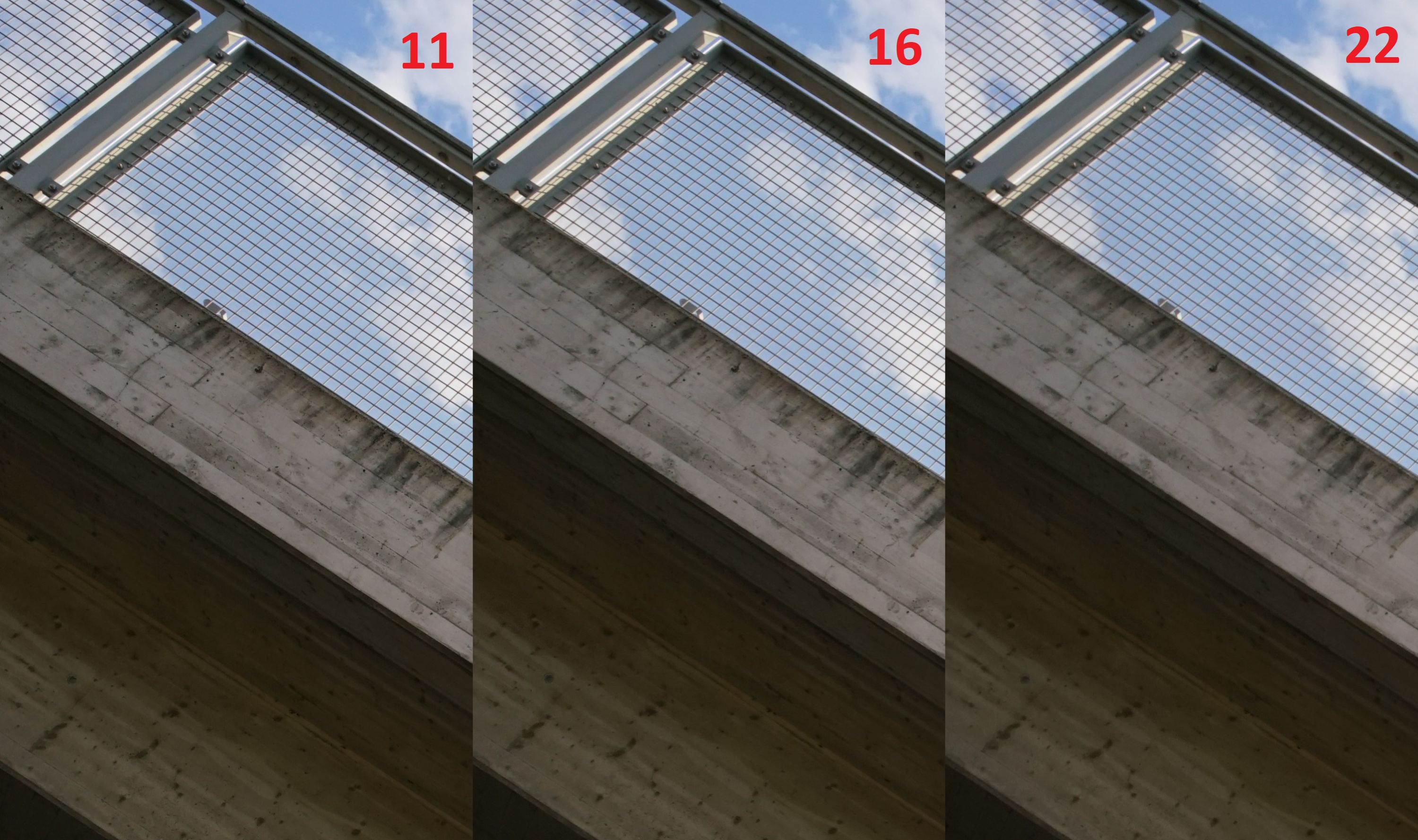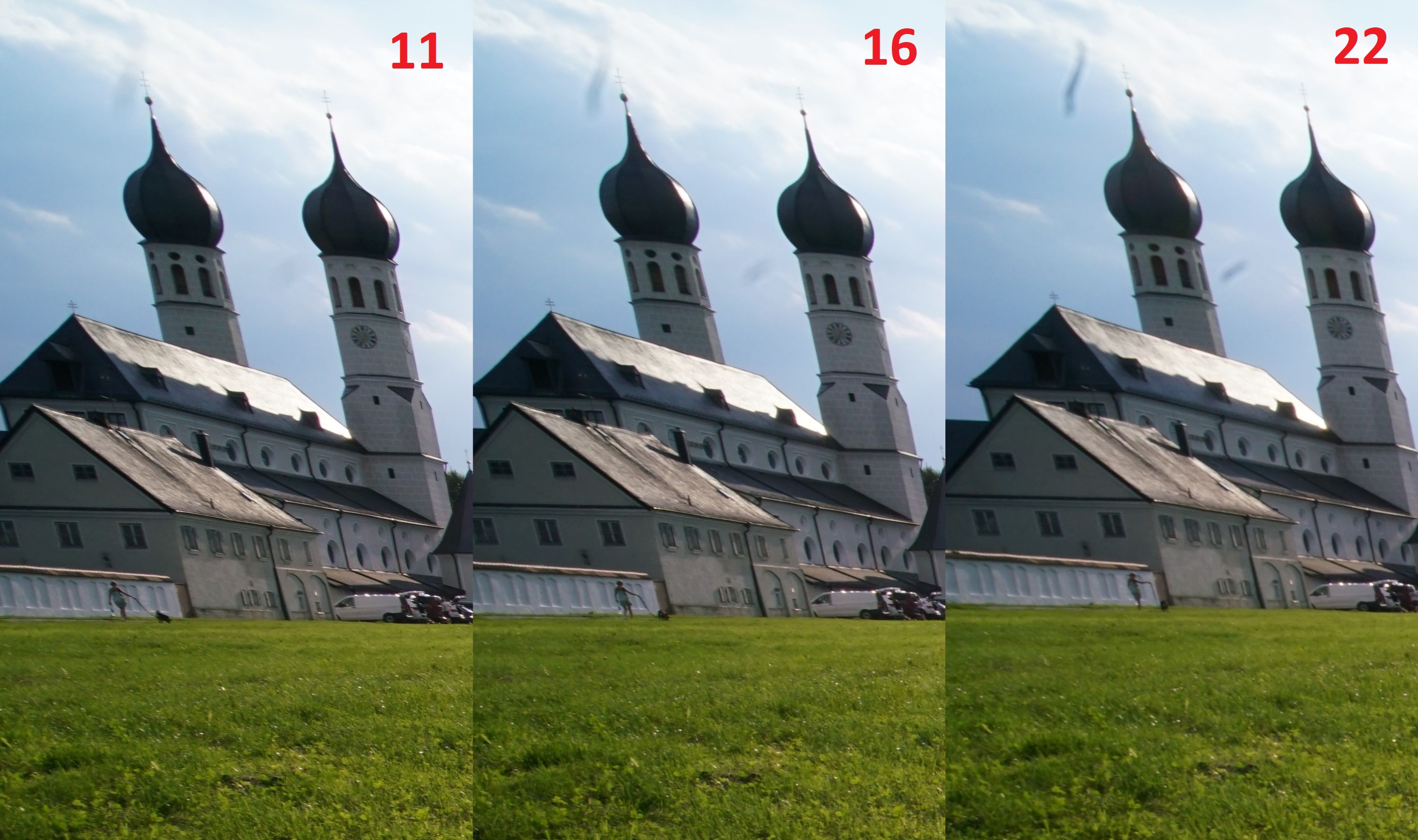 Crops aus der Ecke, die Blendenwerte stehen im Foto: