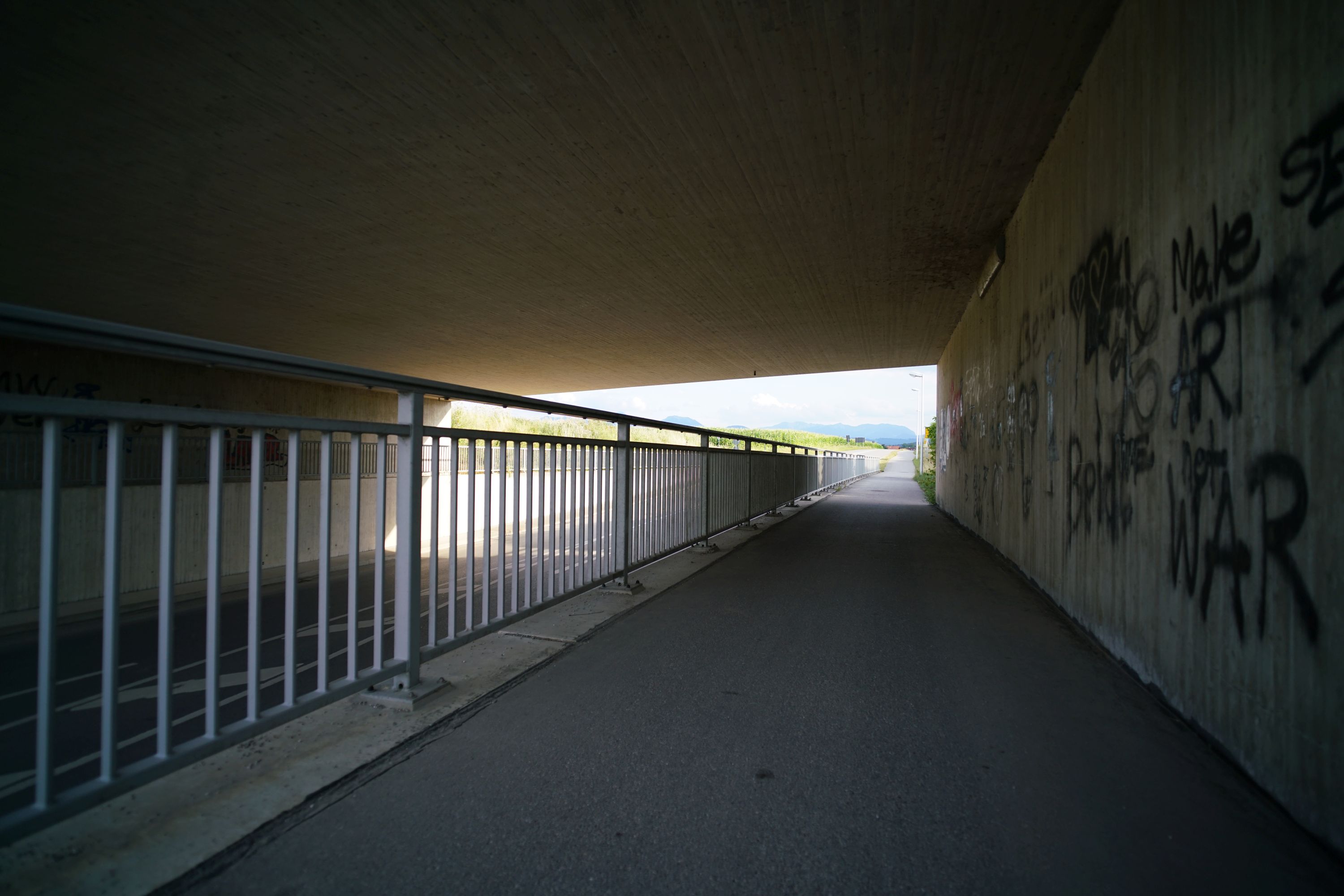 Hierzu habe ich eine Brücke anvisiert und das Brückengeländer diagonal von Ecke zu Ecke abgelichtet.